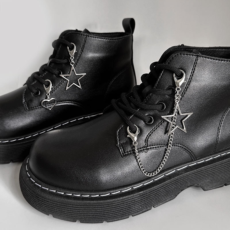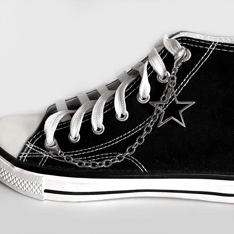 Hueco de cinco puntas estrella titanio Cadena de acero cadena de zapato lateral cadena dulce fresco estrella colgante Martin botas zapatos de lona zapato hebilla colgante