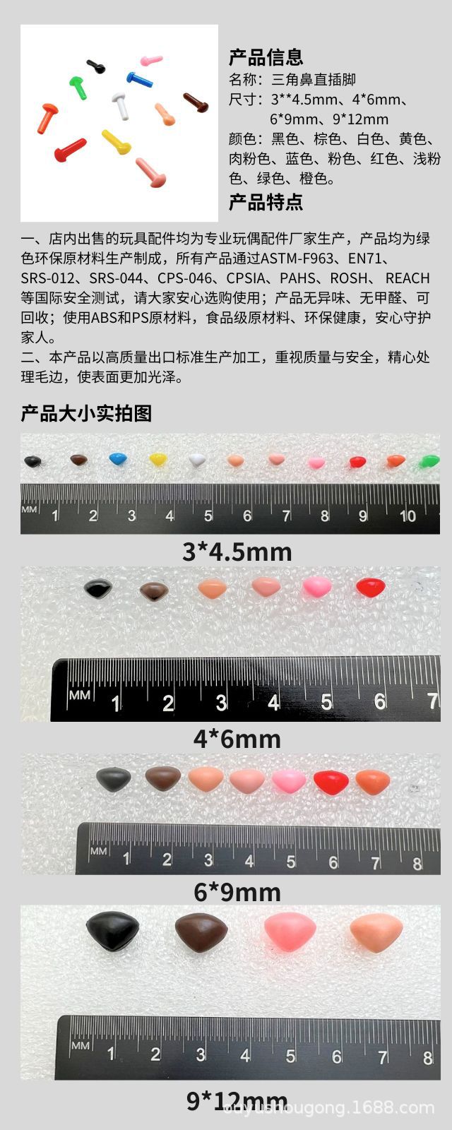 Triángulo nariz pie recto mango recto nariz poke lana fieltro giro palo DIY hecho a mano accesorios de la muñeca