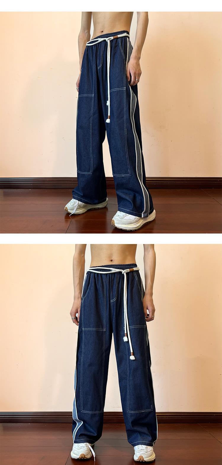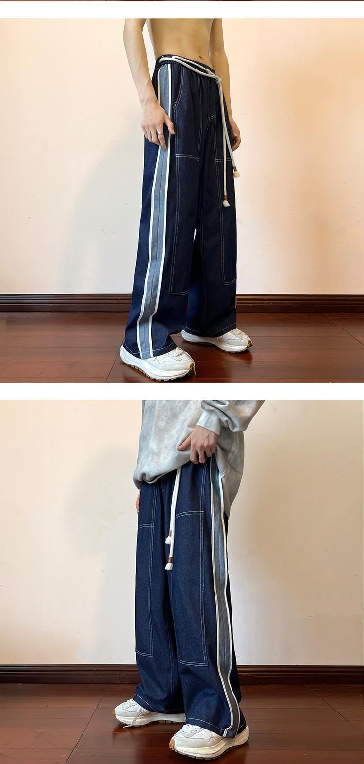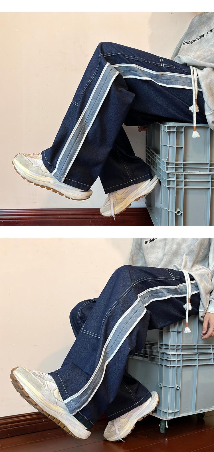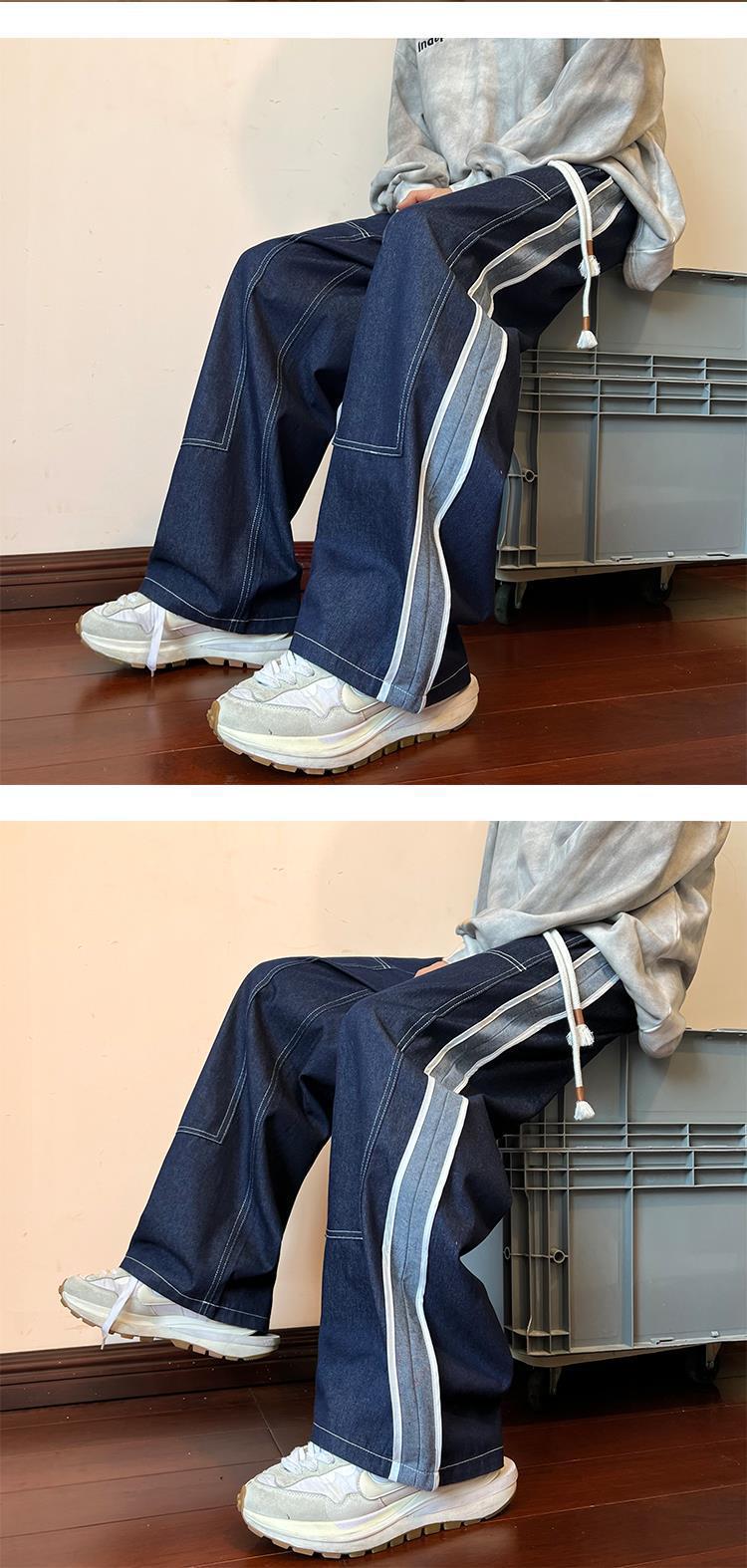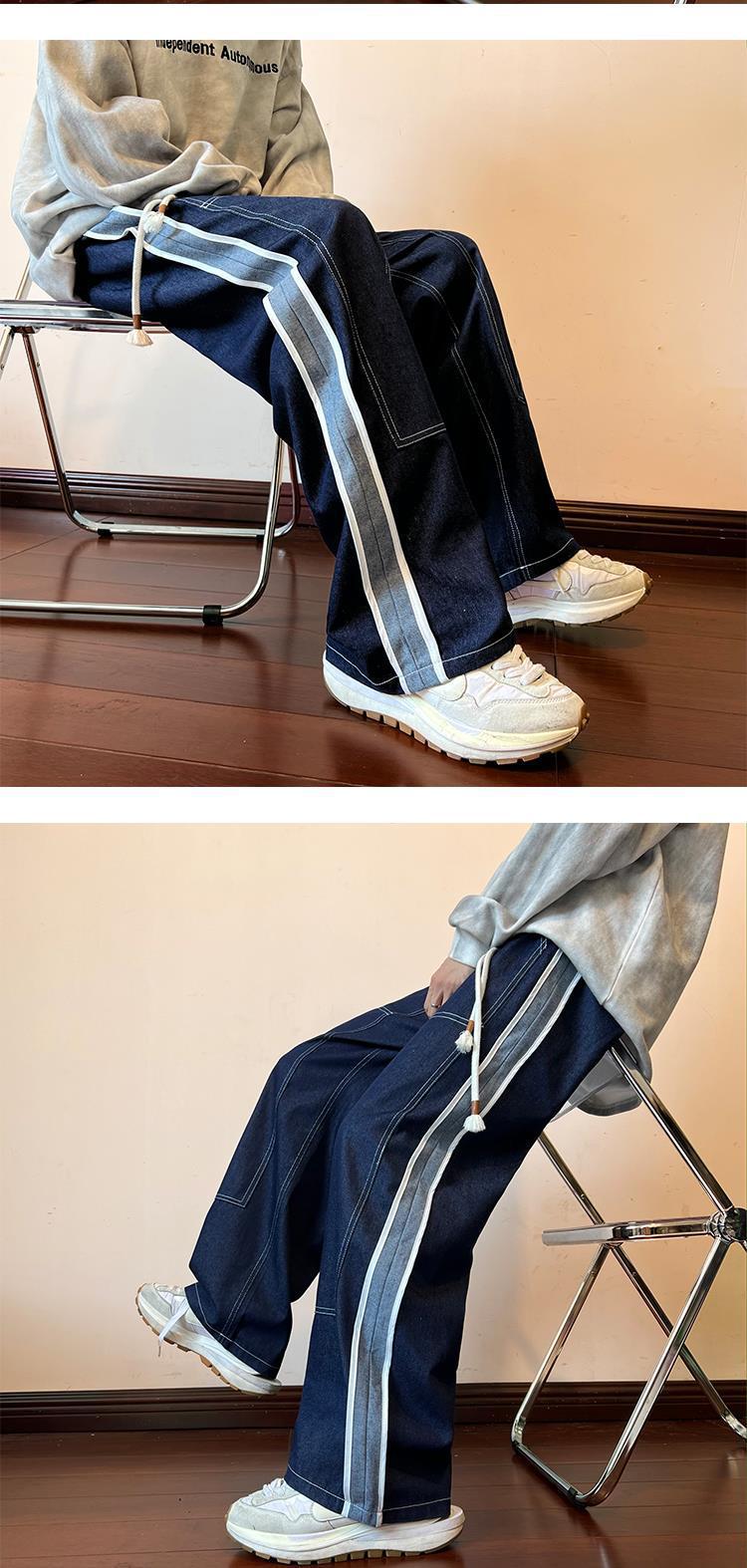 Vaqueros de los hombres otoño suelta ins moda calle overoles Primavera y oversize Pantalones rectos americanos