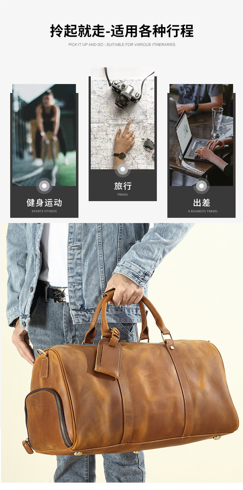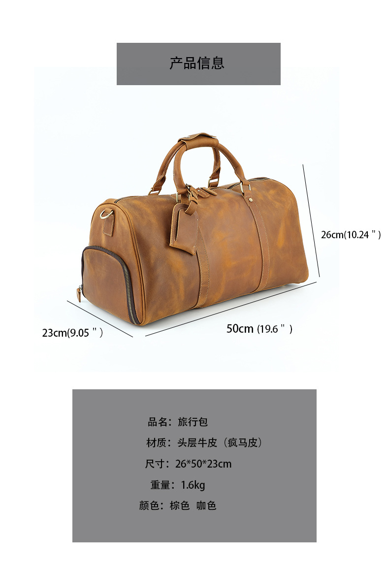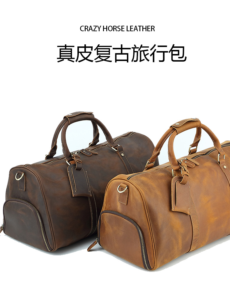 Bolsa de viaje de cuero transfronterizo primera capa de piel de vaca bolsa de equipaje hombro crossbody bolso de los hombres de gran capacidad bolso europeo y americano Retro