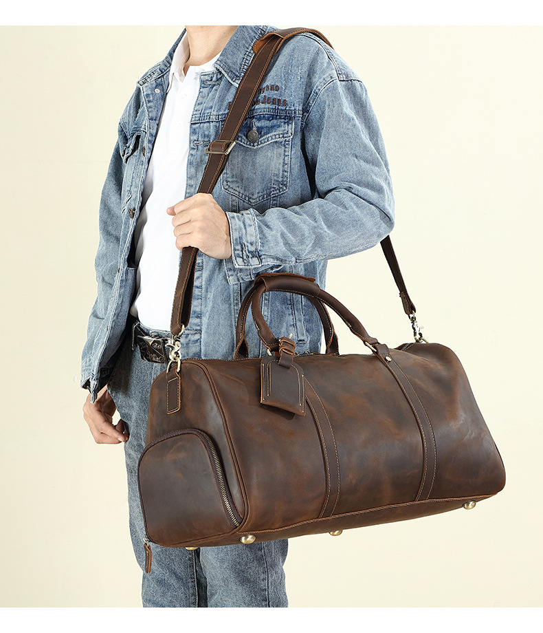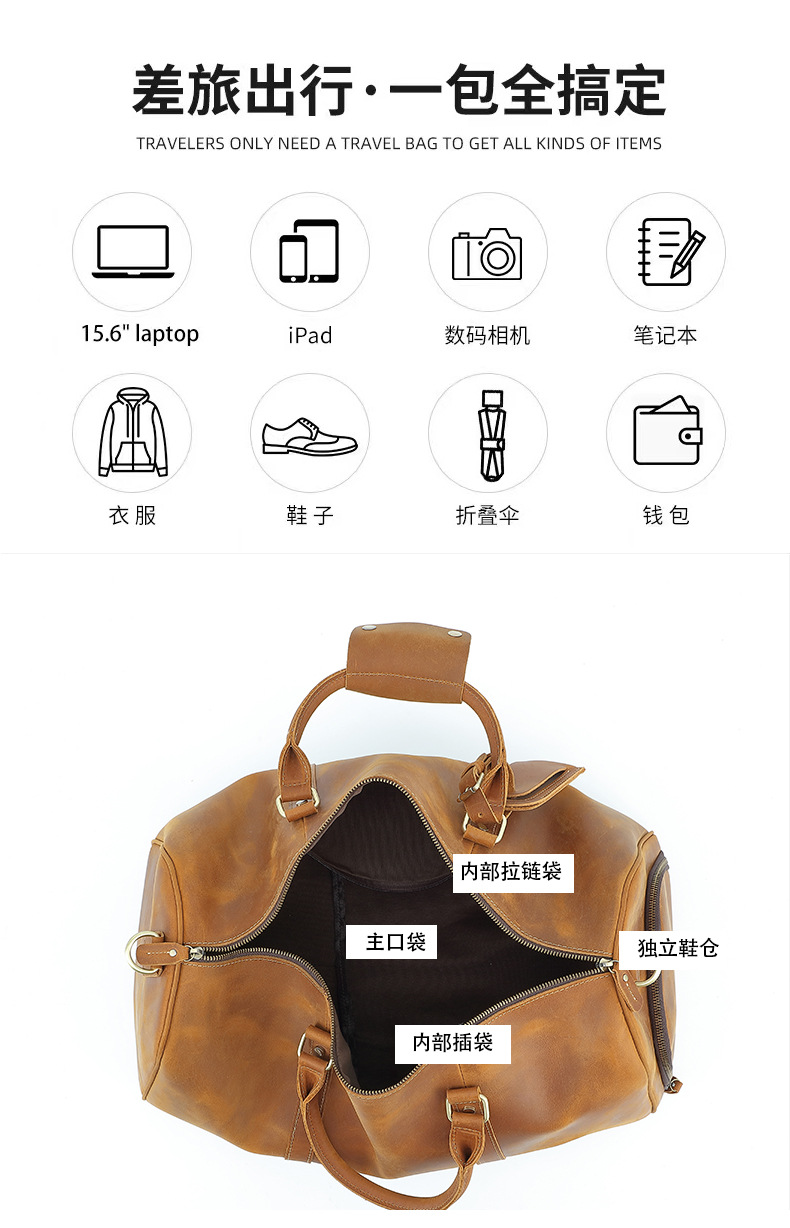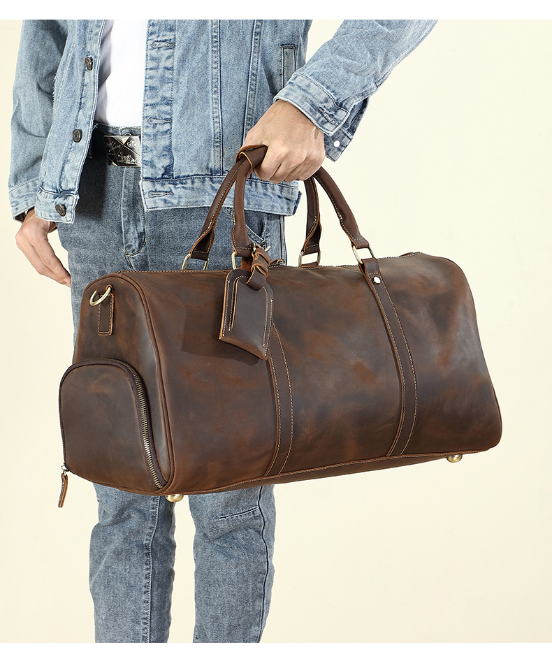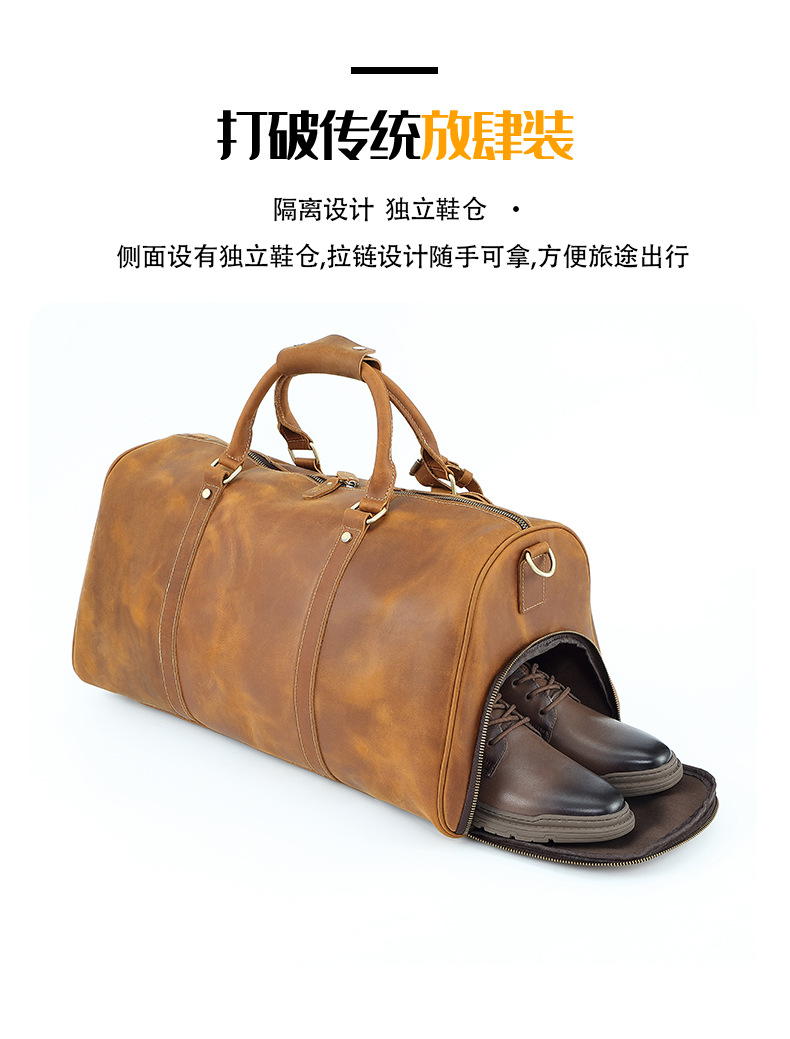 Bolsa de viaje de cuero transfronterizo primera capa de piel de vaca bolsa de equipaje hombro crossbody bolso de los hombres de gran capacidad bolso europeo y americano Retro