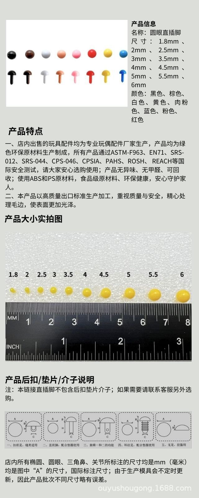 Ojo redondo pie recto mango recto ojo nariz poke fieltro de lana Twist stick DIY accesorios de muñeca hechos a mano