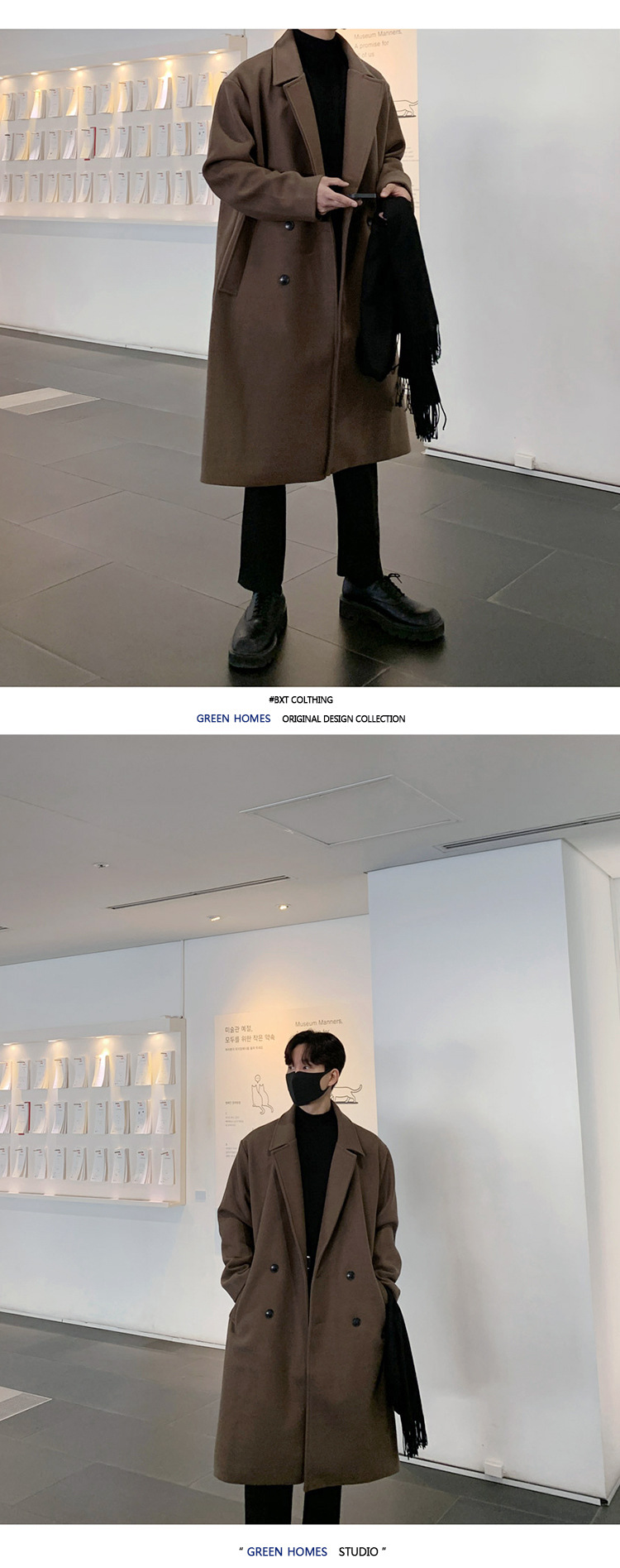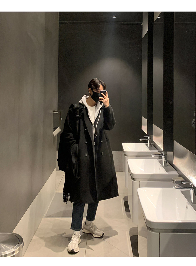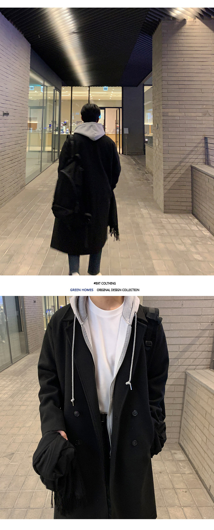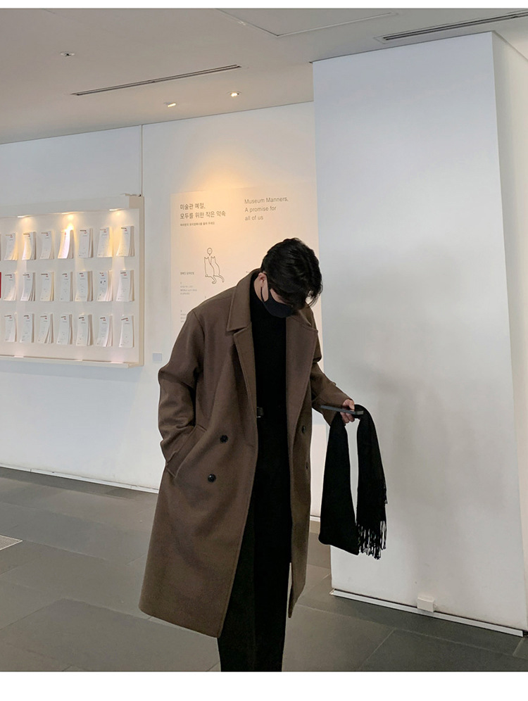 ASCLO diseño de nicho de hombre de longitud media guapo abrigo de lana estilo coreano de moda gabardina engrosada de doble botonadura