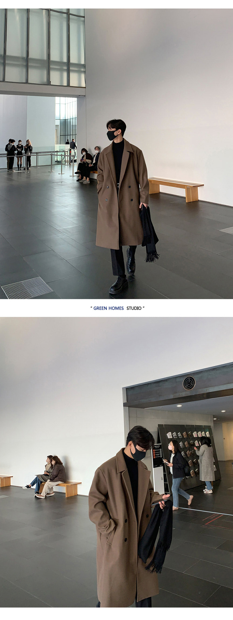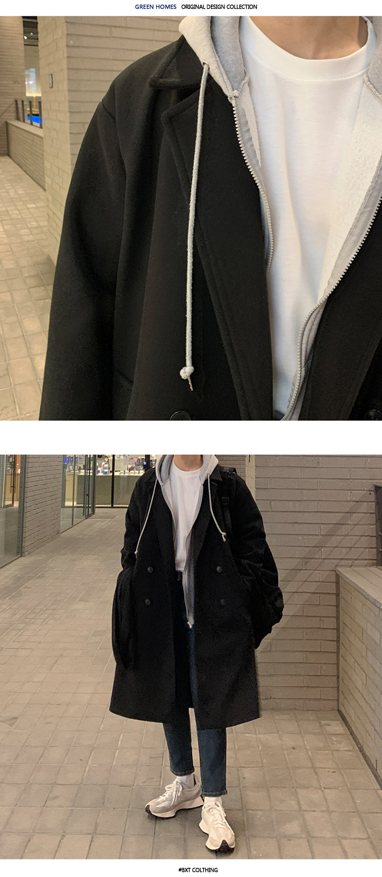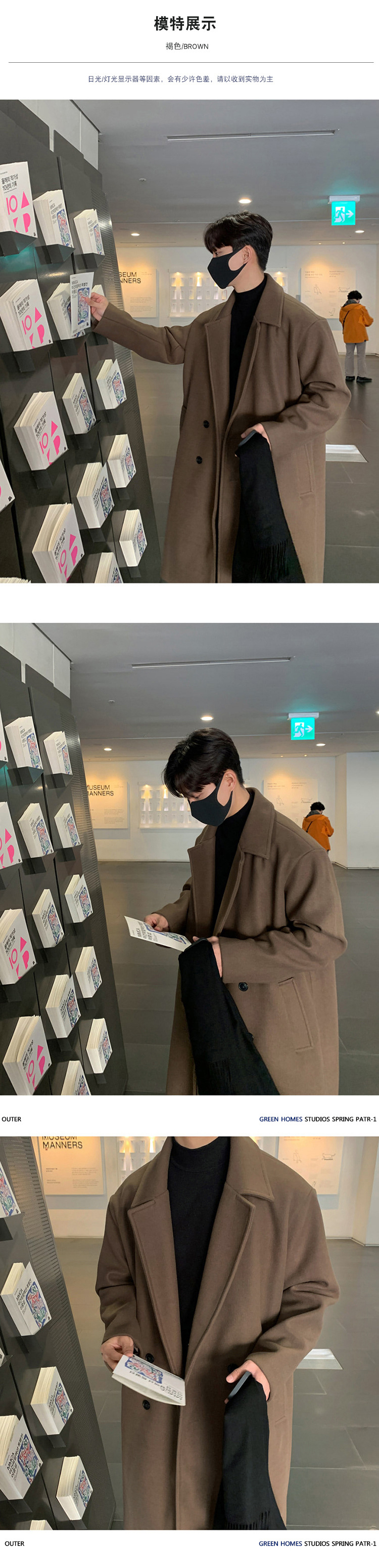 ASCLO diseño de nicho de hombre de longitud media guapo abrigo de lana estilo coreano de moda gabardina engrosada de doble botonadura