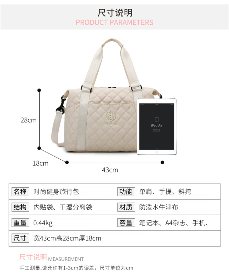 Bolsa de equipaje de viaje de rombo transfronterizo bolsa de fitness crossbody de estilo coreano ligero para mujer bolsa de almacenamiento de viaje de gran capacidad de alto grado