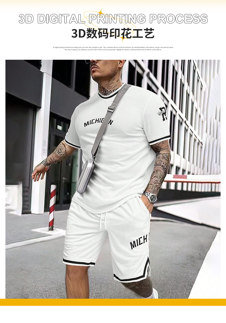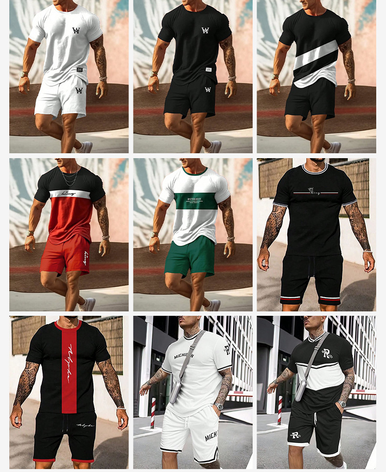 2023 camiseta de moda de verano corriendo fitness cuello redondo manga corta 3D impresión de los hombres de comercio exterior traje de Deportes de calle