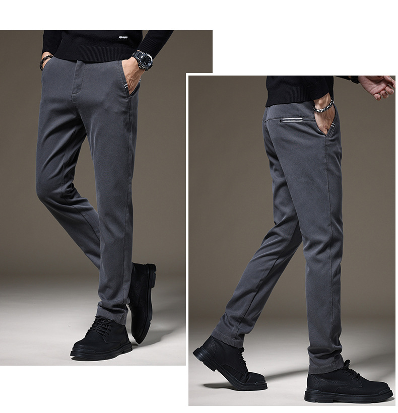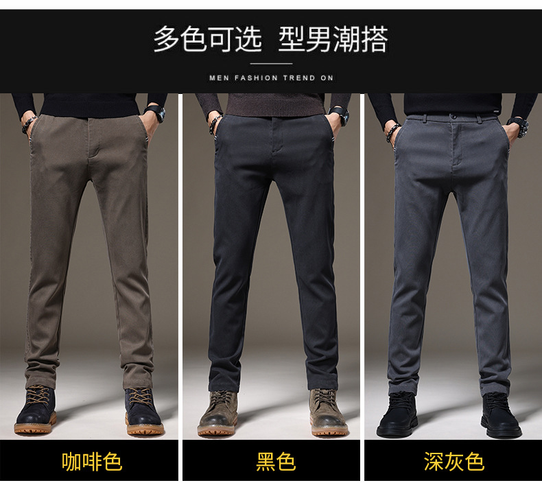 Otoño e Invierno nuevo negocio ligero pantalones casuales de los hombres de color sólido clásico moda estiramiento pantalones delgados de gama alta de los hombres boutique