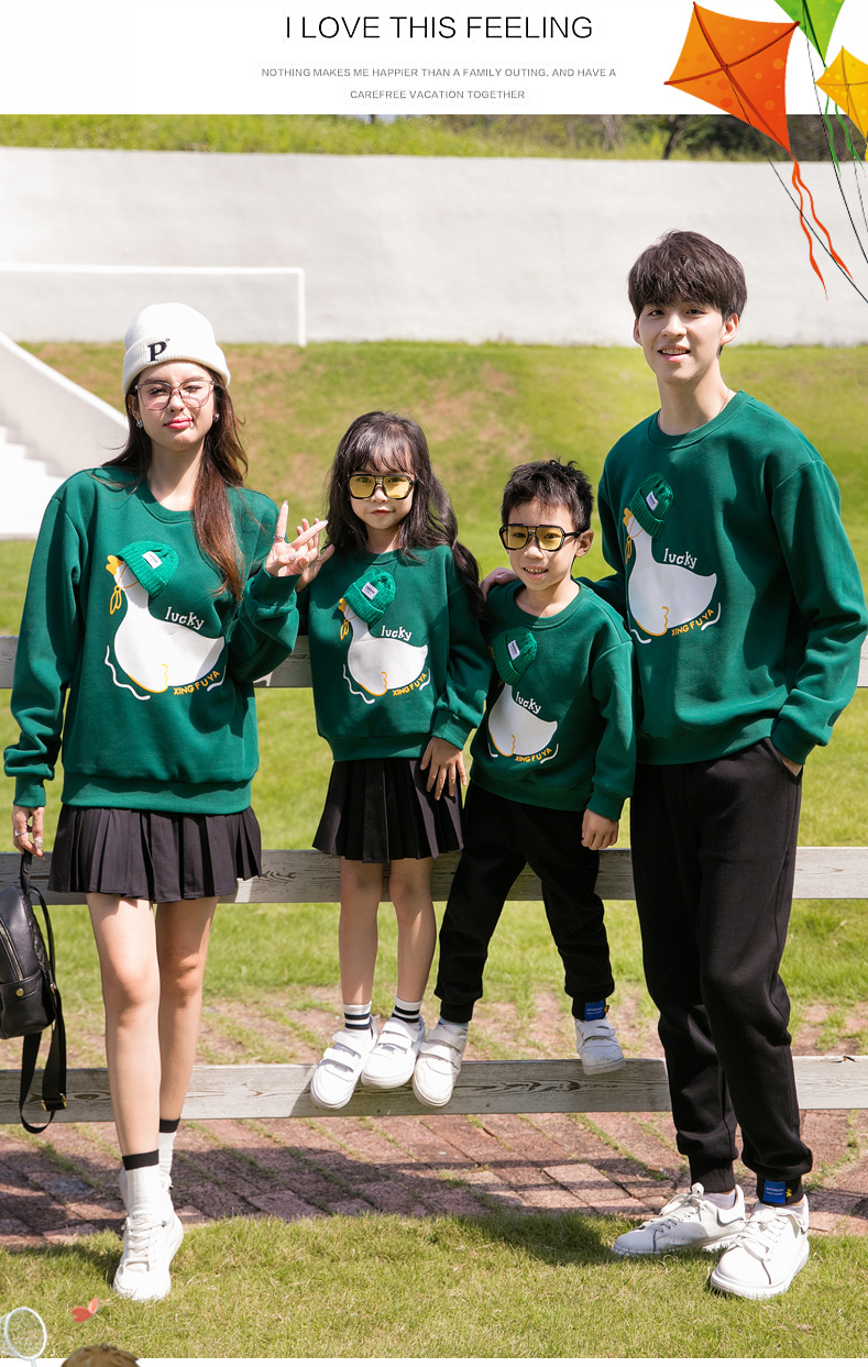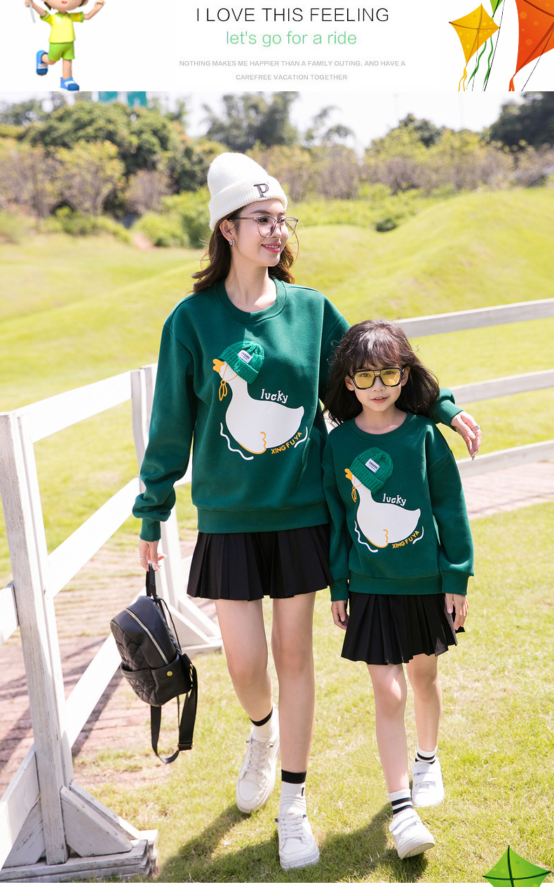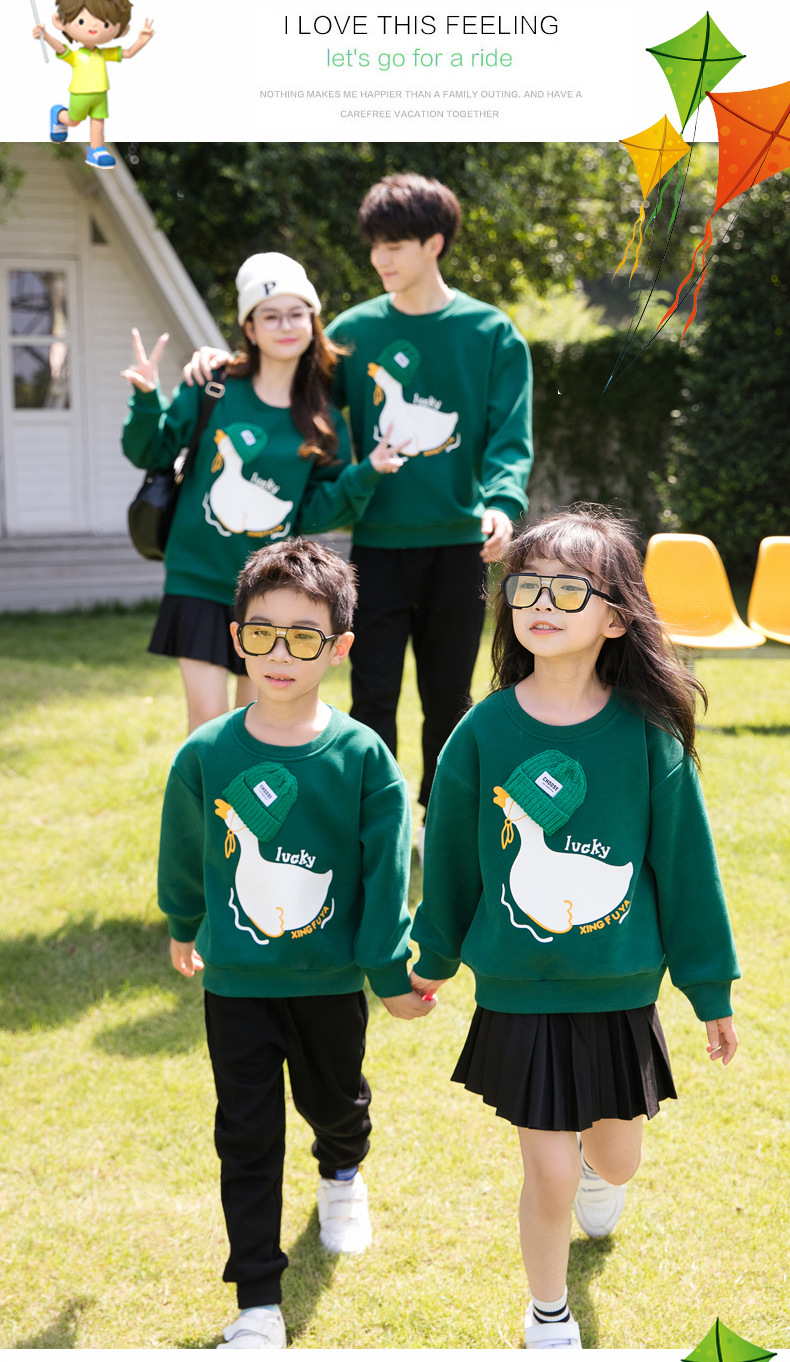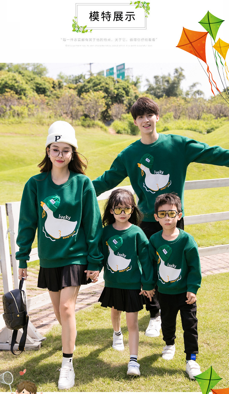 2023 desgaste de padres e hijos Otoño e Invierno Nuevo suéter forrado de lana traje de una familia de tres cuello redondo madre e hija manga larga familia de dibujos animados desgaste
