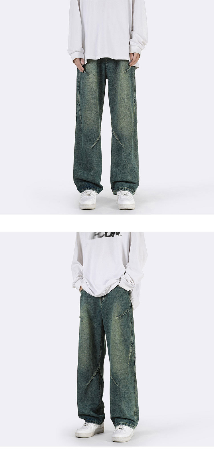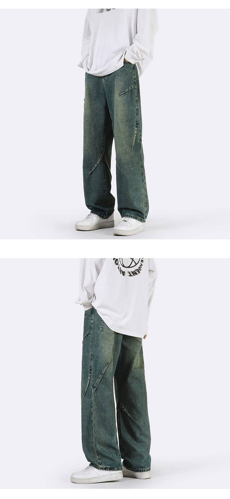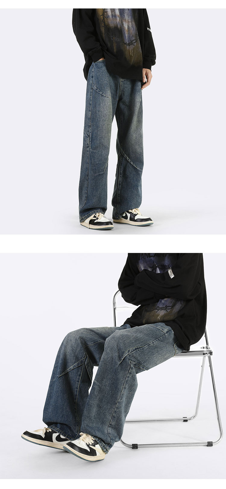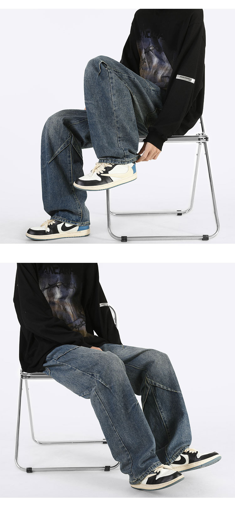 Retro azul pierna ancha pantalones vaqueros de los hombres sueltos rectos 2023 nueva American High Street pantalones otoño trajes