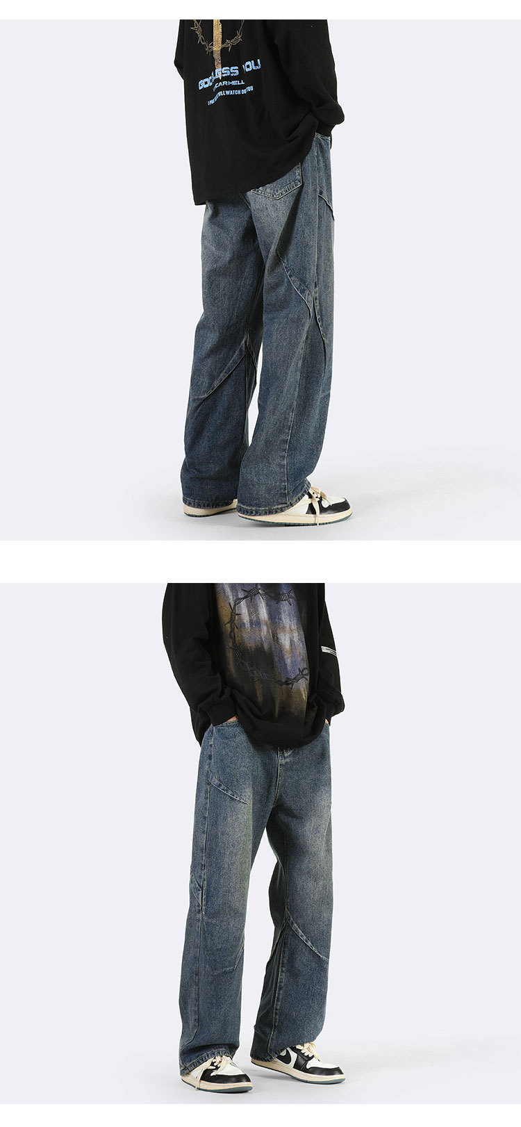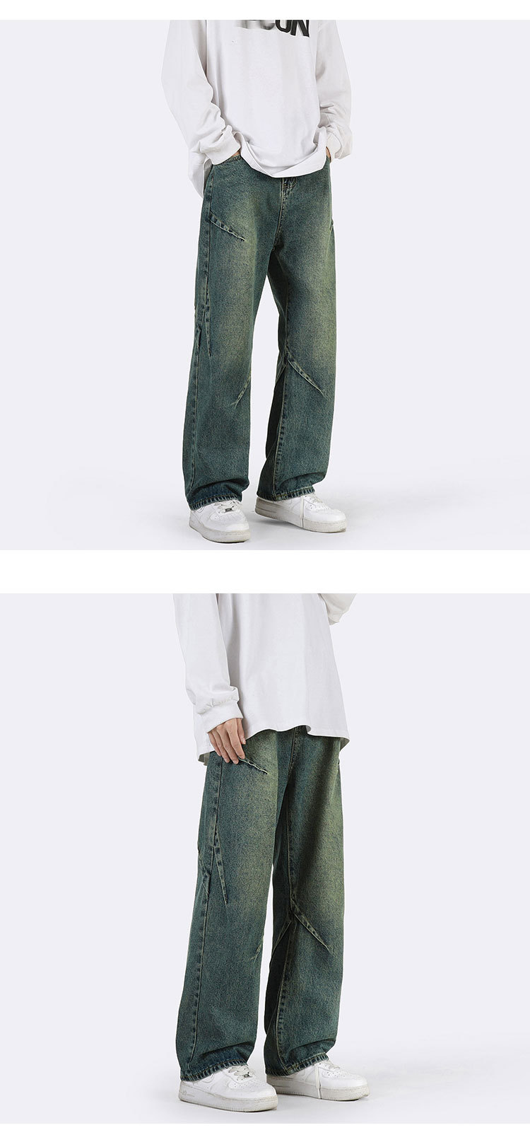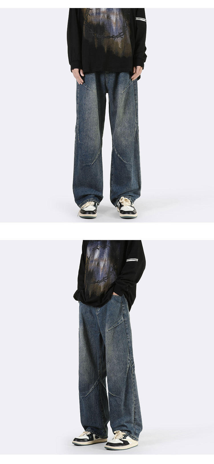 Retro azul pierna ancha pantalones vaqueros de los hombres sueltos rectos 2023 nueva American High Street pantalones otoño trajes