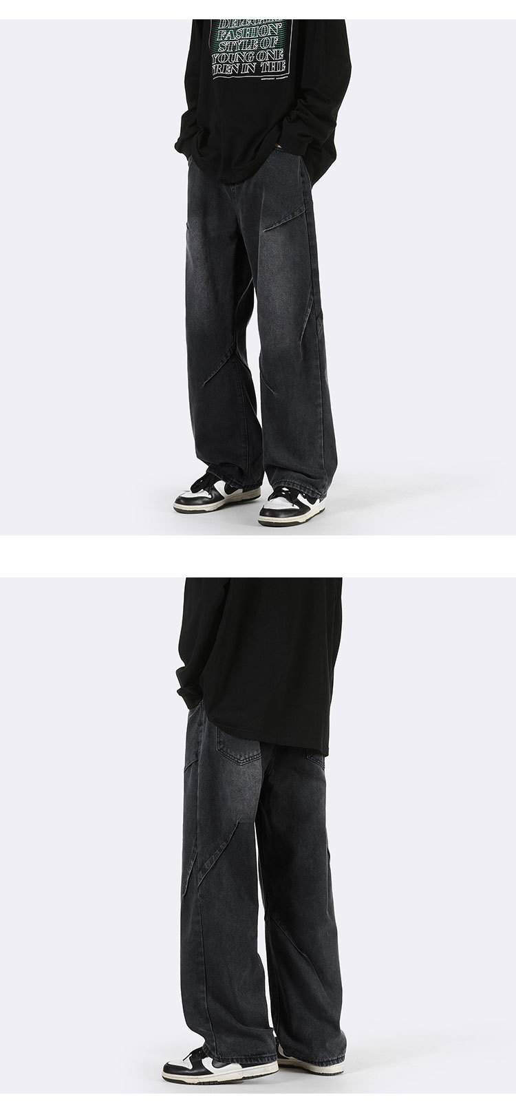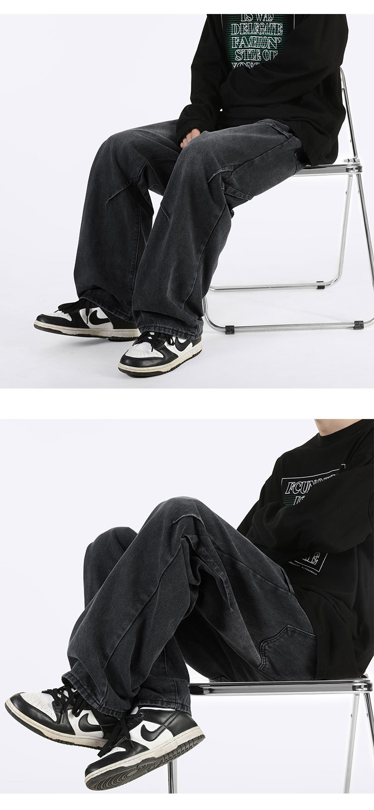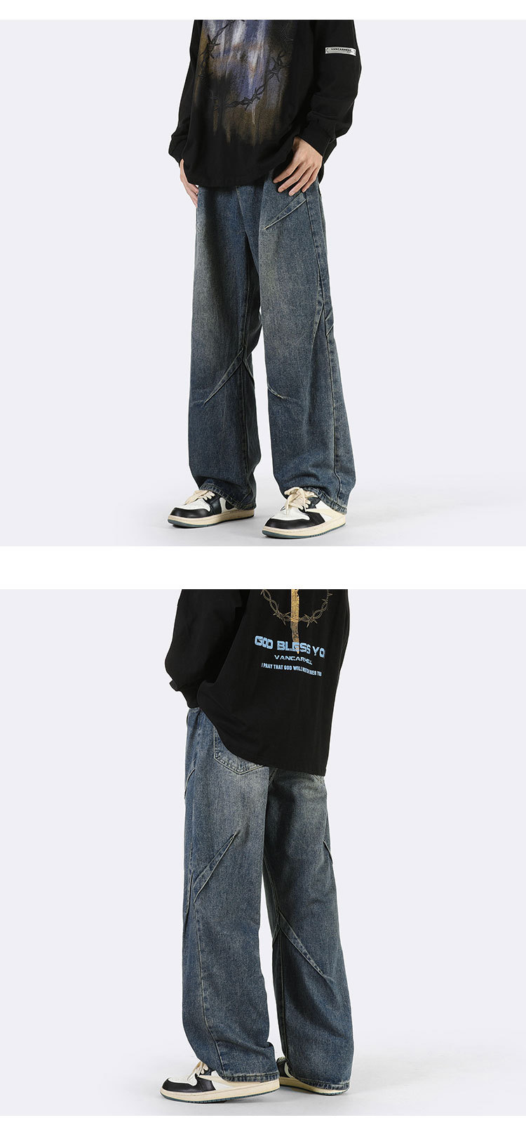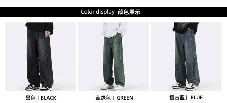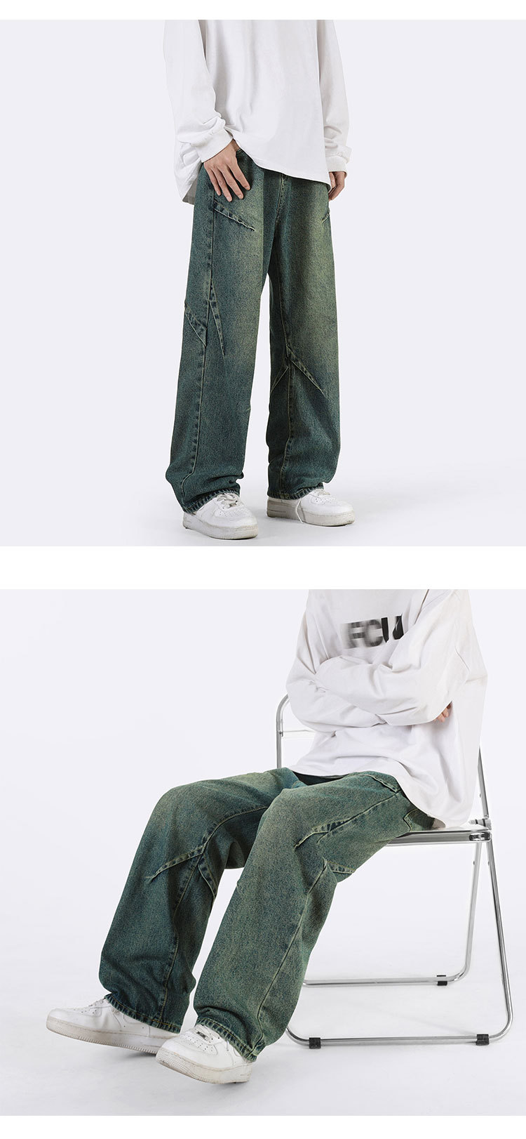Retro azul pierna ancha pantalones vaqueros de los hombres sueltos rectos 2023 nueva American High Street pantalones otoño trajes