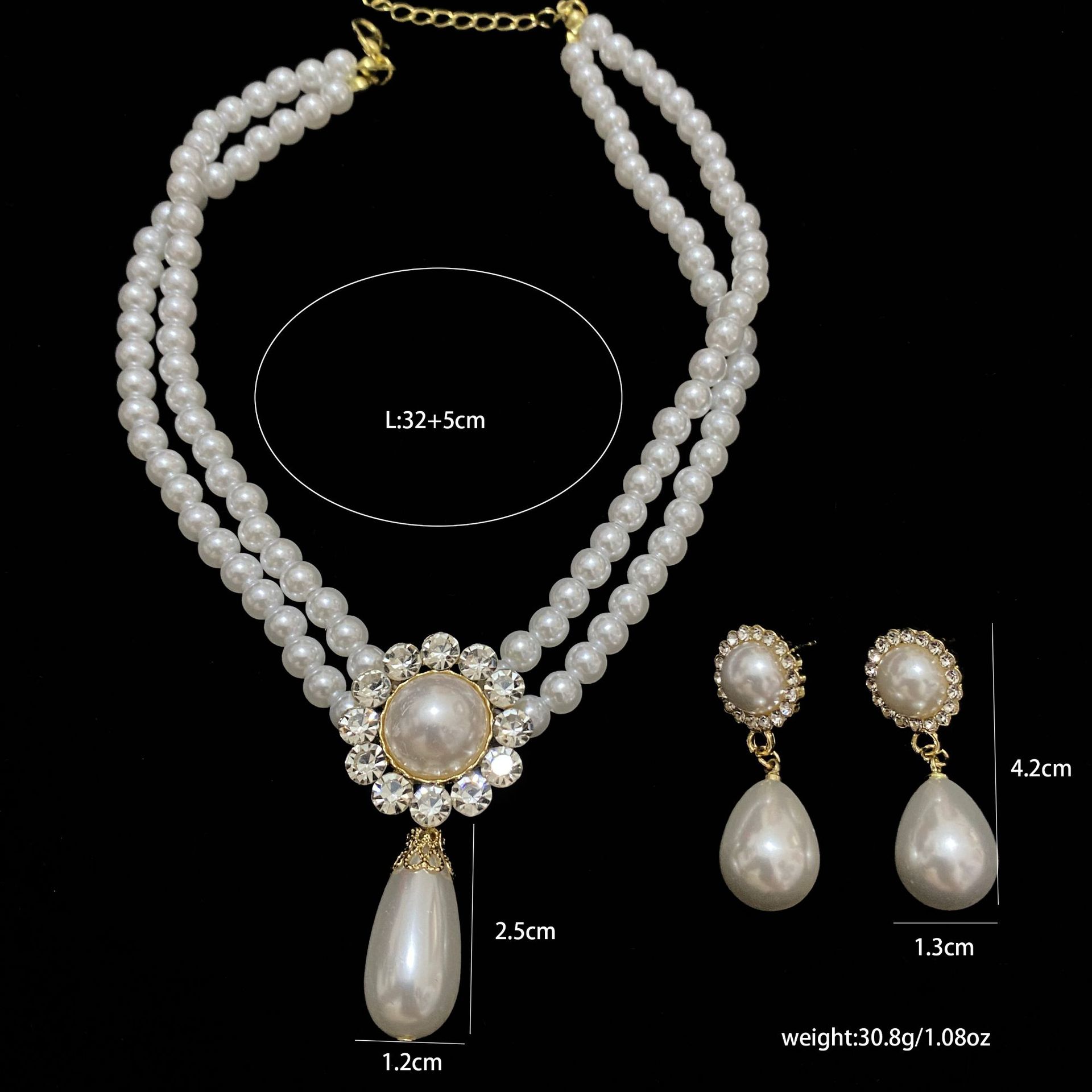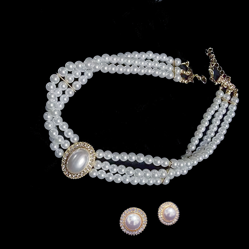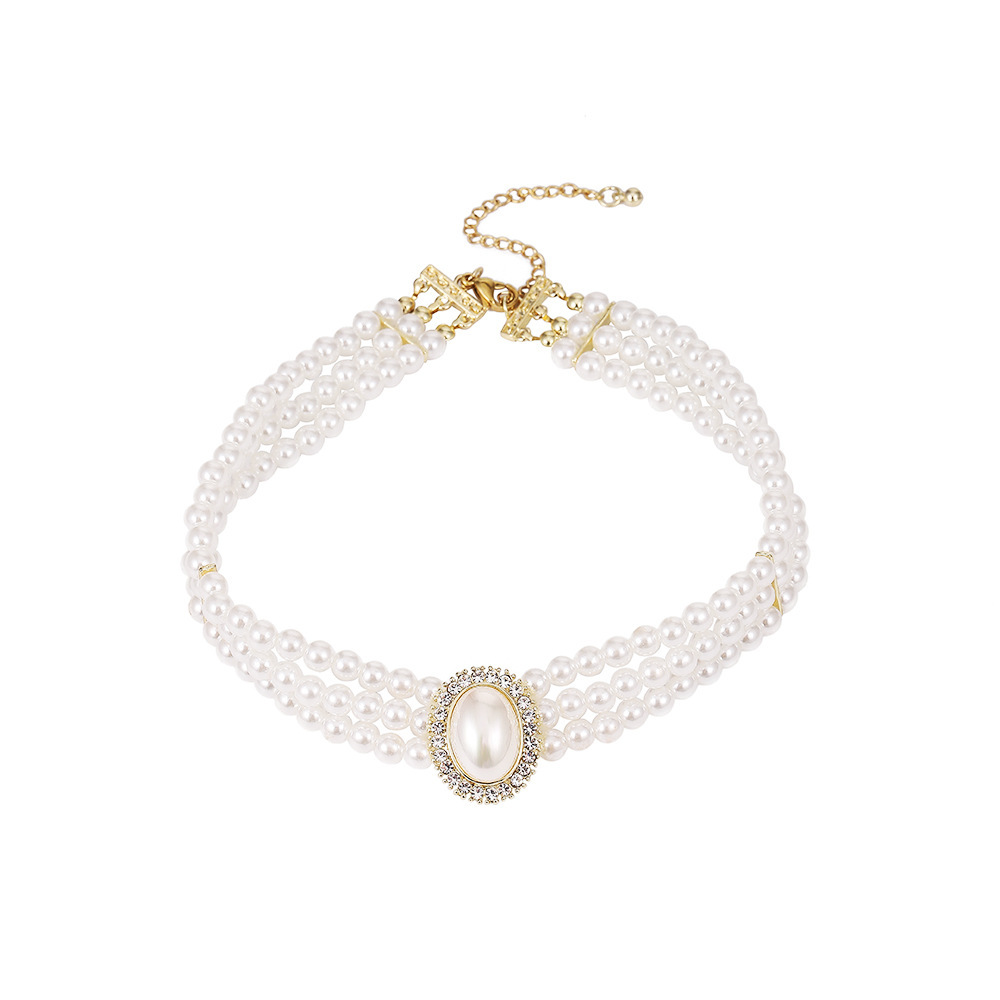 Luz de lujo simple retro oval Super Flash perla collar nupcial de las mujeres vestido de estilo francés vestido de novia pendientes de cadena de rendimiento