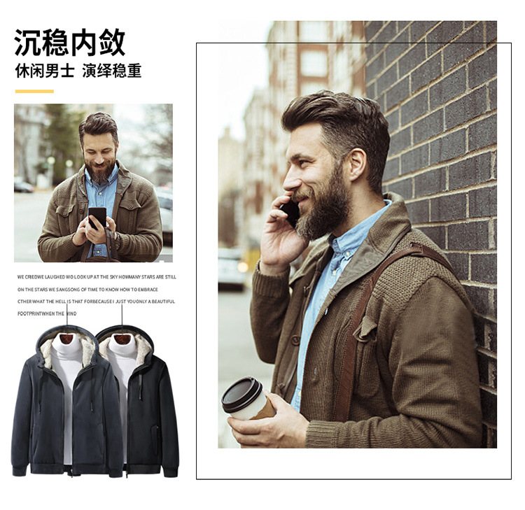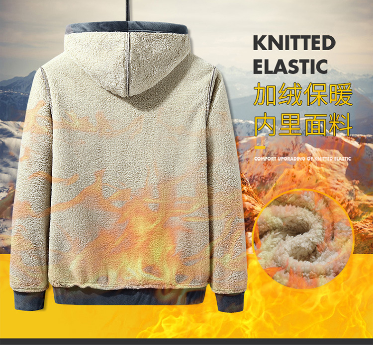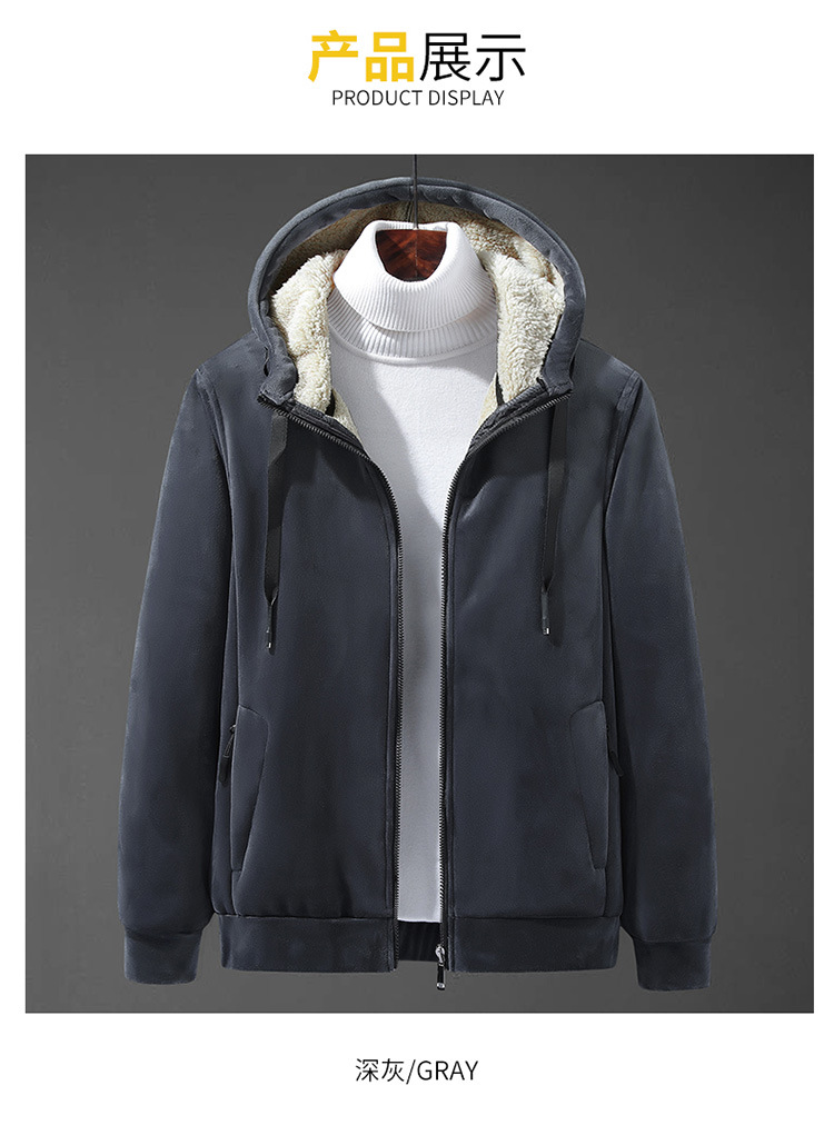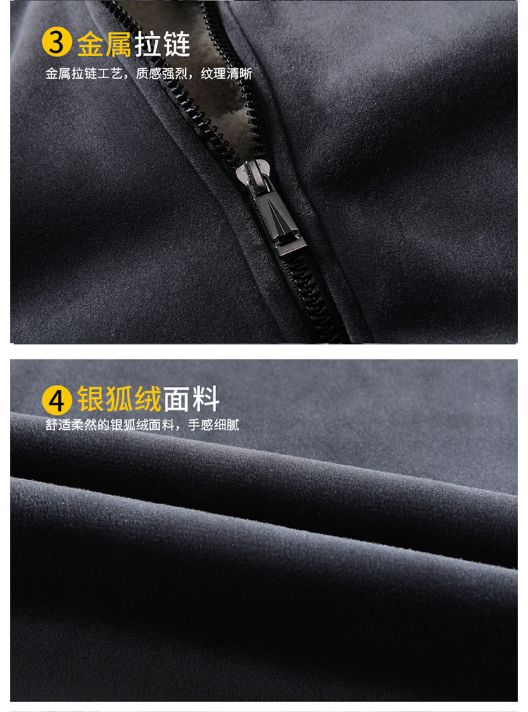 Otoño e Invierno nuevos hombres de terciopelo zorro plateado con capucha engrosada suéter estilo coreano versátil casual lana de cordero caliente chaqueta casual