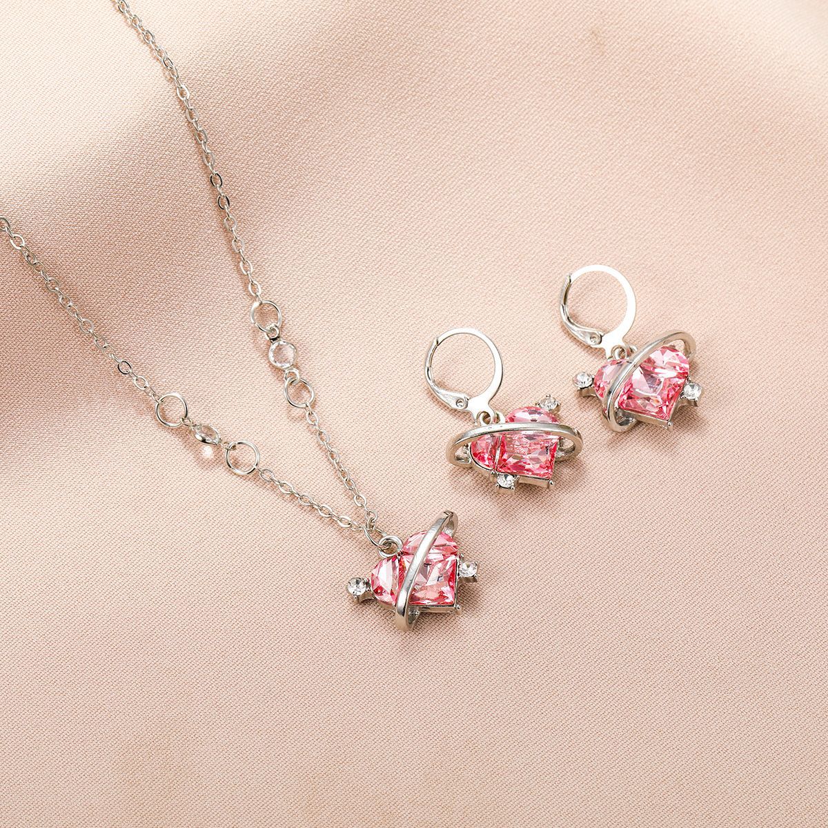 Transfronteriza Venta caliente dulce fresco estilo Rosa circón amor planeta pendientes collar traje temperamento de la personalidad femenina traje de la joyería