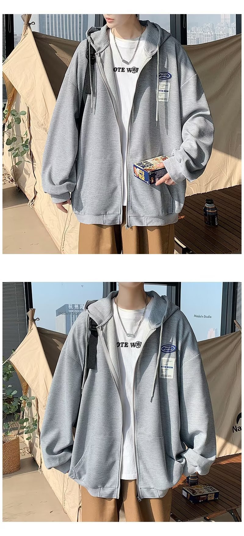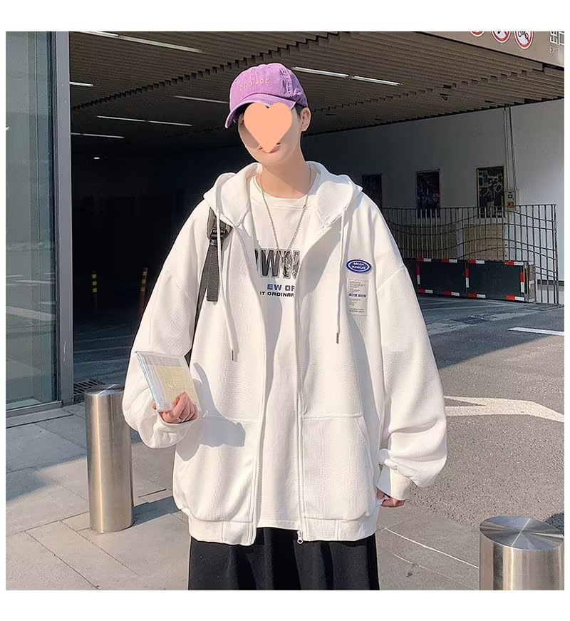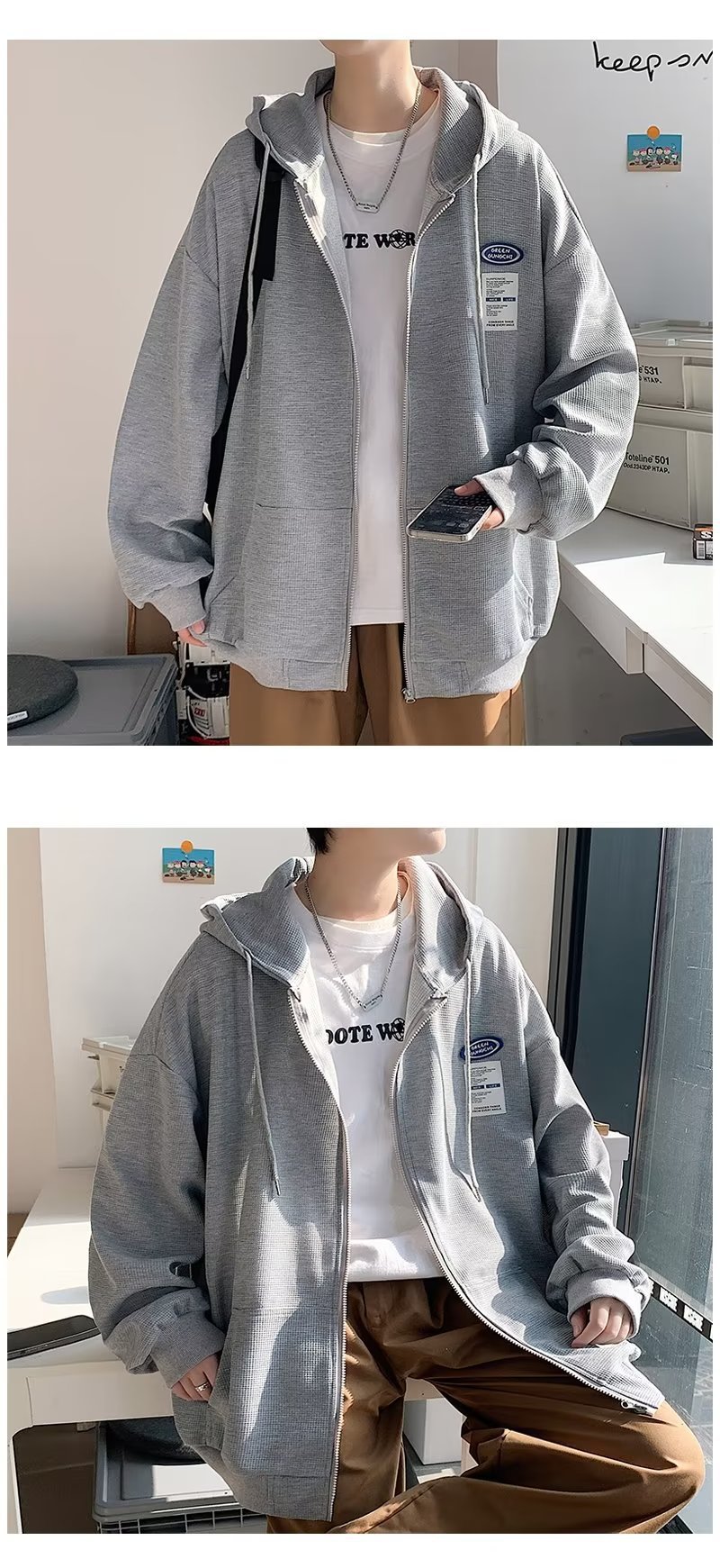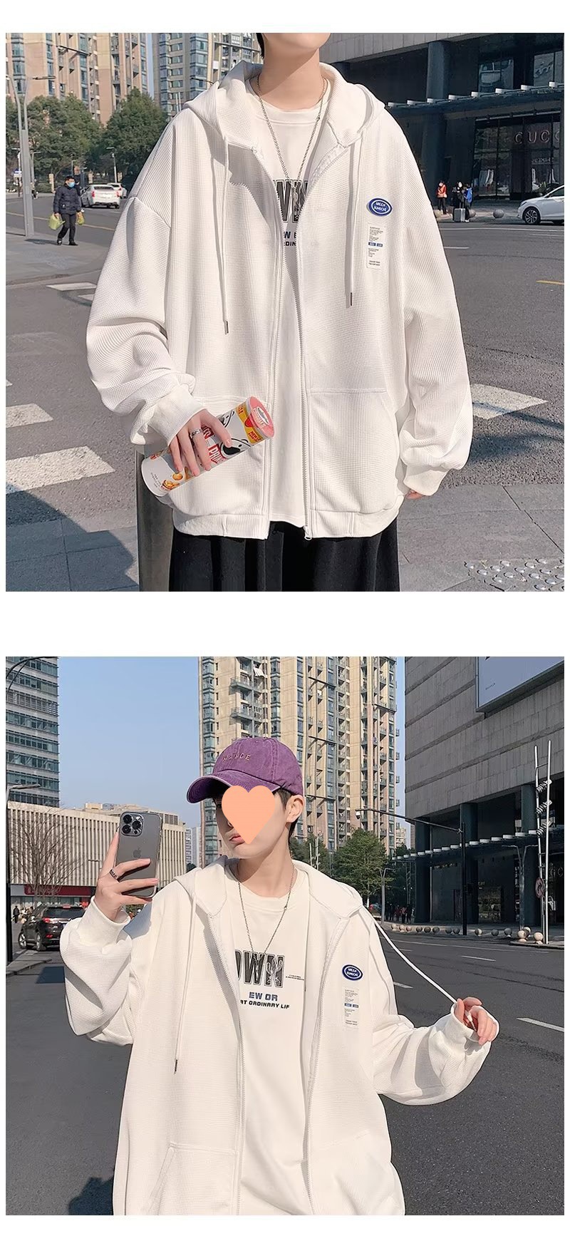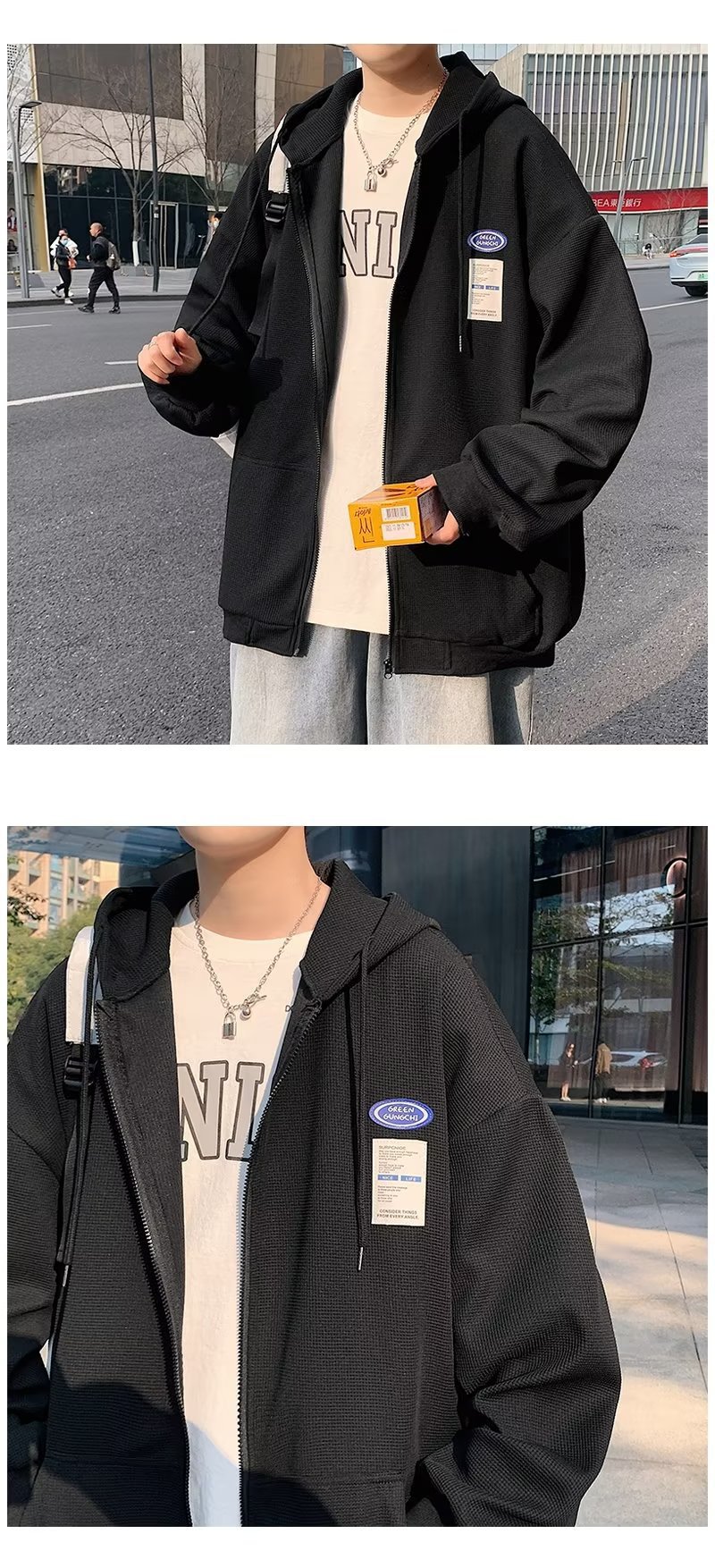 2023 otoño insignia diseño hombres y mujeres misma chaqueta con capucha waffle cardigan marca de moda estudiante otoño abrigo hombres