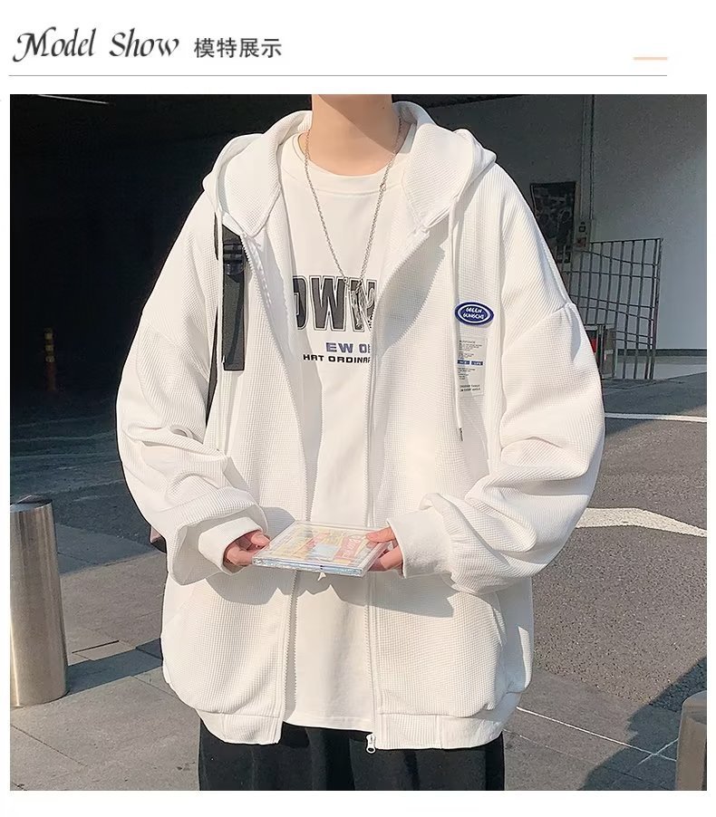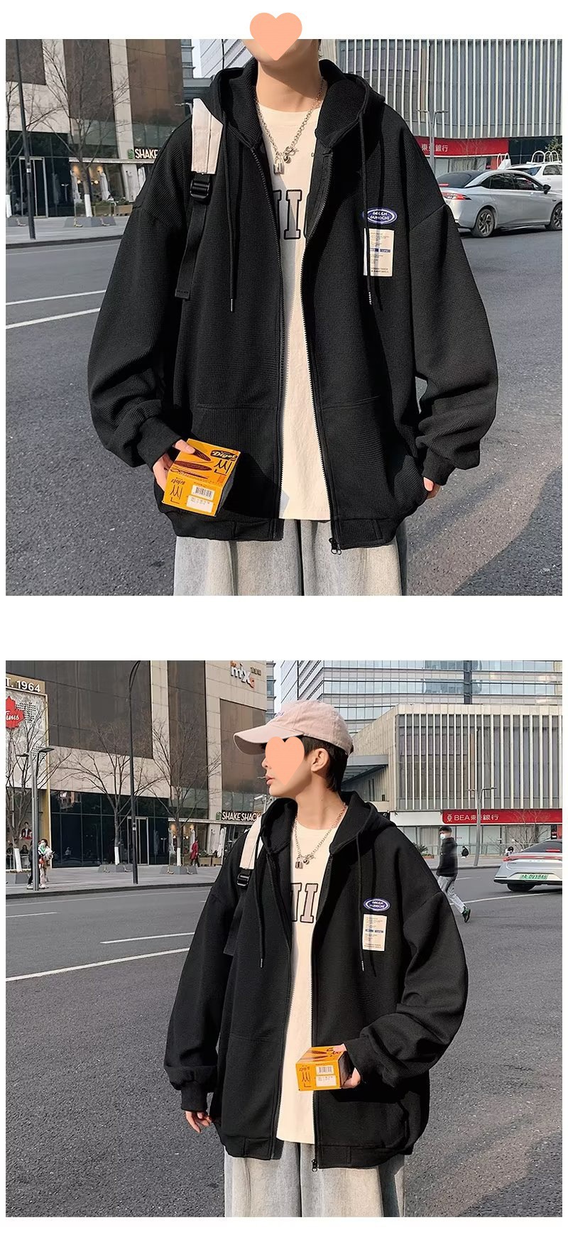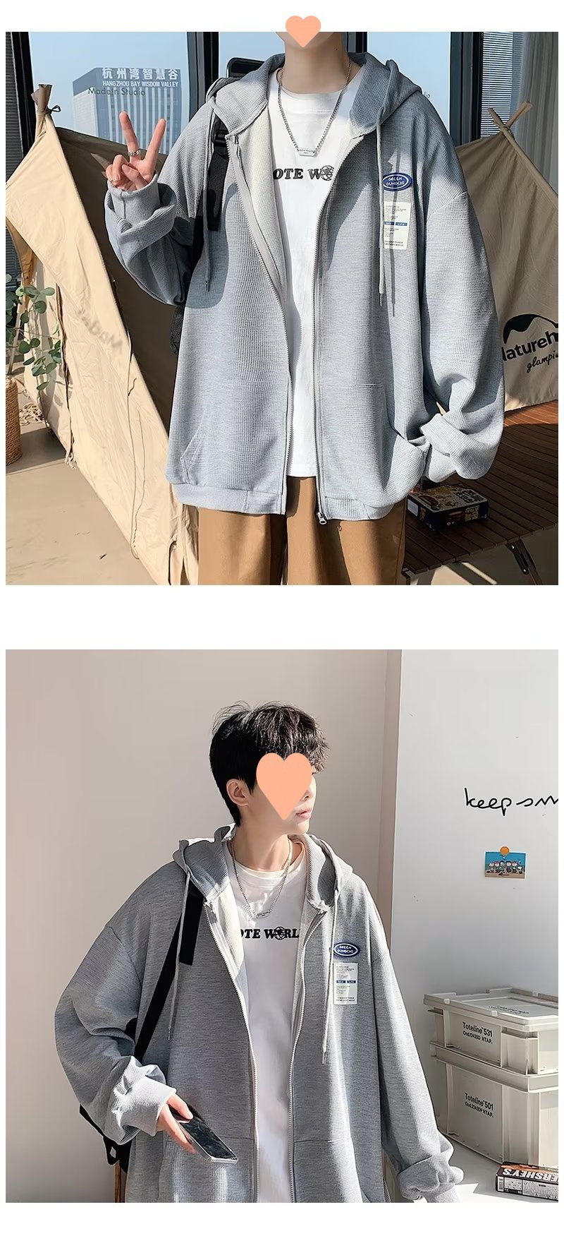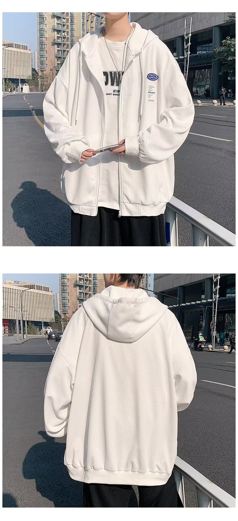 2023 otoño insignia diseño hombres y mujeres misma chaqueta con capucha waffle cardigan marca de moda estudiante otoño abrigo hombres