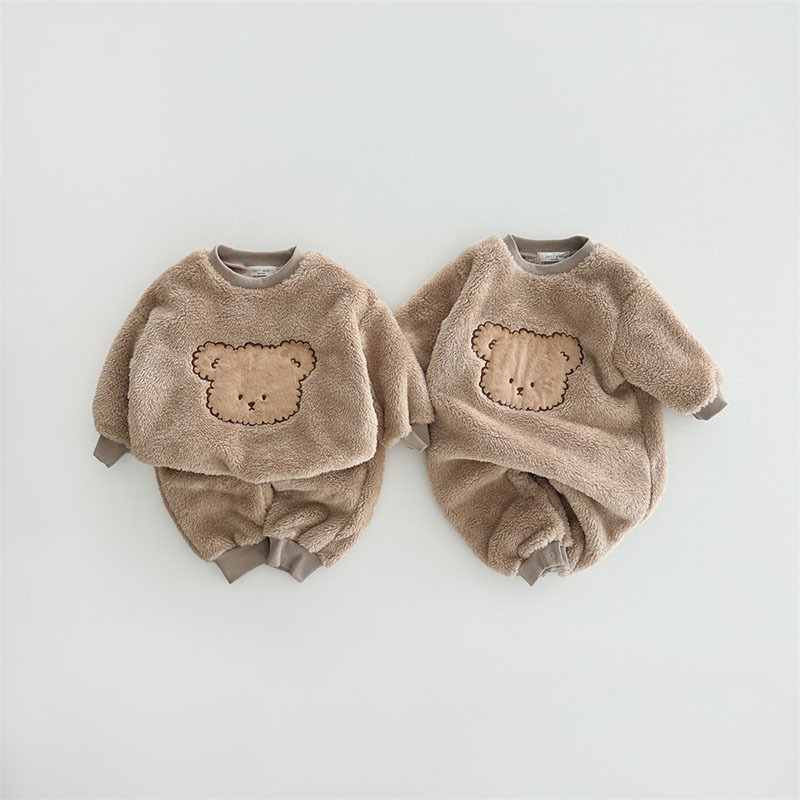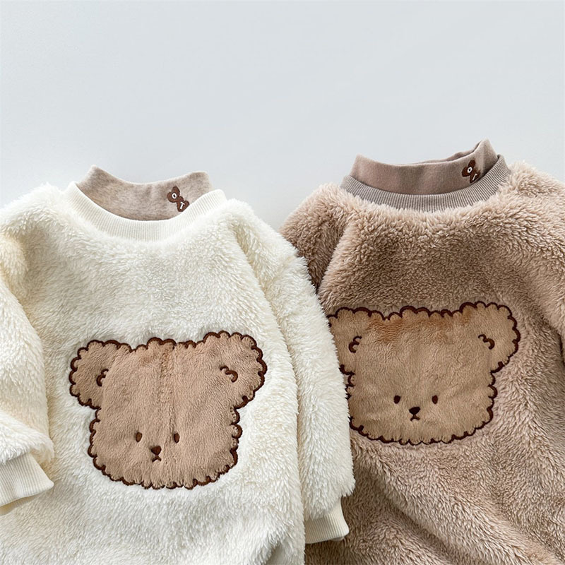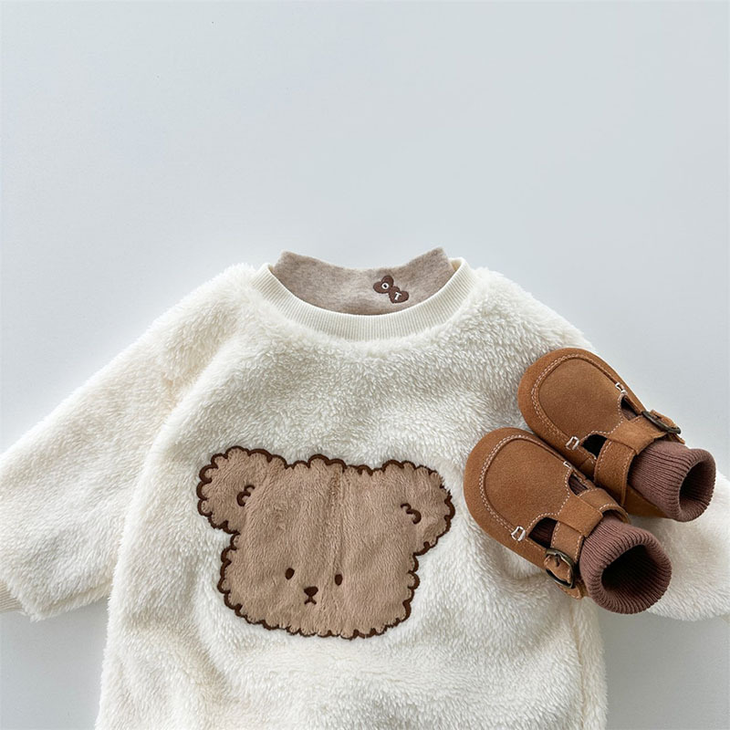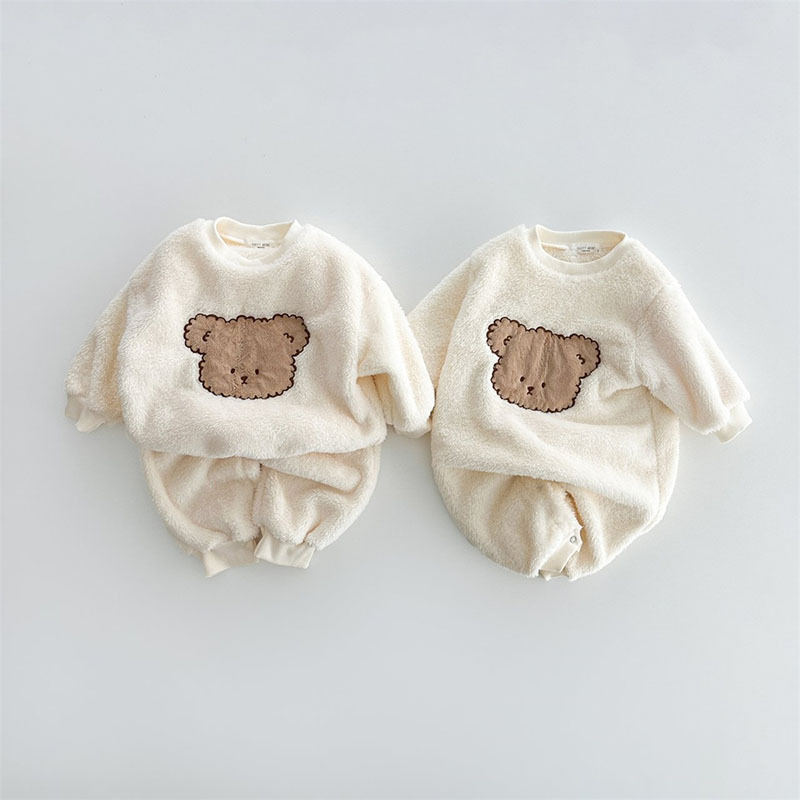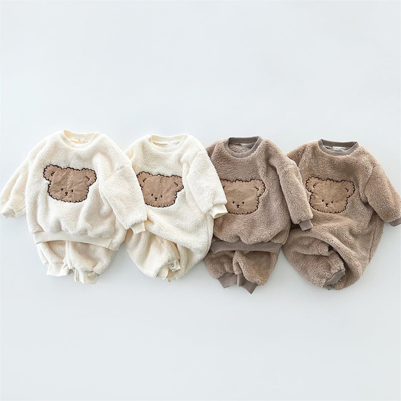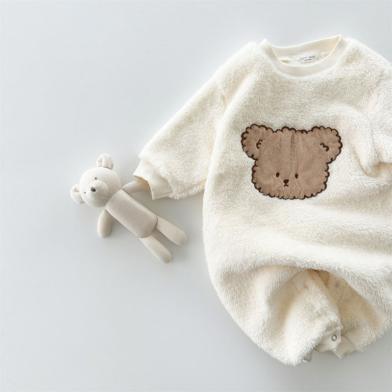 Estilo coreano nuevo bebé 23 invierno niños y niñas suave felpa mono romper desgaste al aire libre sombrero desmontable