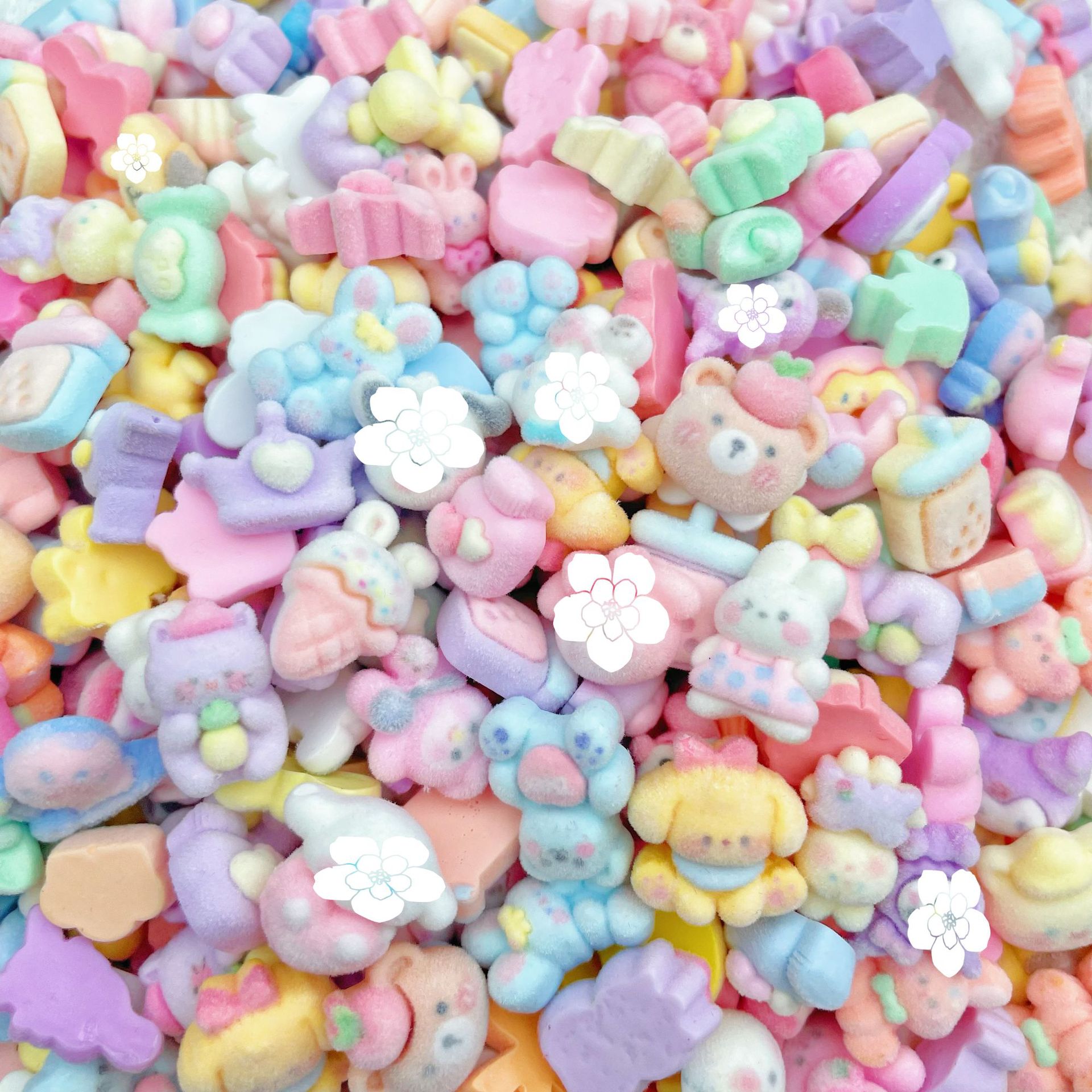 Mini Flocado de otoño e invierno de dibujos animados accesorios de resina tamaño pequeño gamuza espárragos crema de uñas accesorios de pegamento material DIY