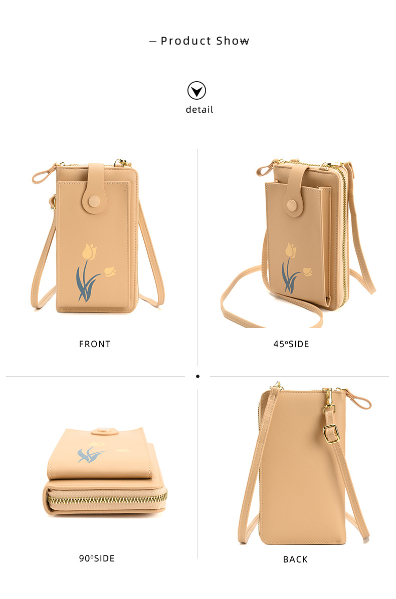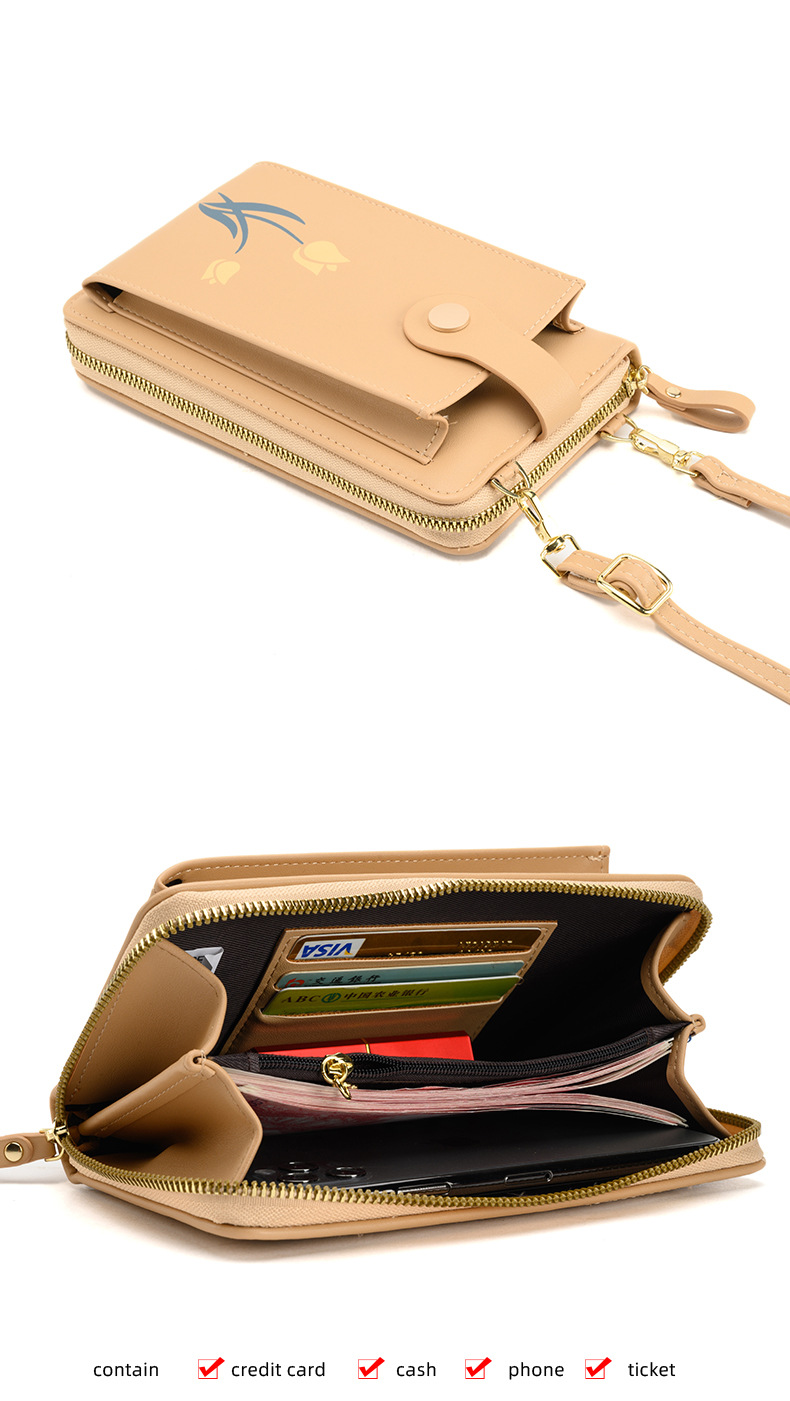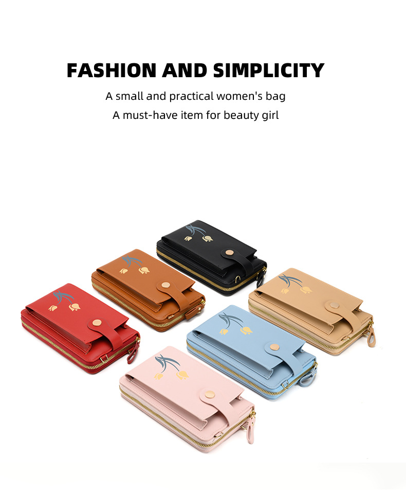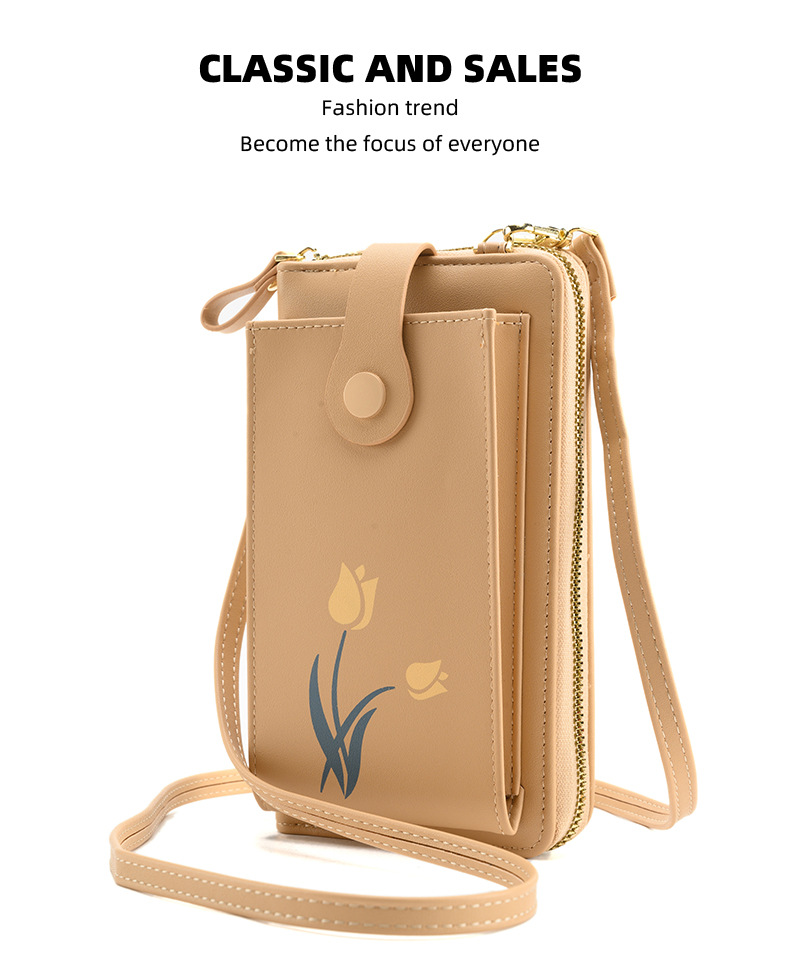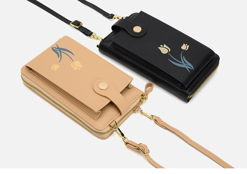 2023 nueva bolsa de mensajero de hombro impreso larga cartera multi-tarjeta de gran capacidad flor teléfono bolsa
