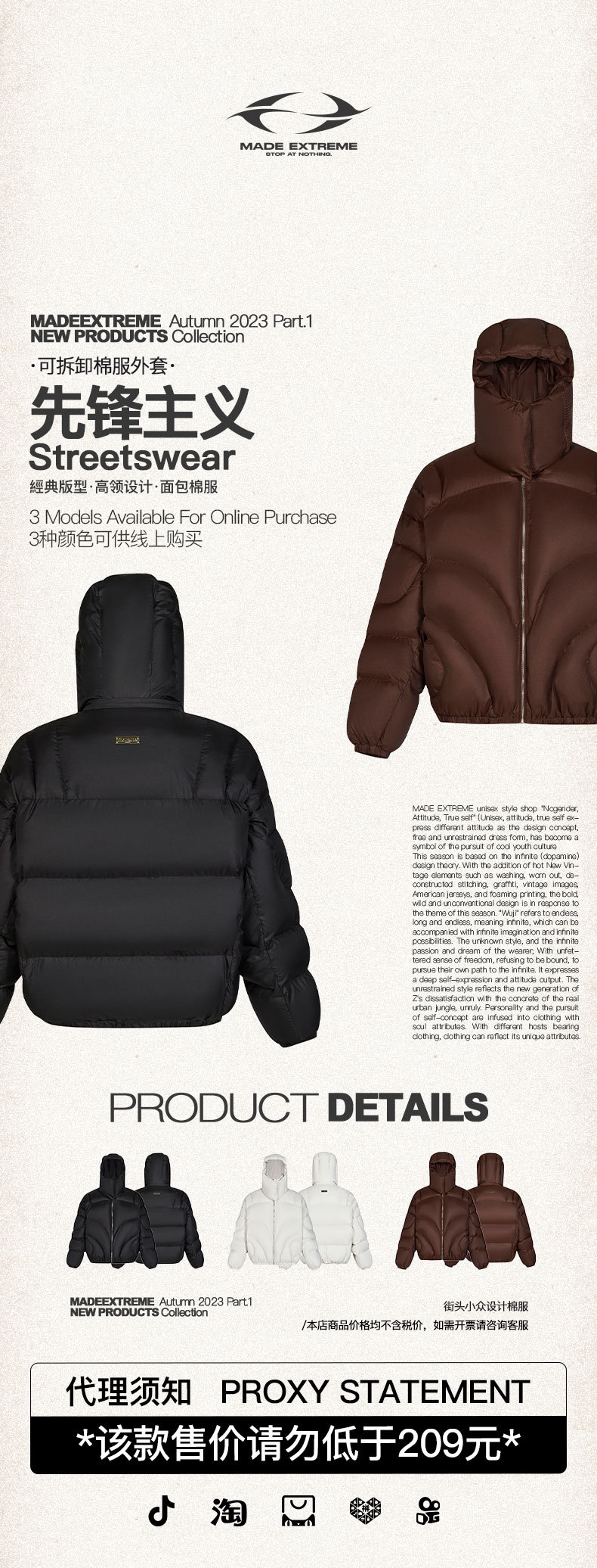MADEEXTREME pionero nicho de alta calidad multi-módulo perfil abrigo desmontable sombrero cuello engrosado abrigo de algodón acolchado para hombres