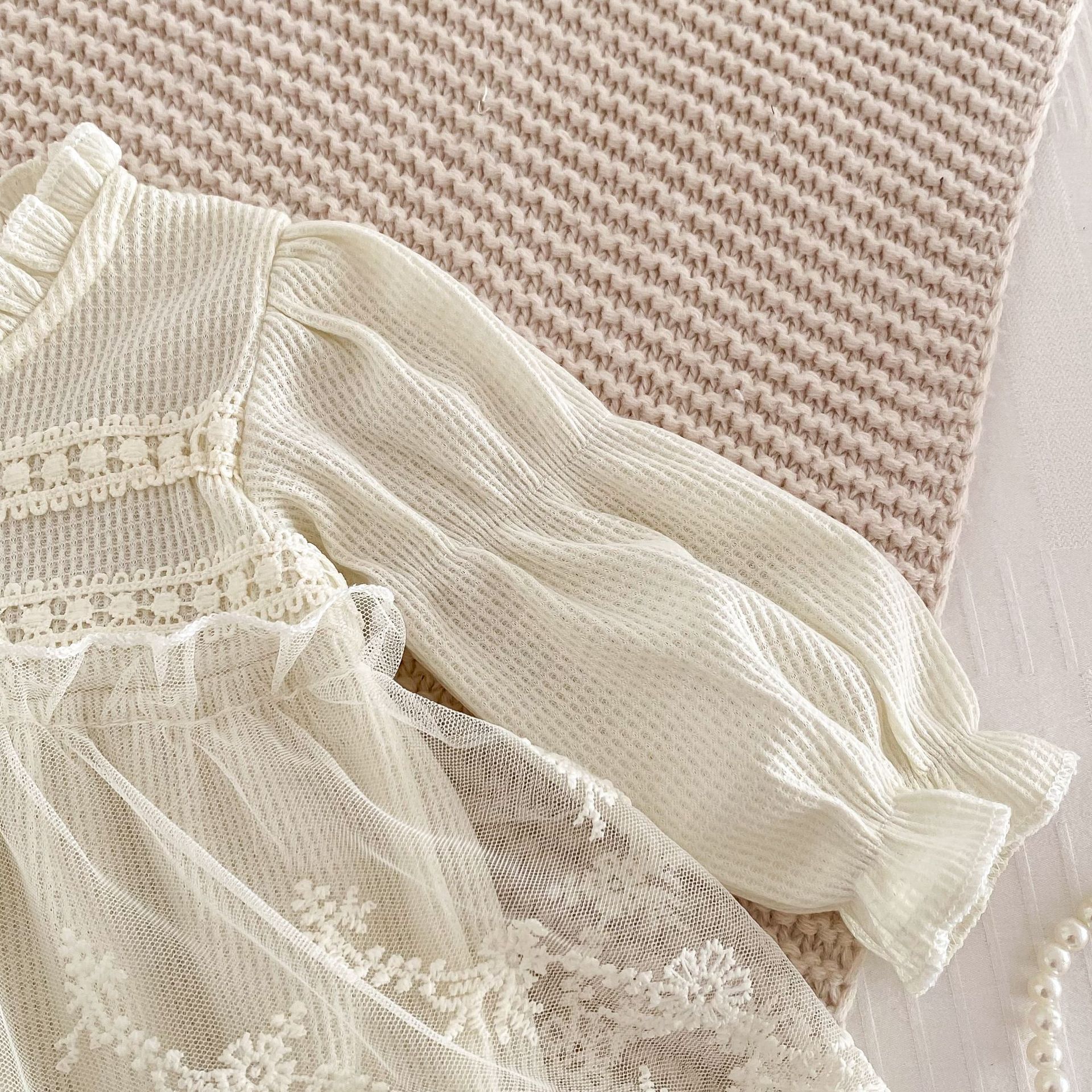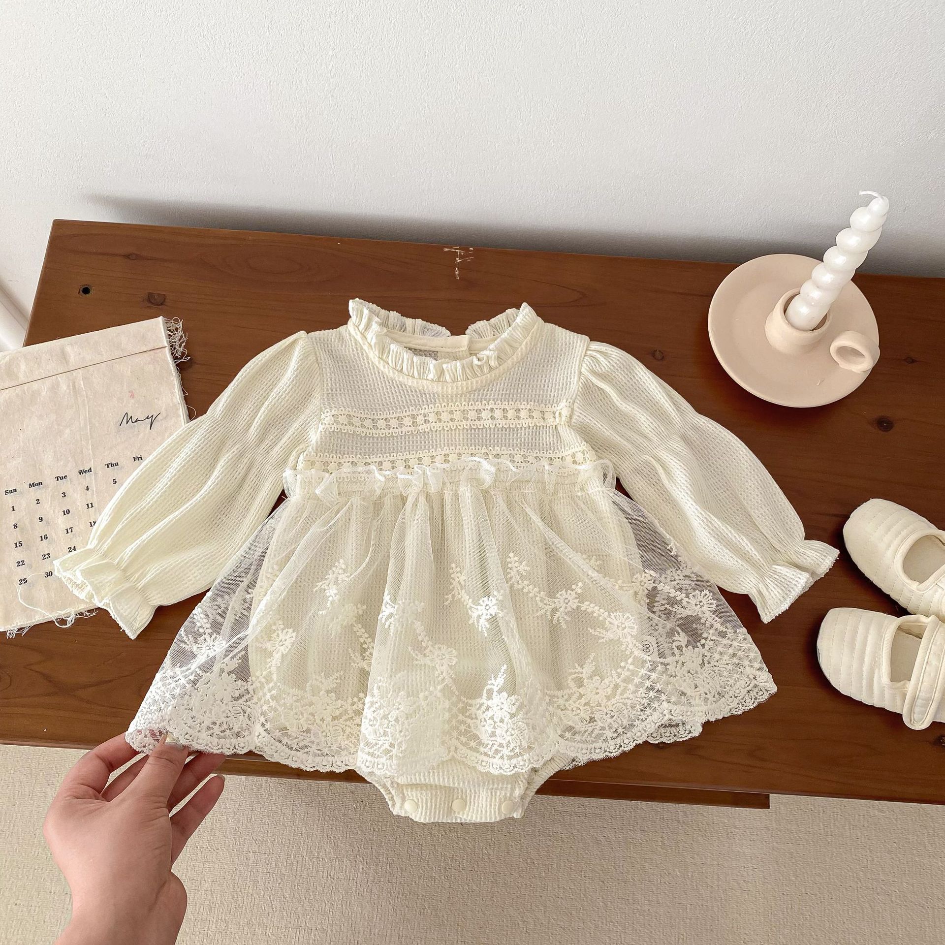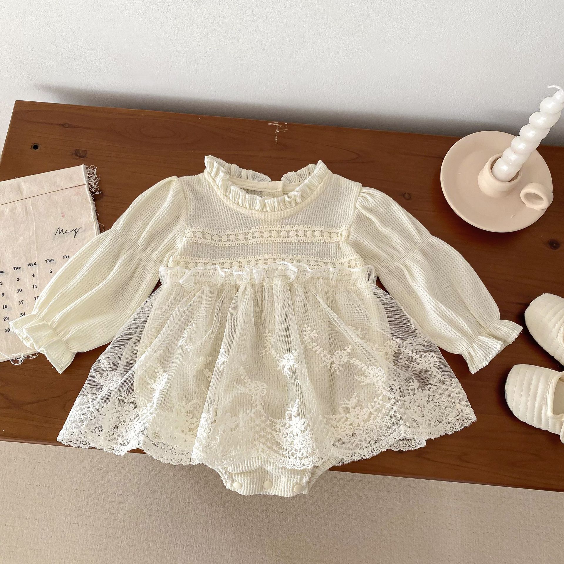Mameluco de Primavera y Otoño para Bebé Niña, Mono con Encaje Elegante para Recién Nacida, Vestido de Princesa para Gatear