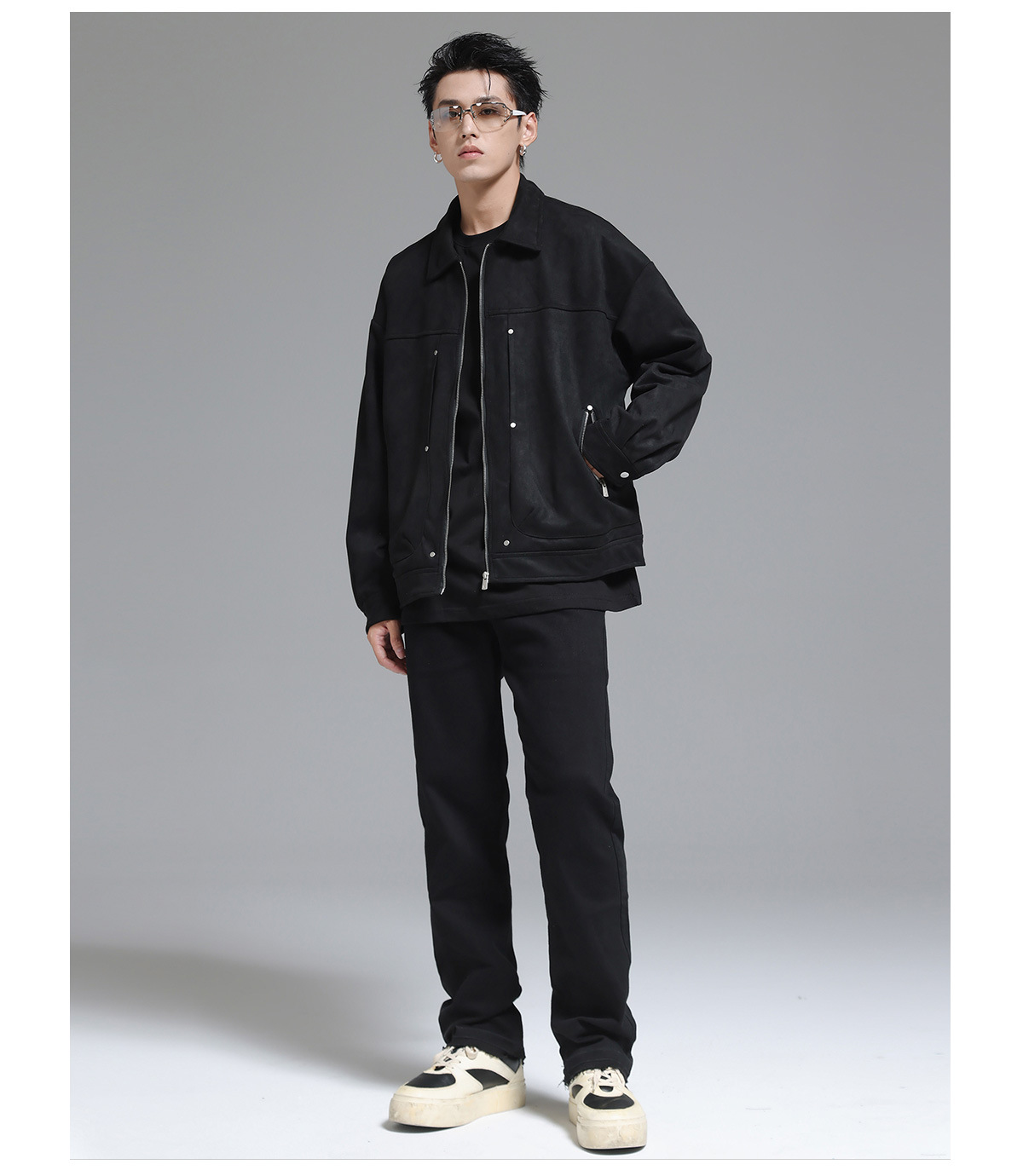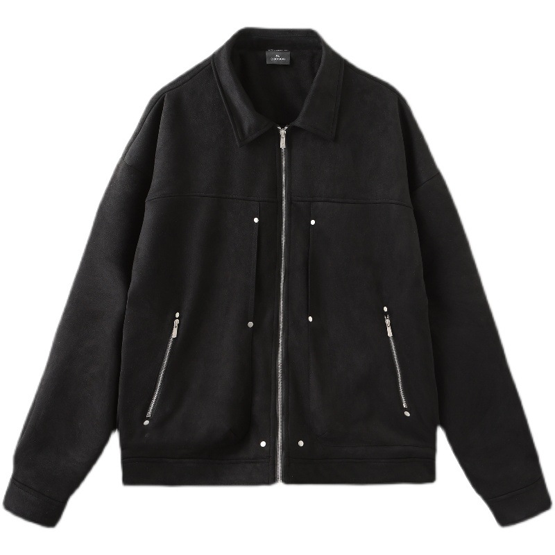 Cremallera básica abrigo hombres Otoño e Invierno Suede ropa herramientas americano 2023 nueva chaqueta de solapa superior moda