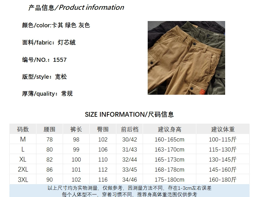 Nuevo mono de Bolsillo grande retro para hombres pantalones casuales de moda sueltos de todo el partido de pana de moda Pantalones americanos atados al tobillo