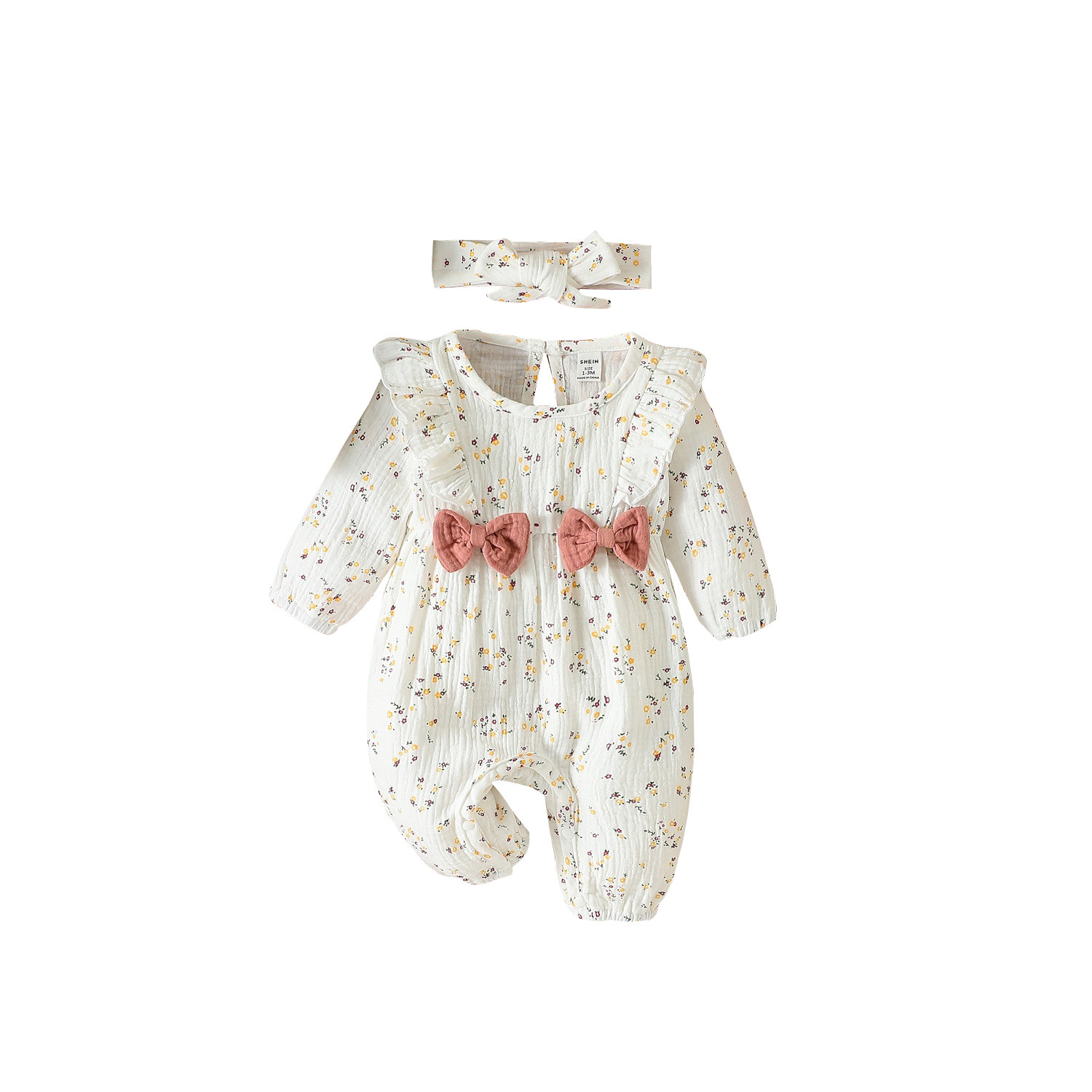 Comercio exterior Amazon transfronterizo bebé 0-Junio gatear ropa pequeña floral largo mameluco + banda de pelo