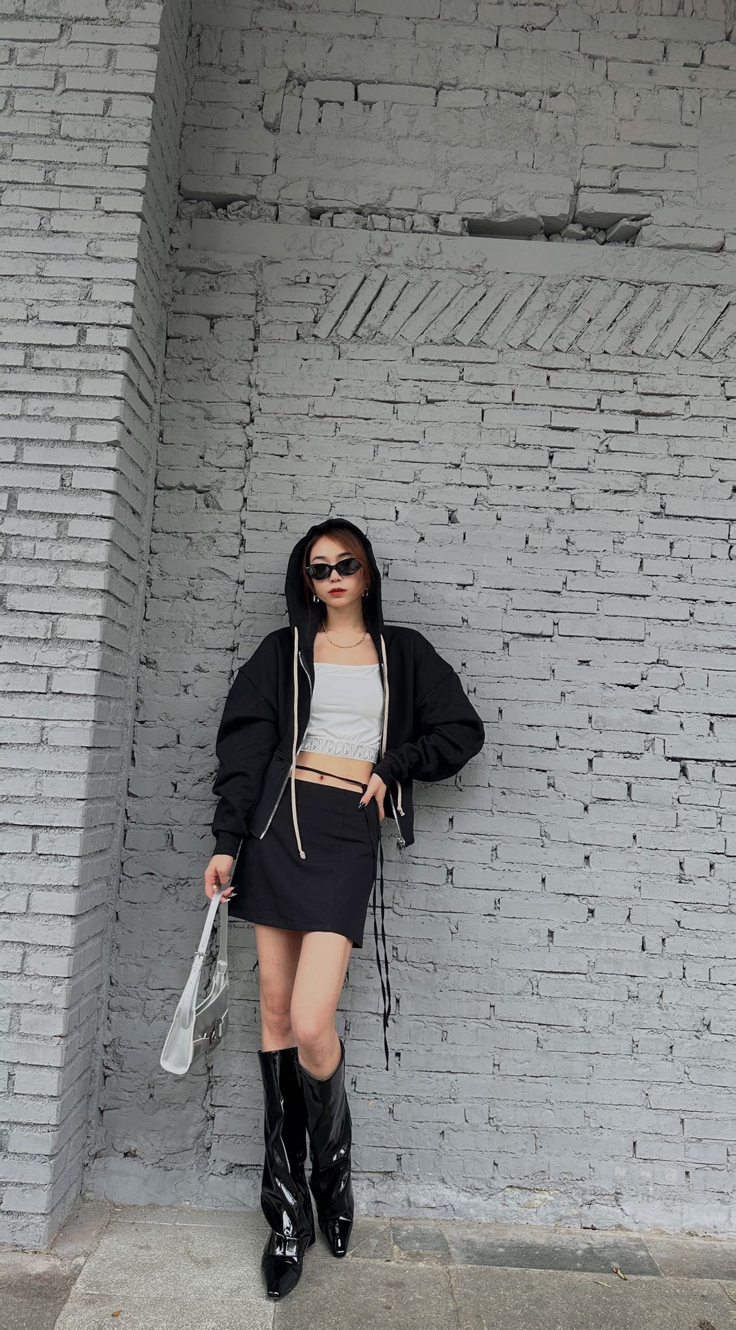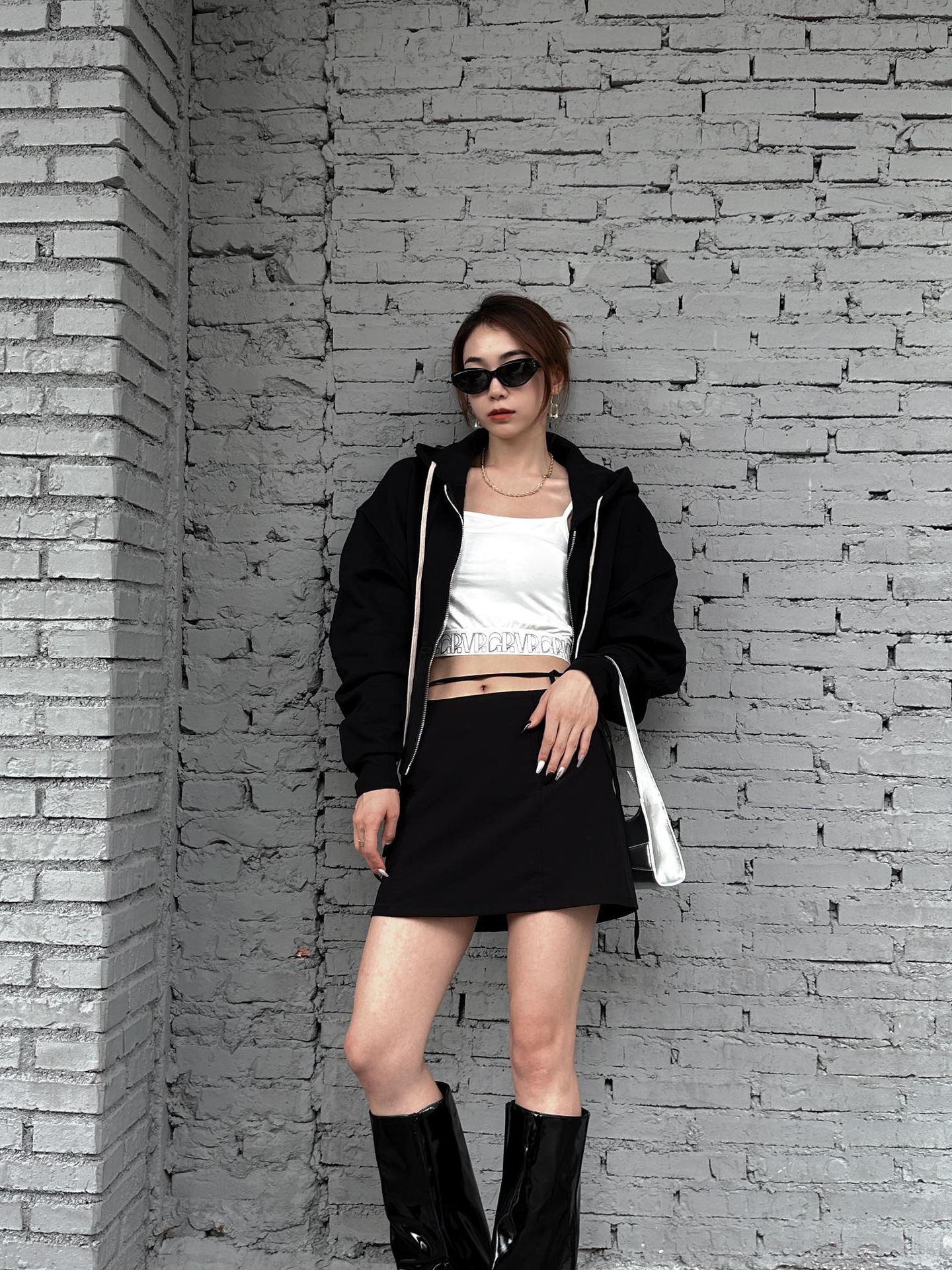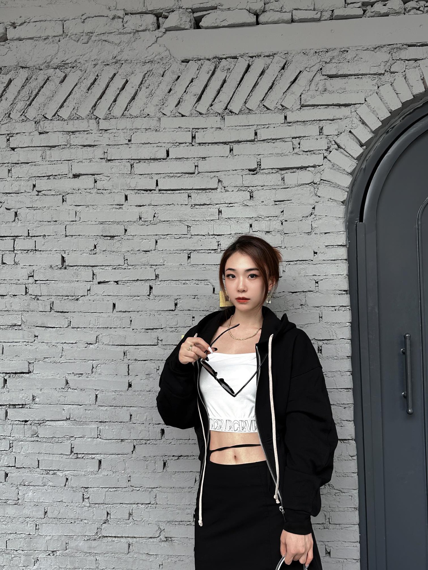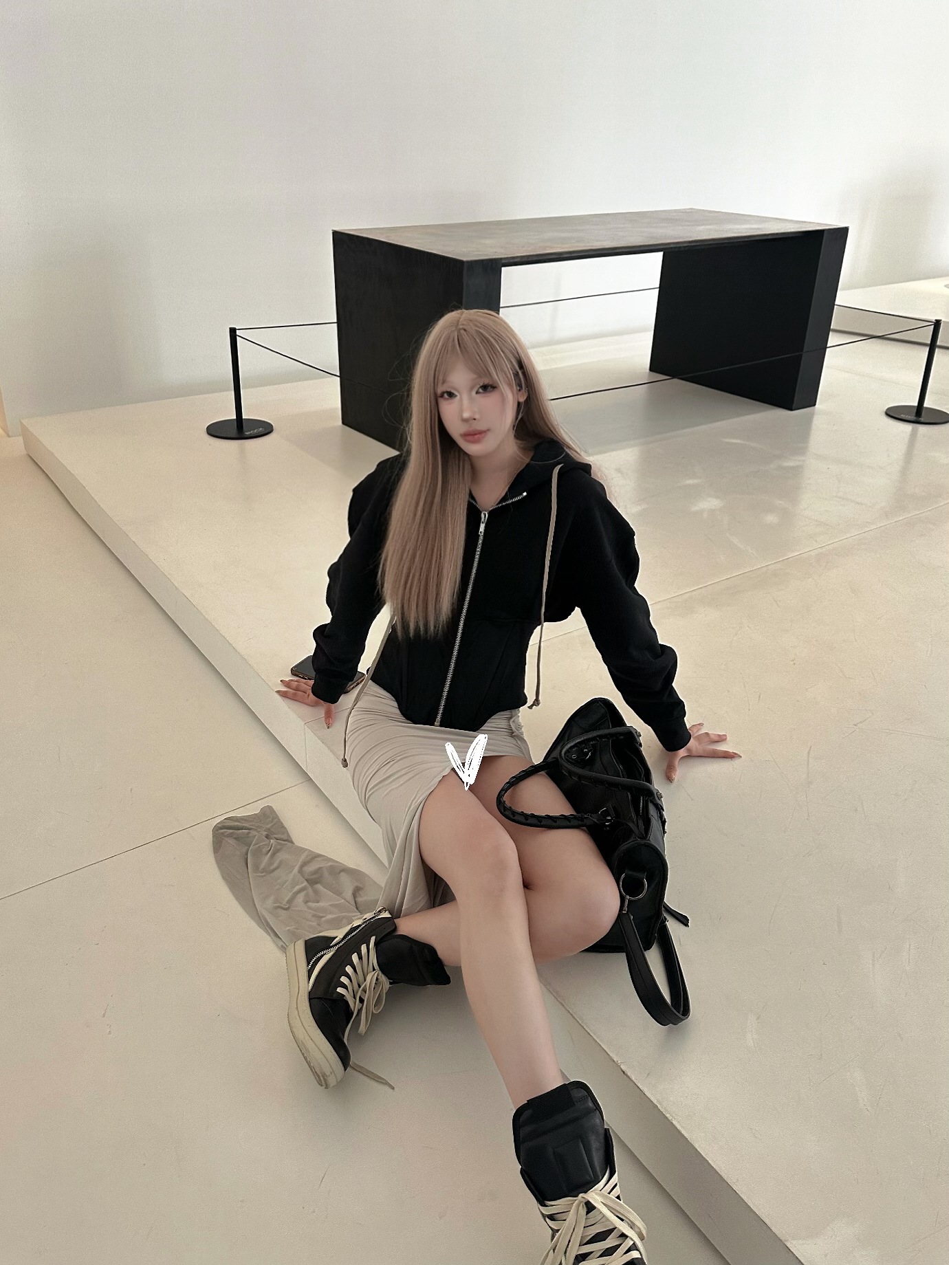 Subhuman de las mujeres oscuro diseño la personalidad Slein Slim capucha suéter corto chaqueta cremallera knit