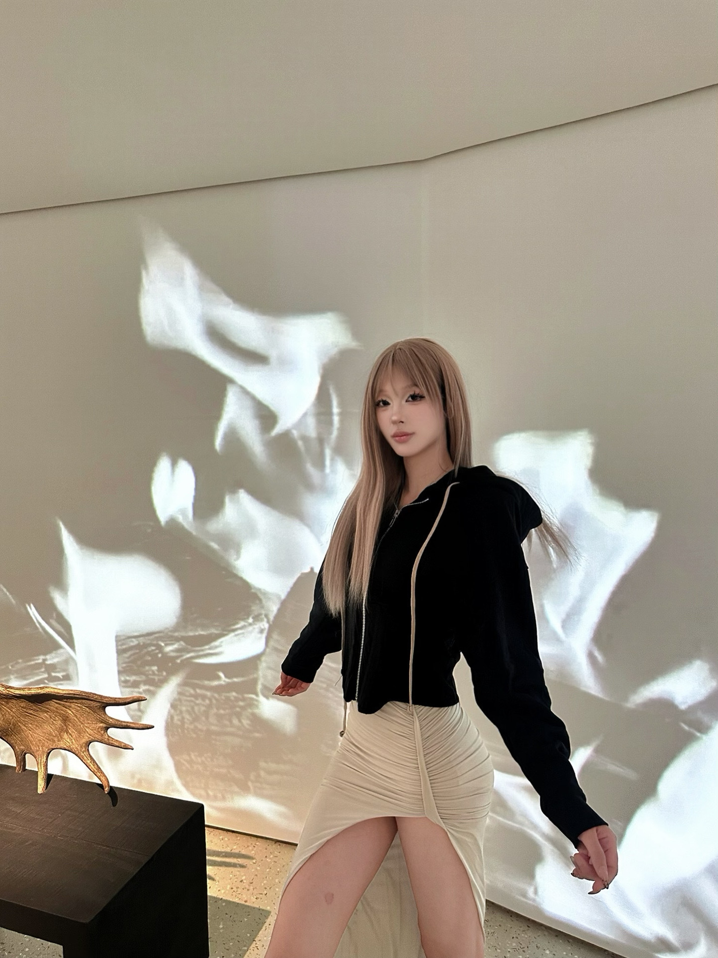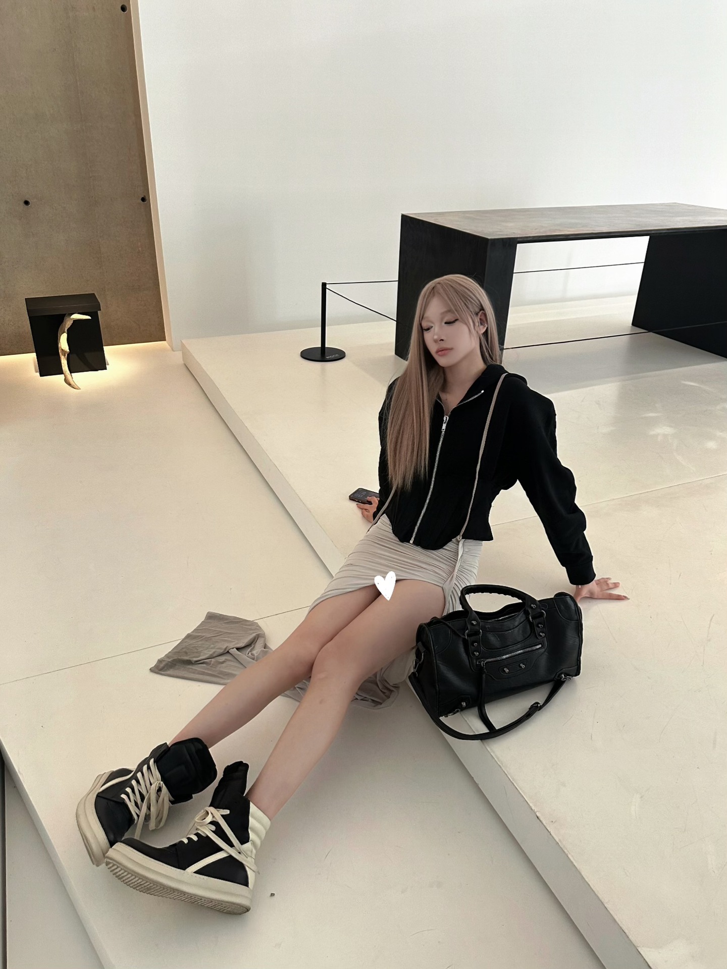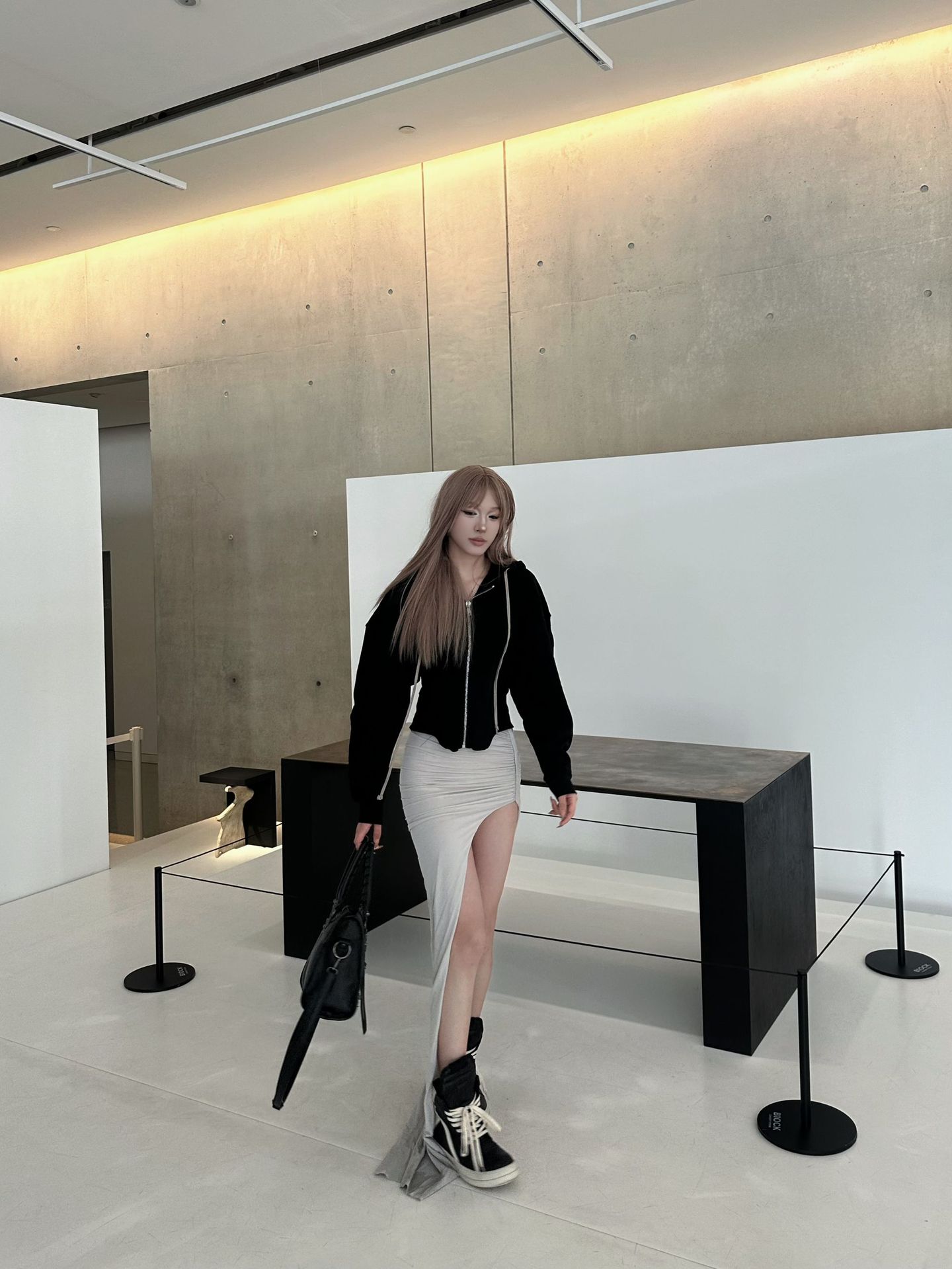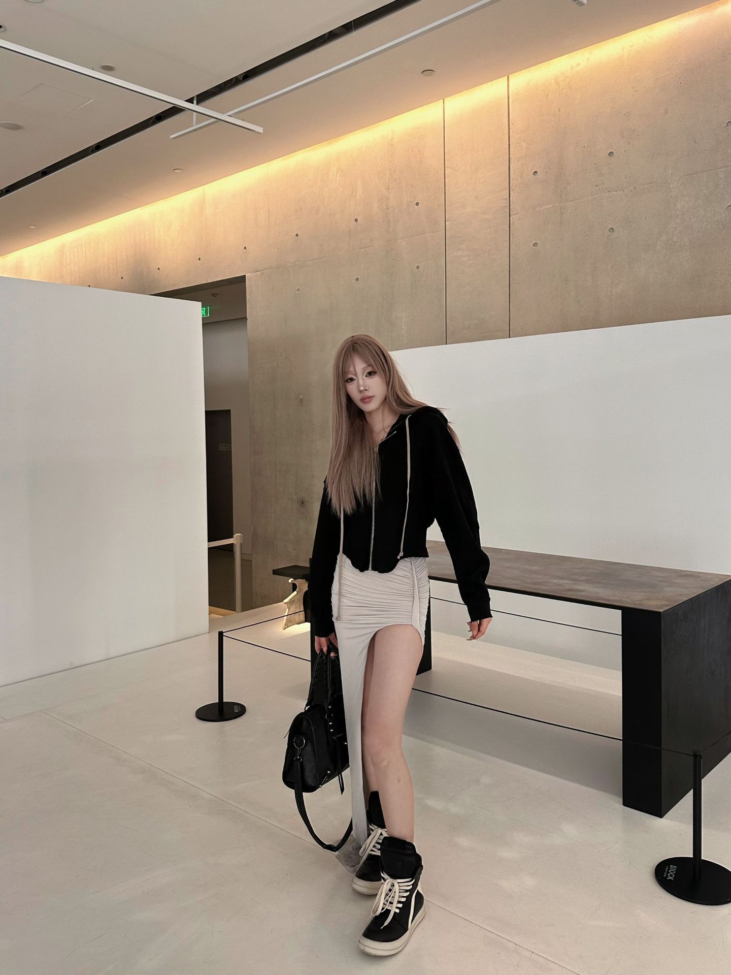 Subhuman de las mujeres oscuro diseño la personalidad Slein Slim capucha suéter corto chaqueta cremallera knit