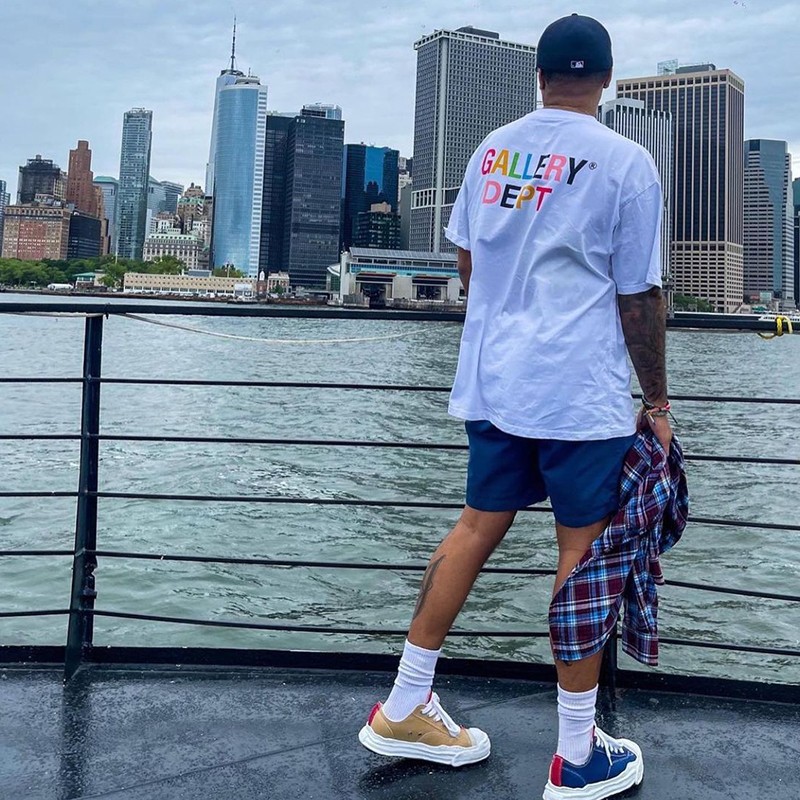 Galería de la marca de moda logotipo de letras básico estampado casual hombres y mujeres sueltos camiseta de manga corta pareja