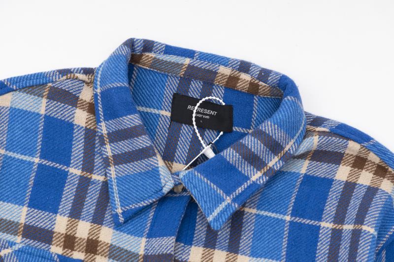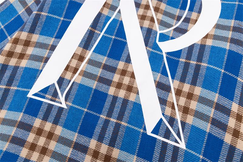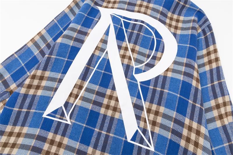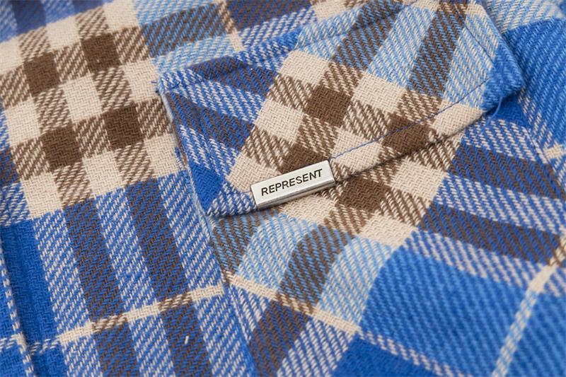 REPRESENTAR REP azul a cuadros de manga larga camisa Americana los hombres y las mujeres la misma letra R impreso Top otoño moda
