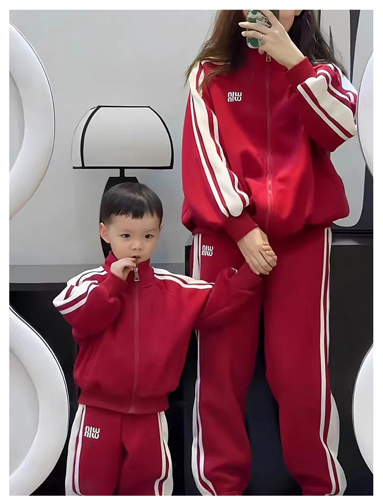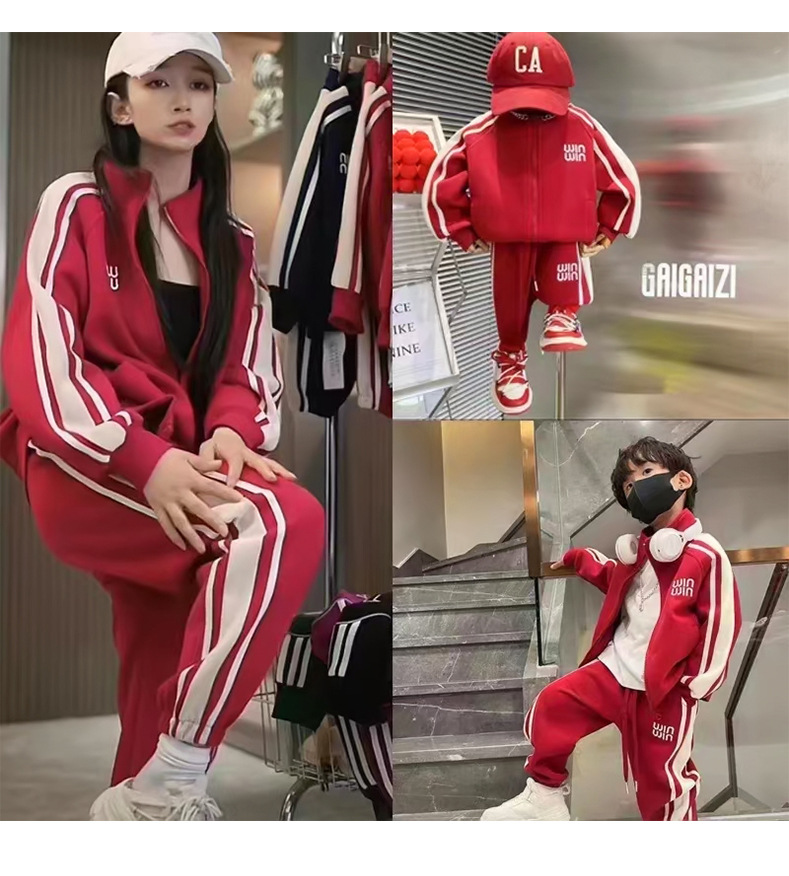 Popular en línea popular 2023 nueva ropa roja para padres e hijos Otoño e Invierno suéter engrosado para una familia de tres deportes toda la decoración del hogar