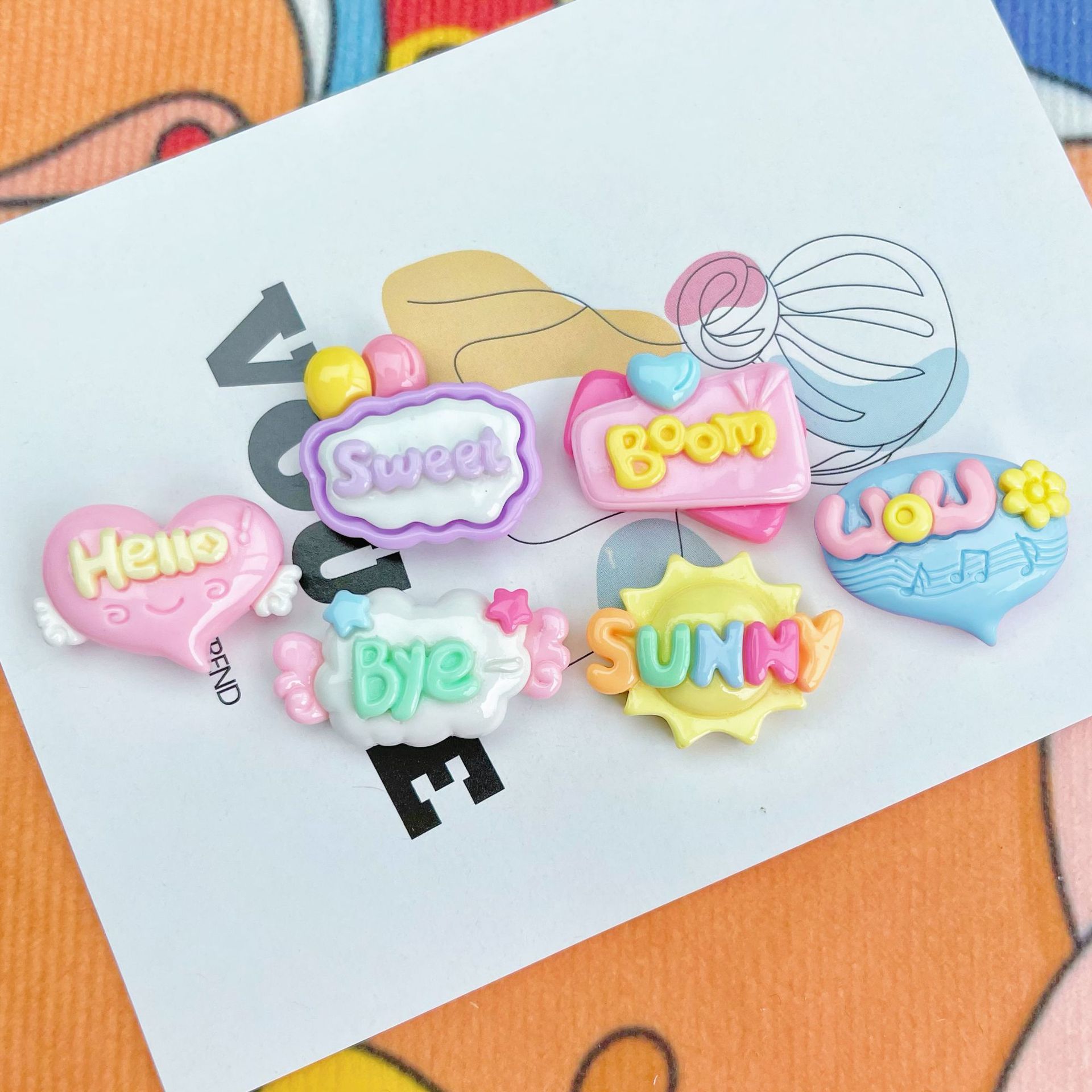 Brillante Sol en forma de corazón Inglés palabra tarjeta resina accesorios SUNY carta tarjeta crema pegamento teléfono caso horquilla accesorios nuevo