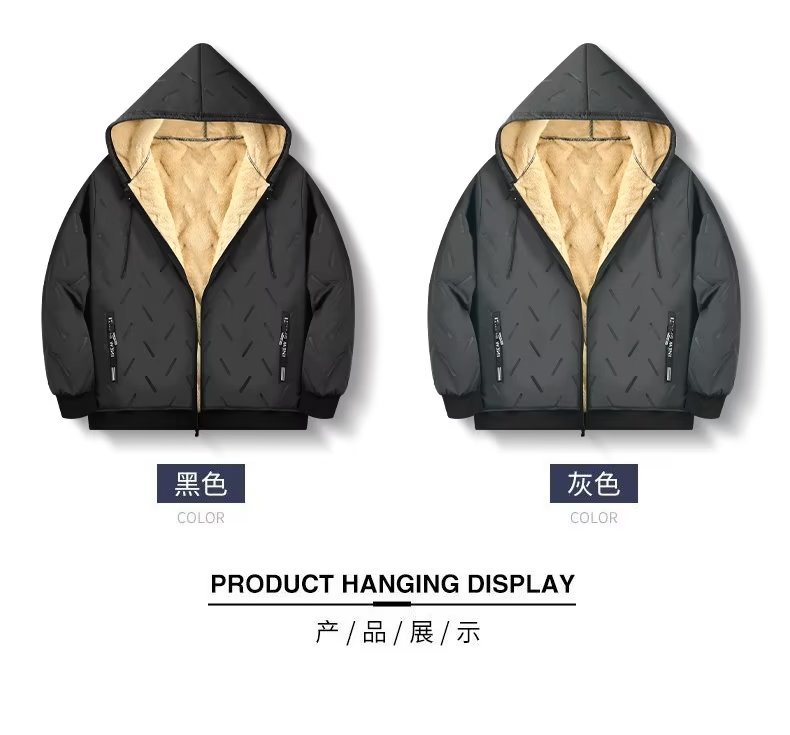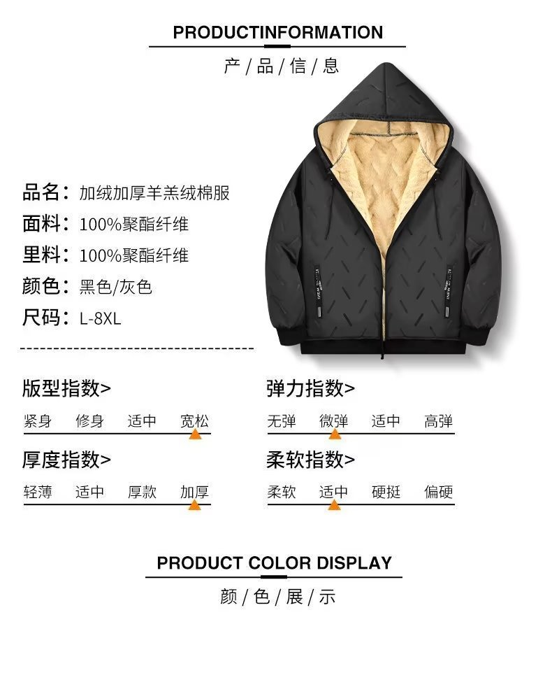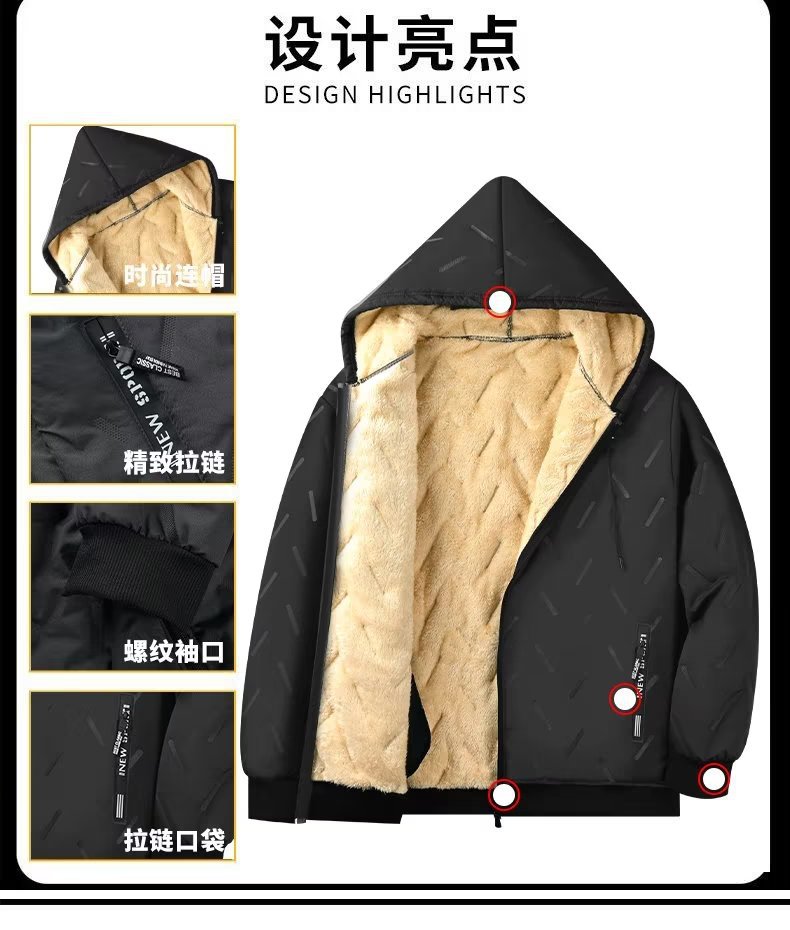 Abrigo de cremallera de lana de cordero para hombres Otoño e Invierno Nuevo a prueba de viento impermeable forrado de lana gruesa con capucha abrigo de algodón acolchado ventas directas de fábrica