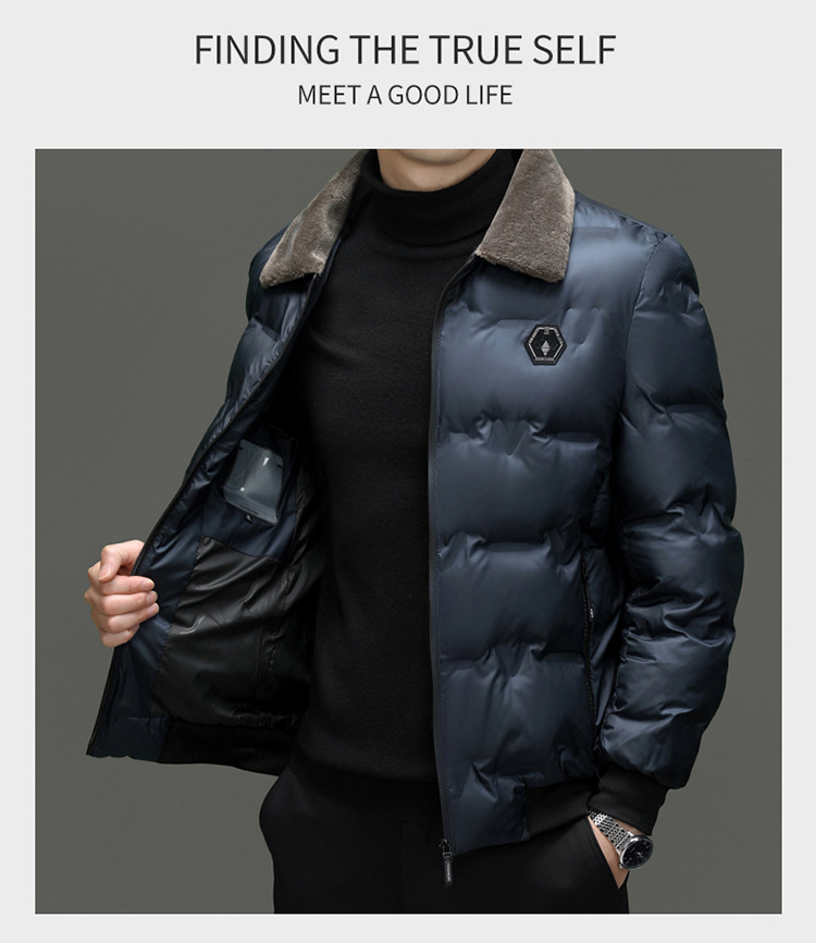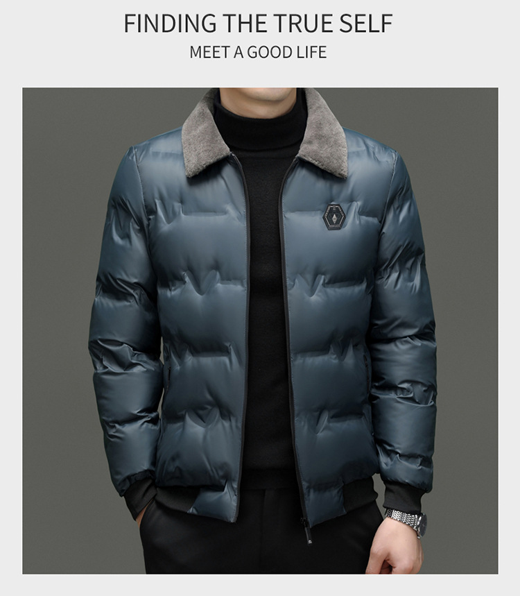 Abrigo acolchado de algodón para hombres Top casual de negocios Otoño e Invierno Nuevo papá desgaste solapa engrosada abrigo de cuello de piel caliente ropa de hombre