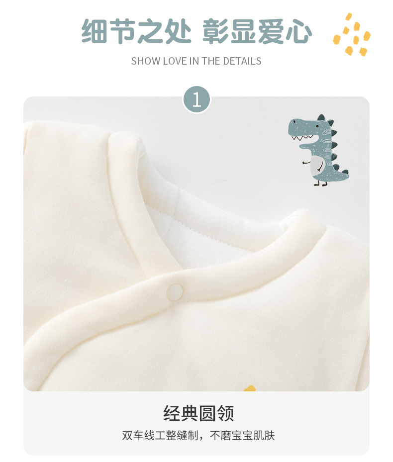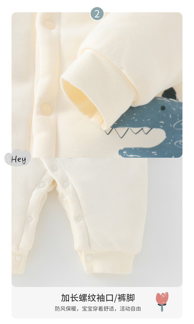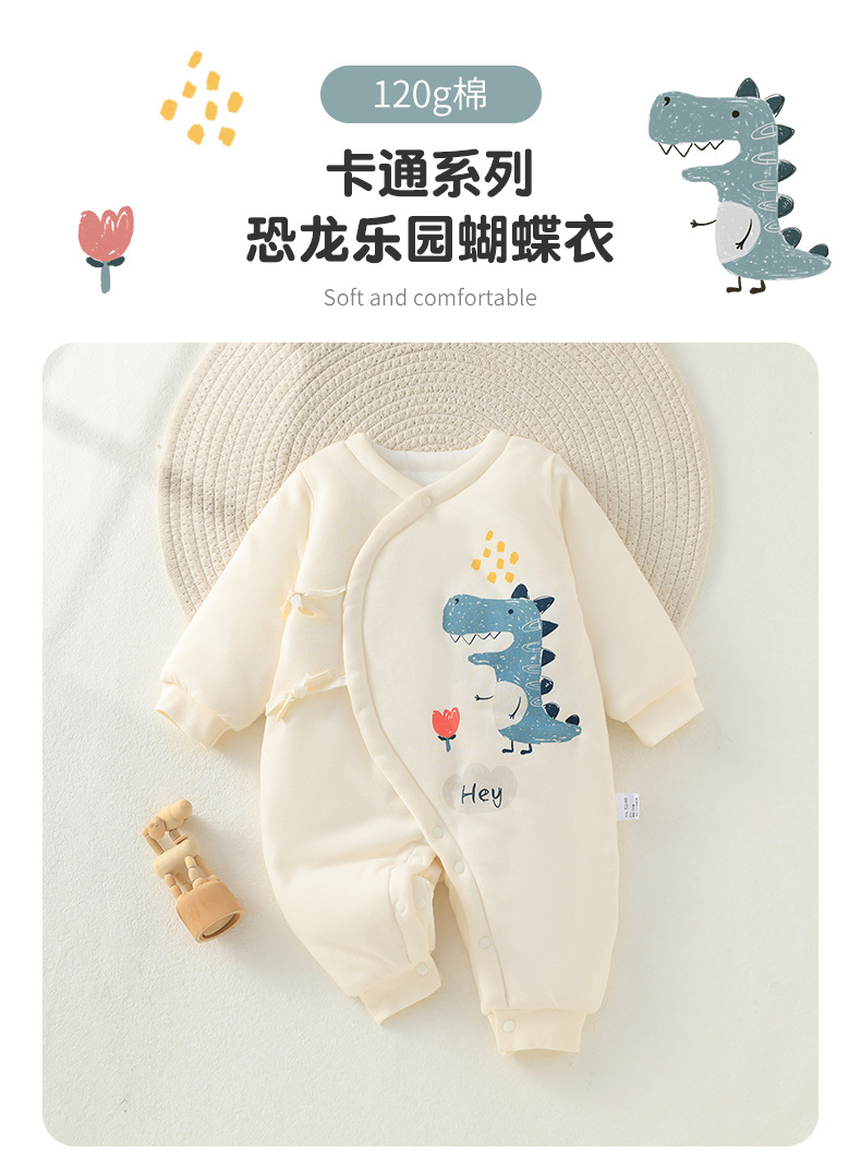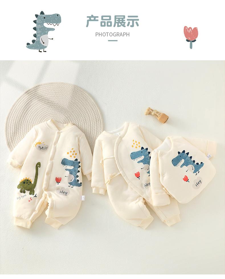 2024 ropa de otoño e invierno para bebés, dinosaurio de dibujos animados, acolchado de tres capas para bebés masculinos, una especie de chaqueta de algodón para recién nacidos