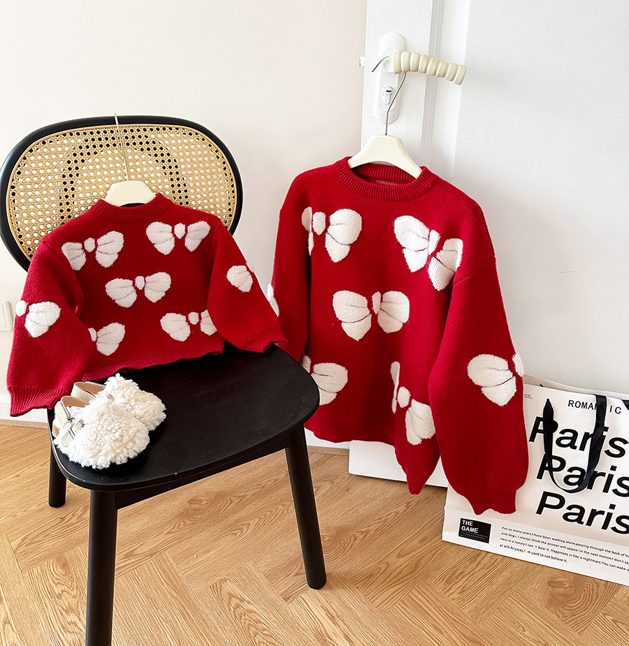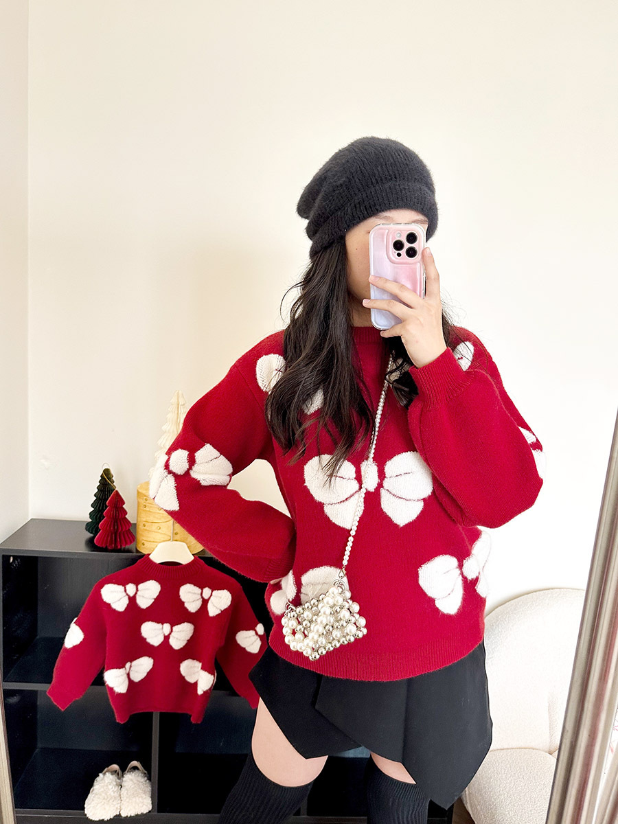 En stock [Foto real] ropa de mujer 2024 ropa de padre-hijo dulce Real shot suave glutinoso suéter Otoño e Invierno suéter Suelto