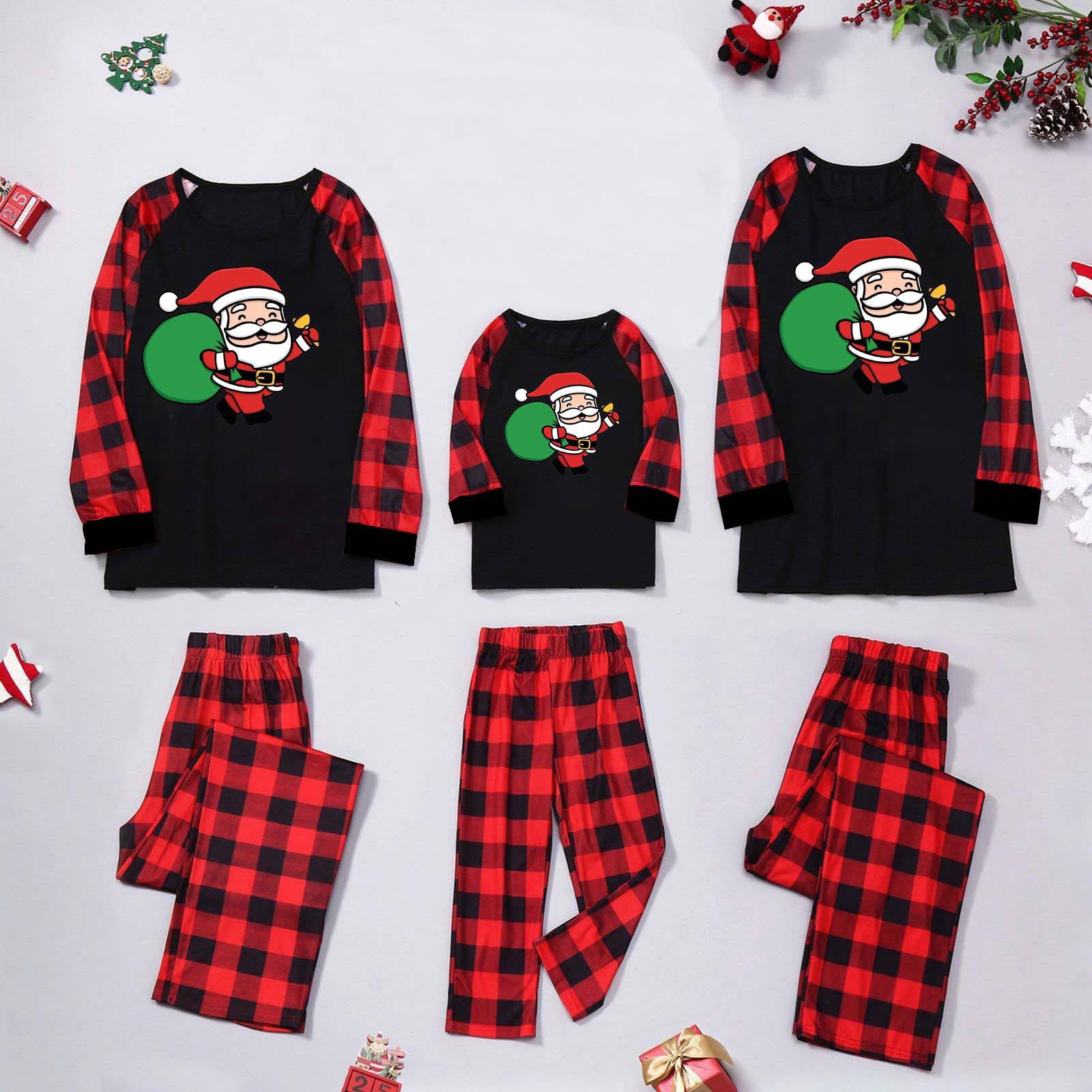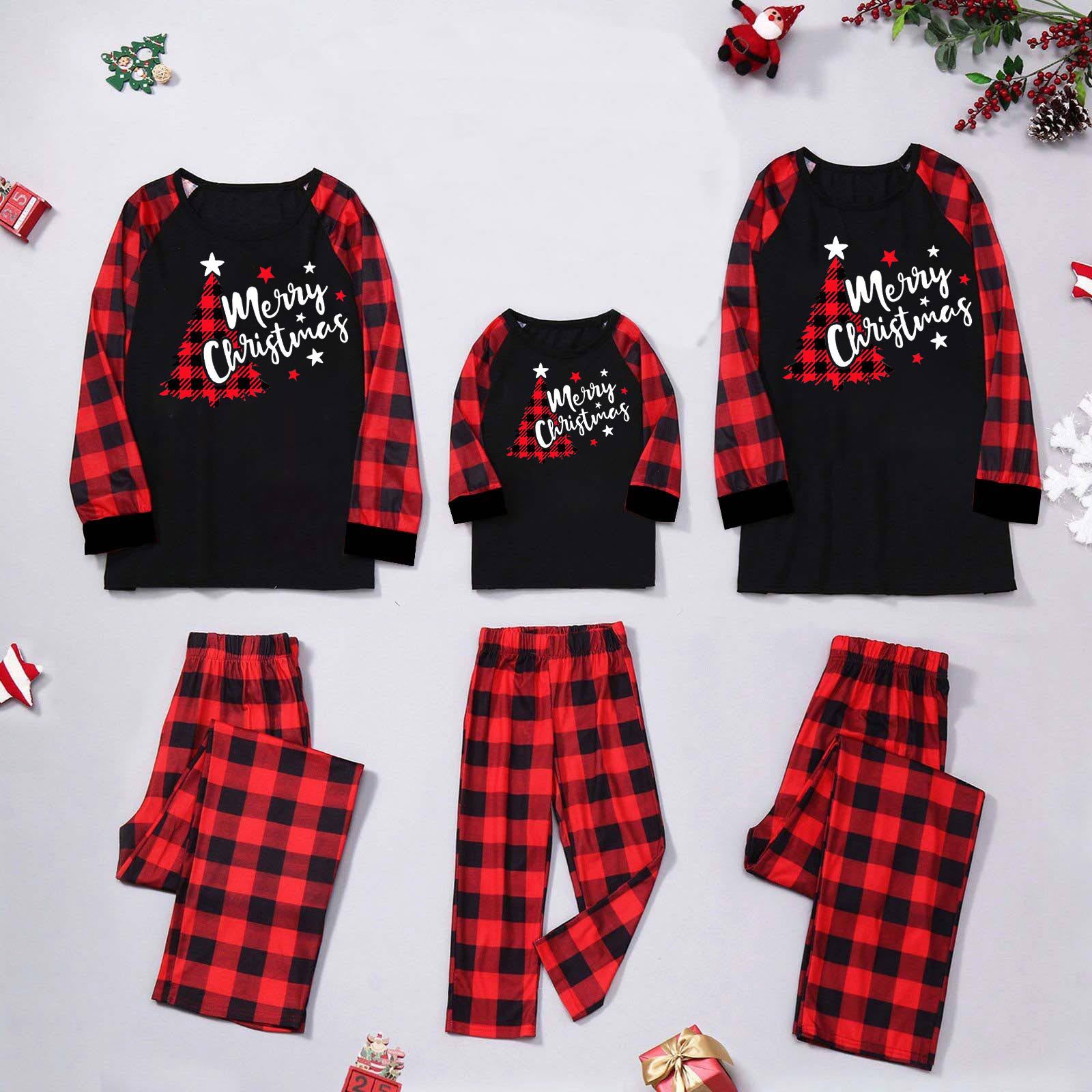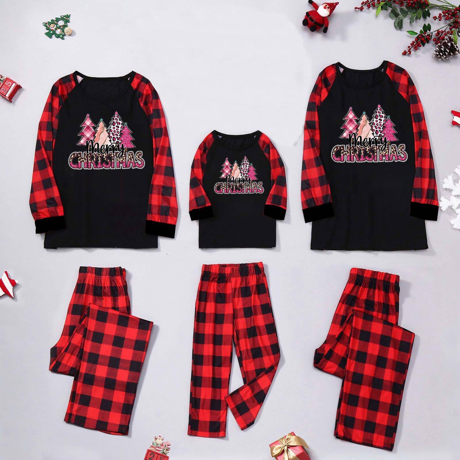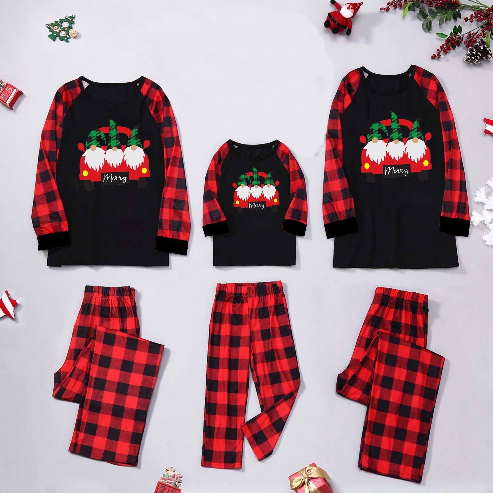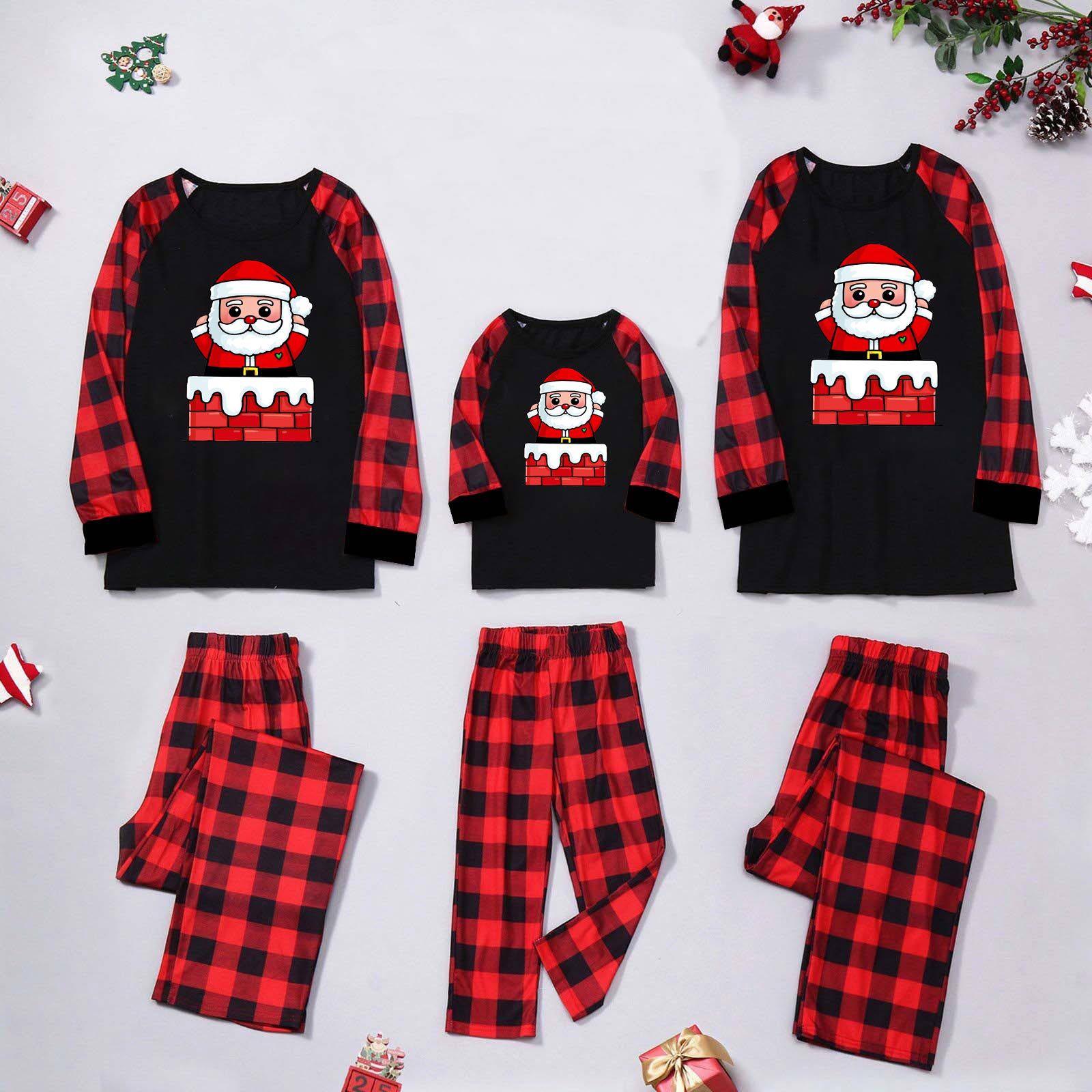Amazon primavera y otoño ropa para padres e hijos ropa para el hogar Navidad dibujos animados transfronterizos europeos y americanos pijamas estampados traje de manga larga a cuadros