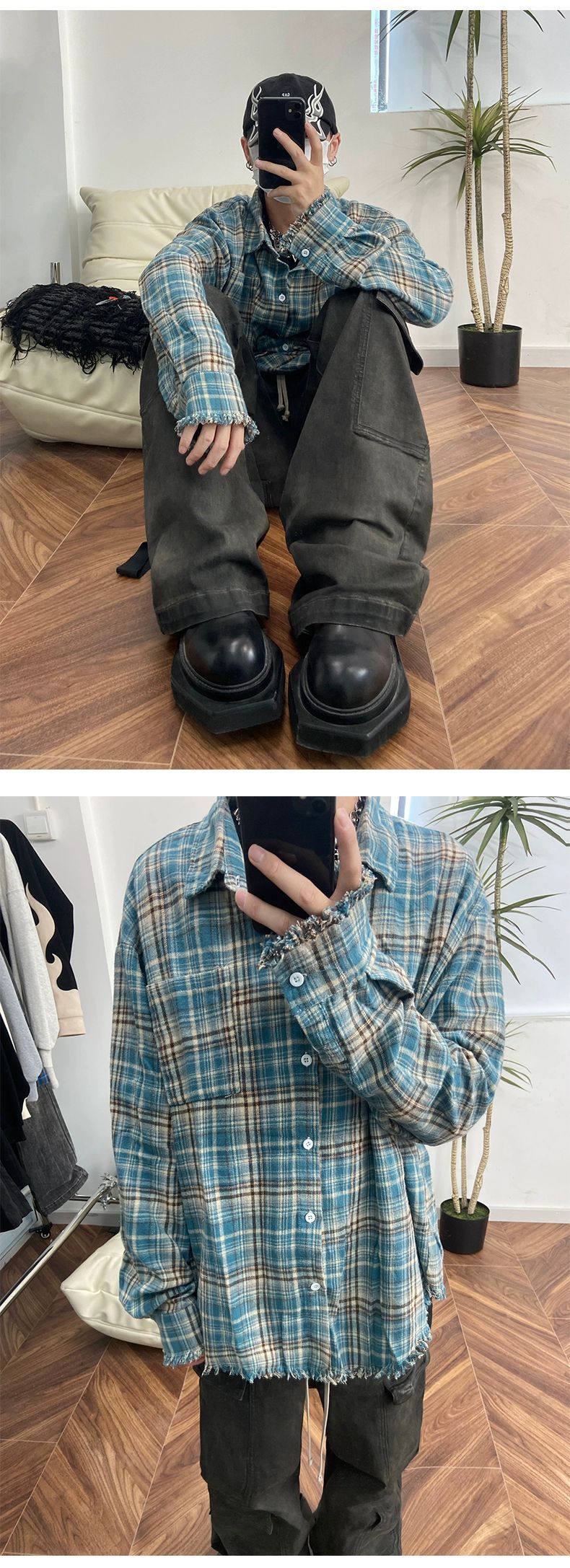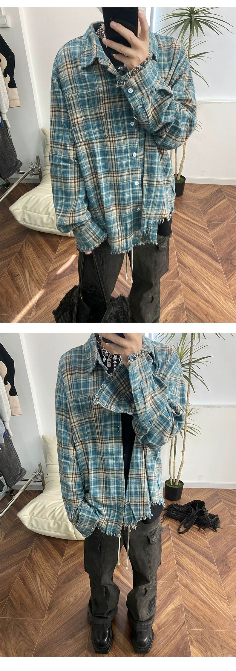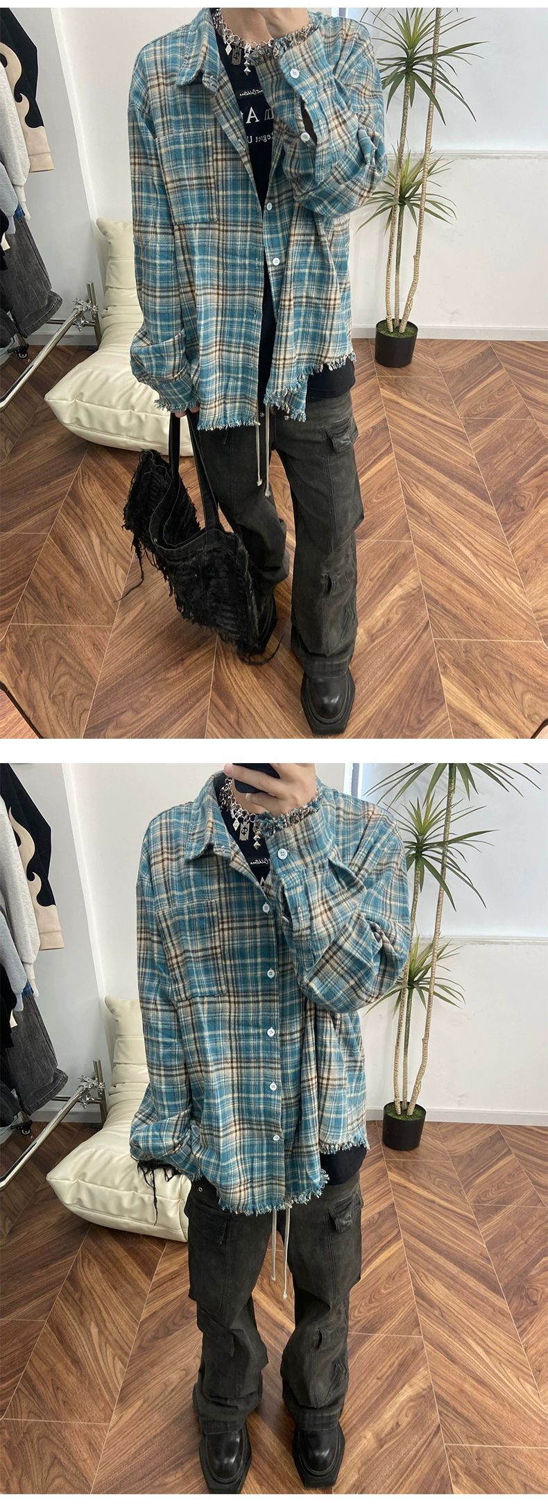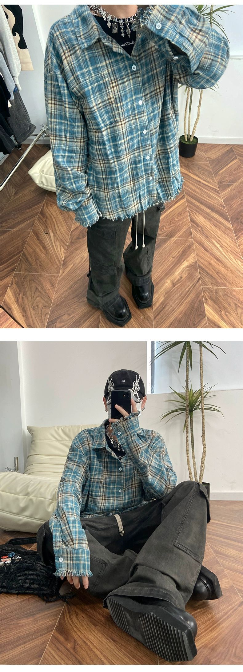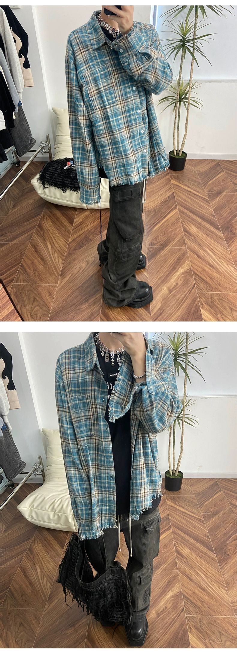 Franela cleanfit camisa a cuadros de los hombres de primavera y otoño camisa de la vendimia Retro Americana abrigo de pareja
