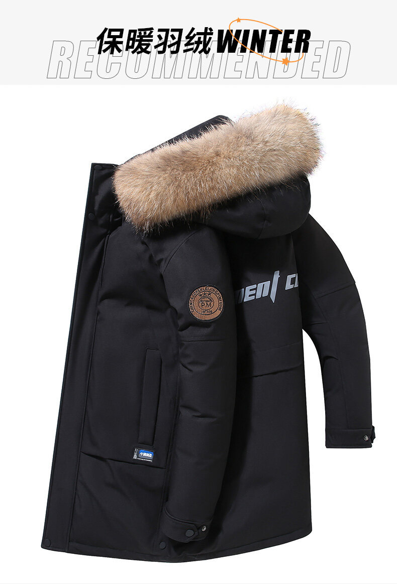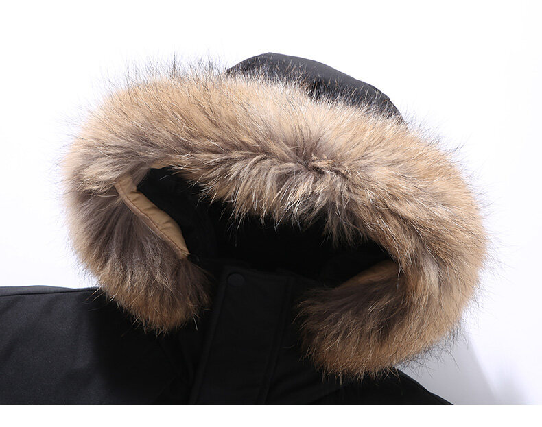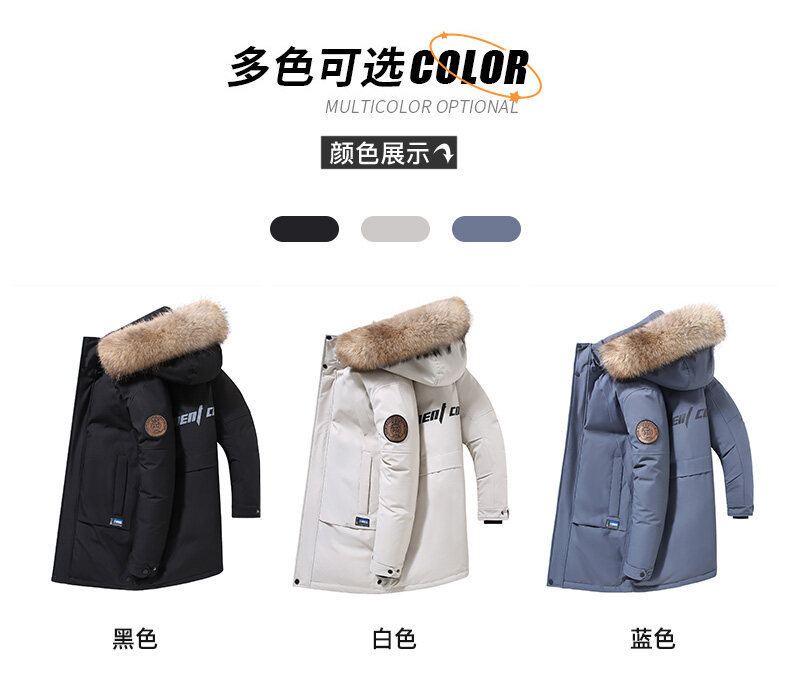 Chaqueta de invierno para hombres de longitud media con capucha engrosada cálido abrigo de cuello de piel grande para hombres 90 pato blanco abajo chaqueta de los hombres