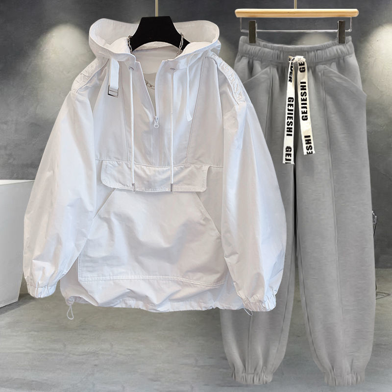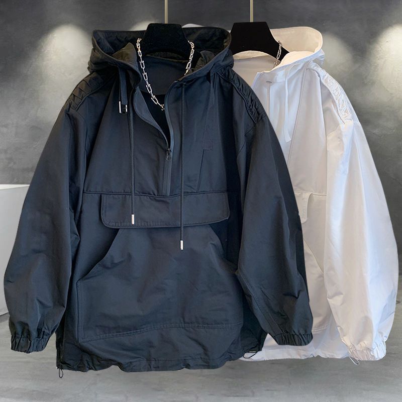 Color sólido chaqueta con capucha traje de los hombres ins moda herramientas costura diseño cazadora manga larga superior a juego suelta