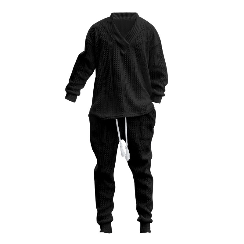 Estación independiente 2023 transfronteriza nuevos pantalones casuales de los hombres europeos y americanos V-cuello versátil jacquard suéter traje de otoño de los hombres