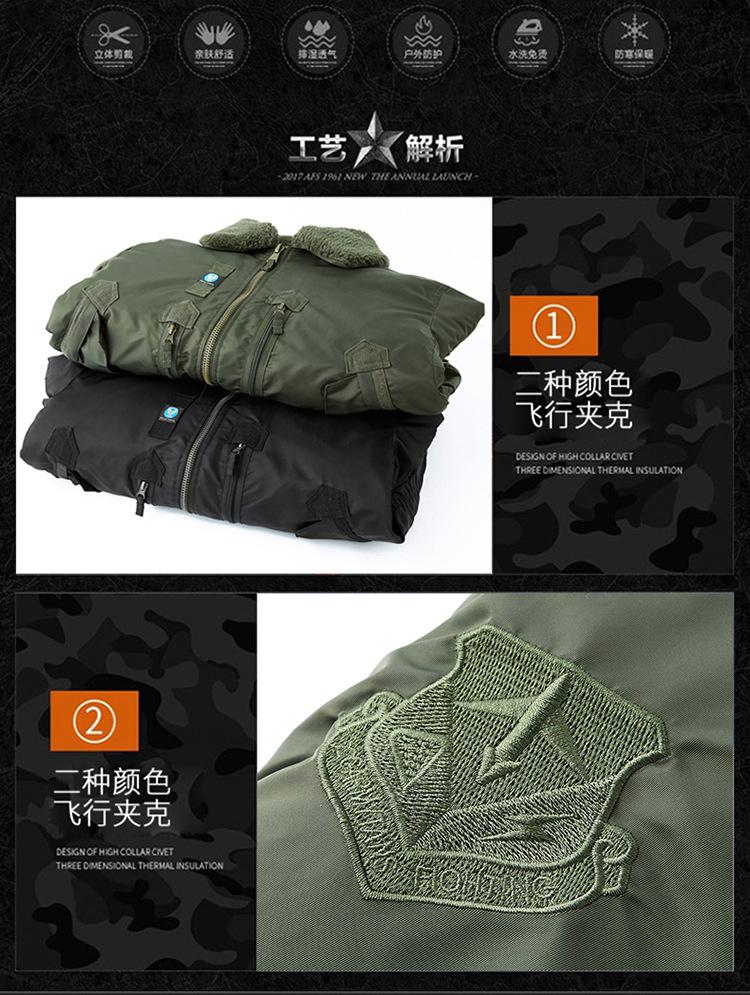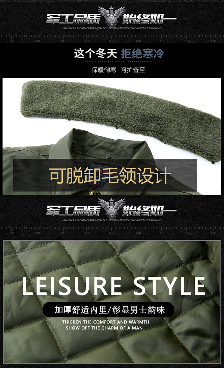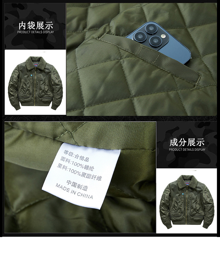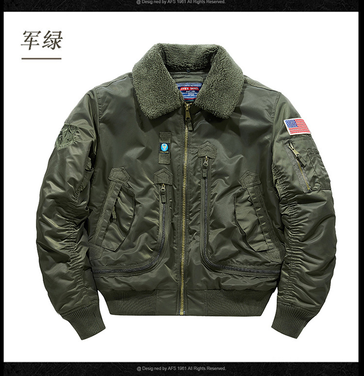 Chaqueta de piloto B10 transfronteriza chaqueta de vuelo de los hombres abrigo de algodón acolchado invierno engrosada ropa de trabajo abrigo de algodón acolchado Cuello de piel desmontable