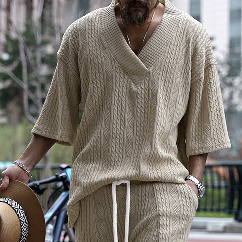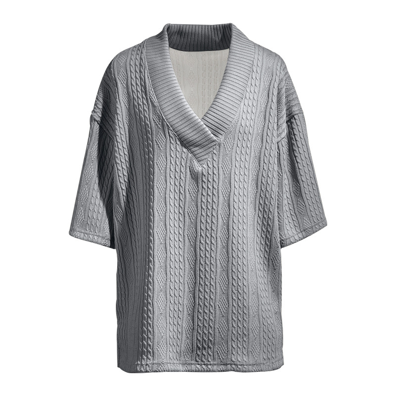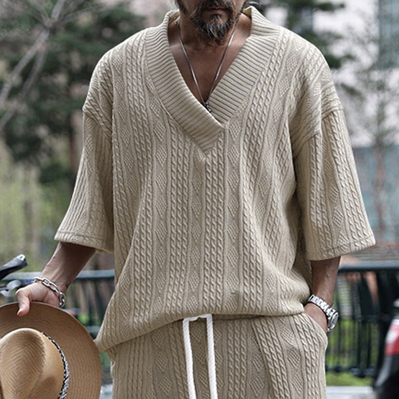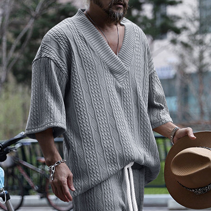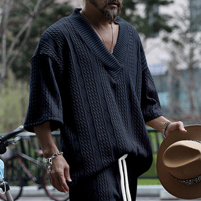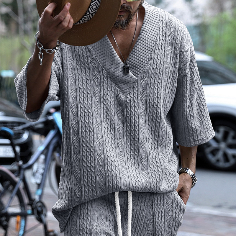 Cross-Border Camiseta de punto casual de los hombres de verano de manga corta suelta Amazon suelta gran cuello en V deportes color sólido camiseta de los hombres