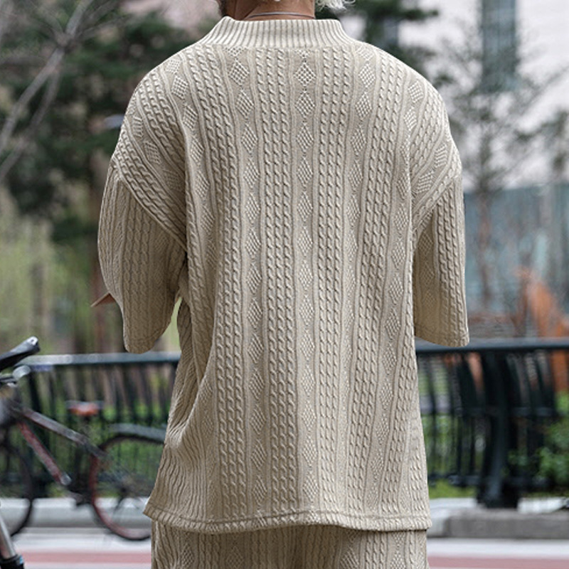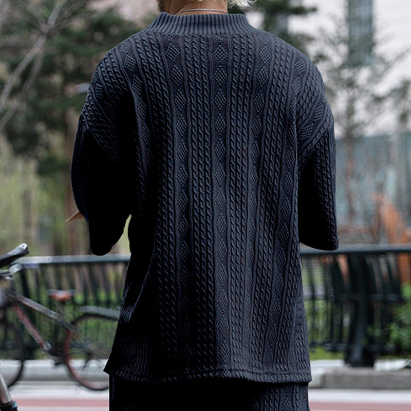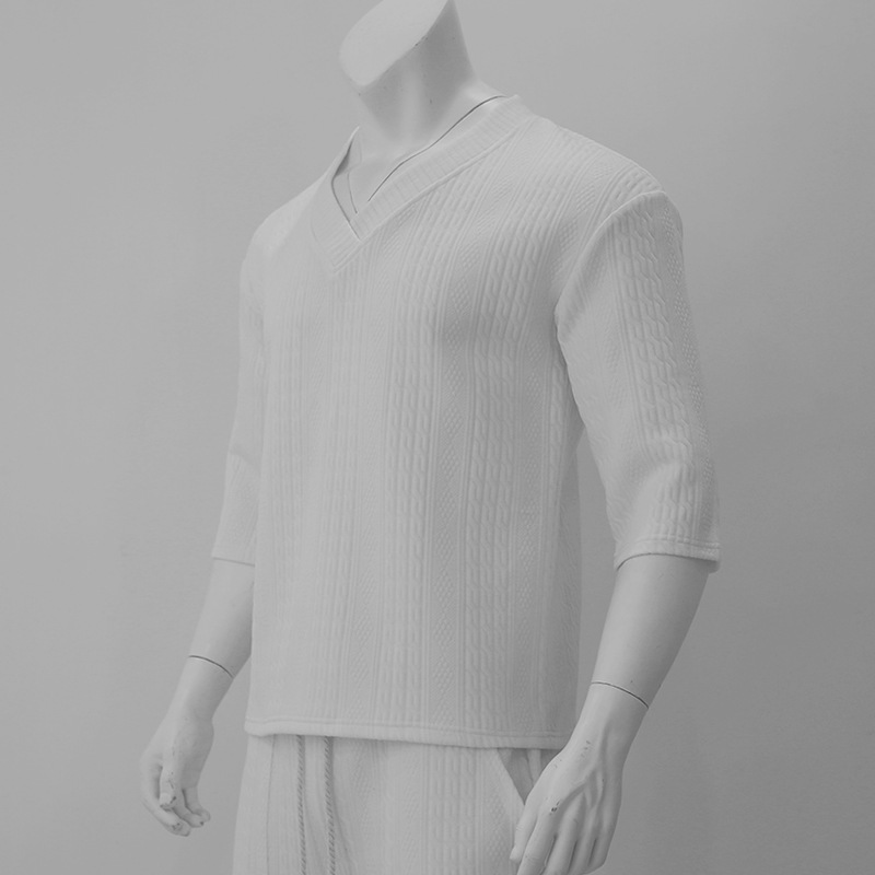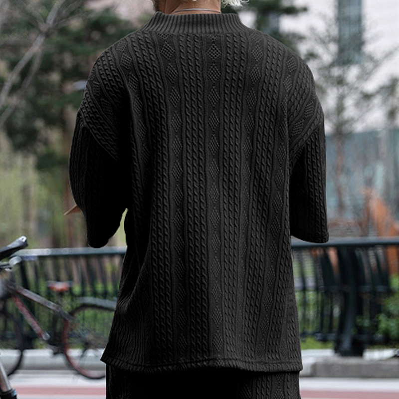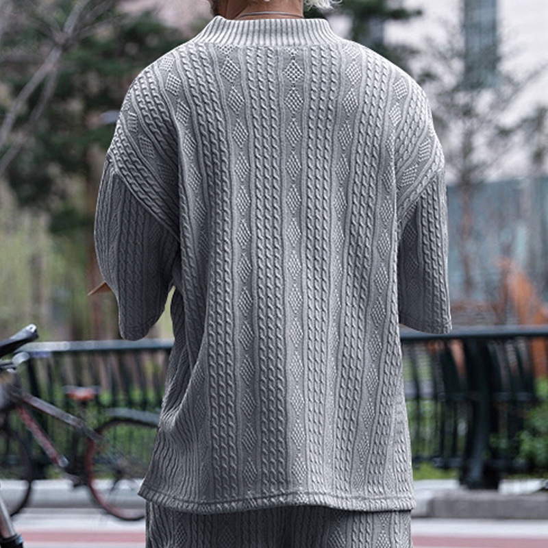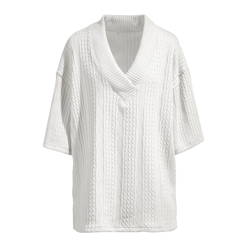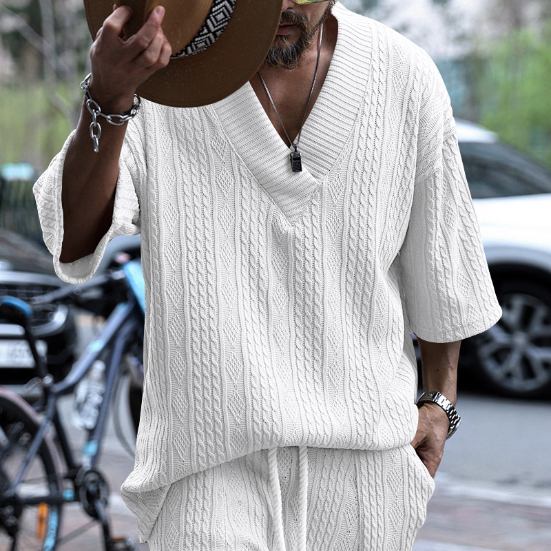 Cross-Border Camiseta de punto casual de los hombres de verano de manga corta suelta Amazon suelta gran cuello en V deportes color sólido camiseta de los hombres