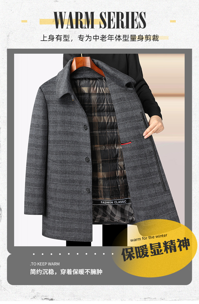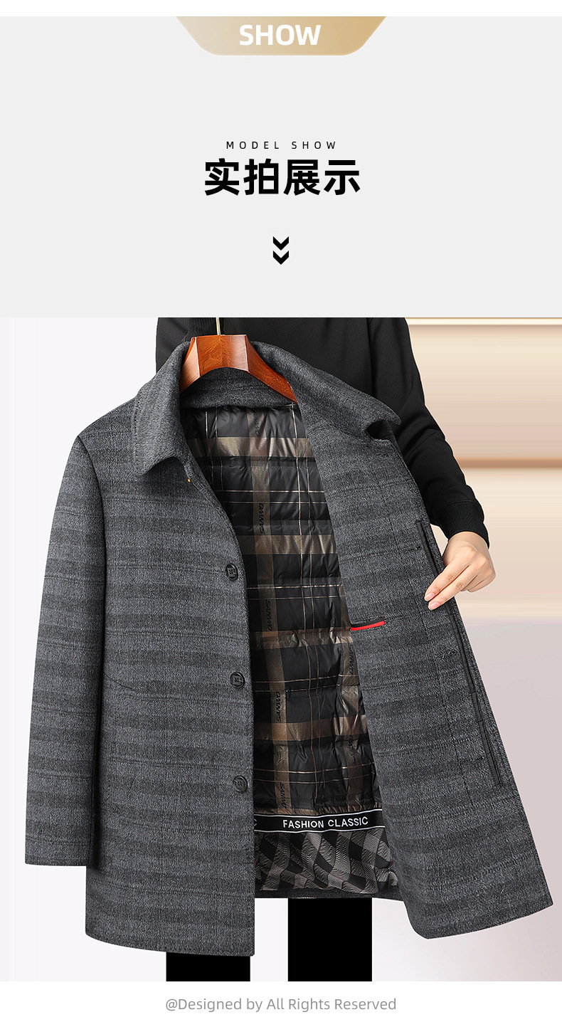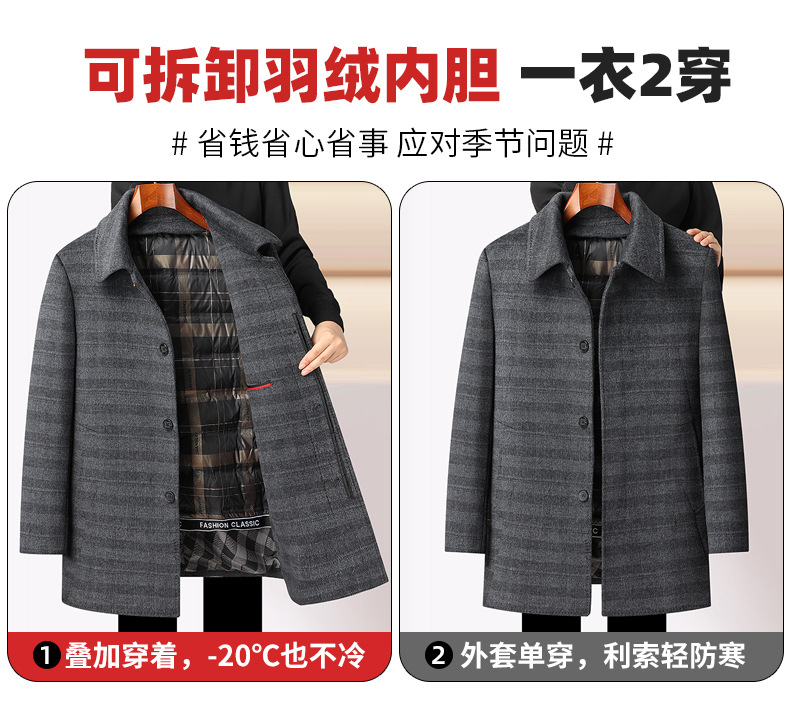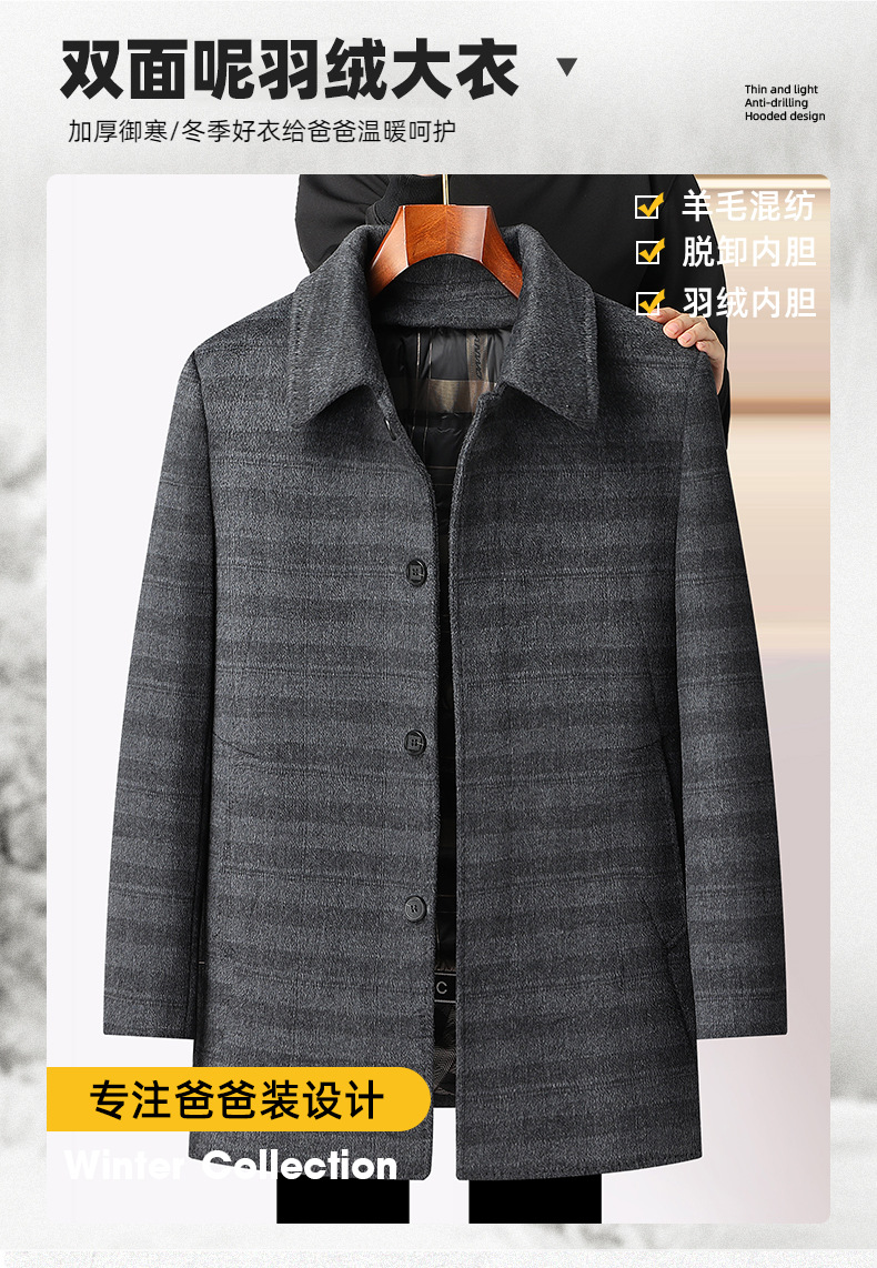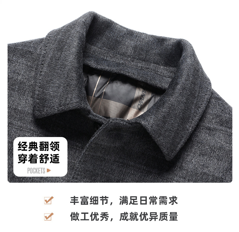 Laishibert Otoño e Invierno Nuevo forro de doble cara abrigo de lana engrosada de los hombres de mediana edad y ancianos solapa abrigo de lana