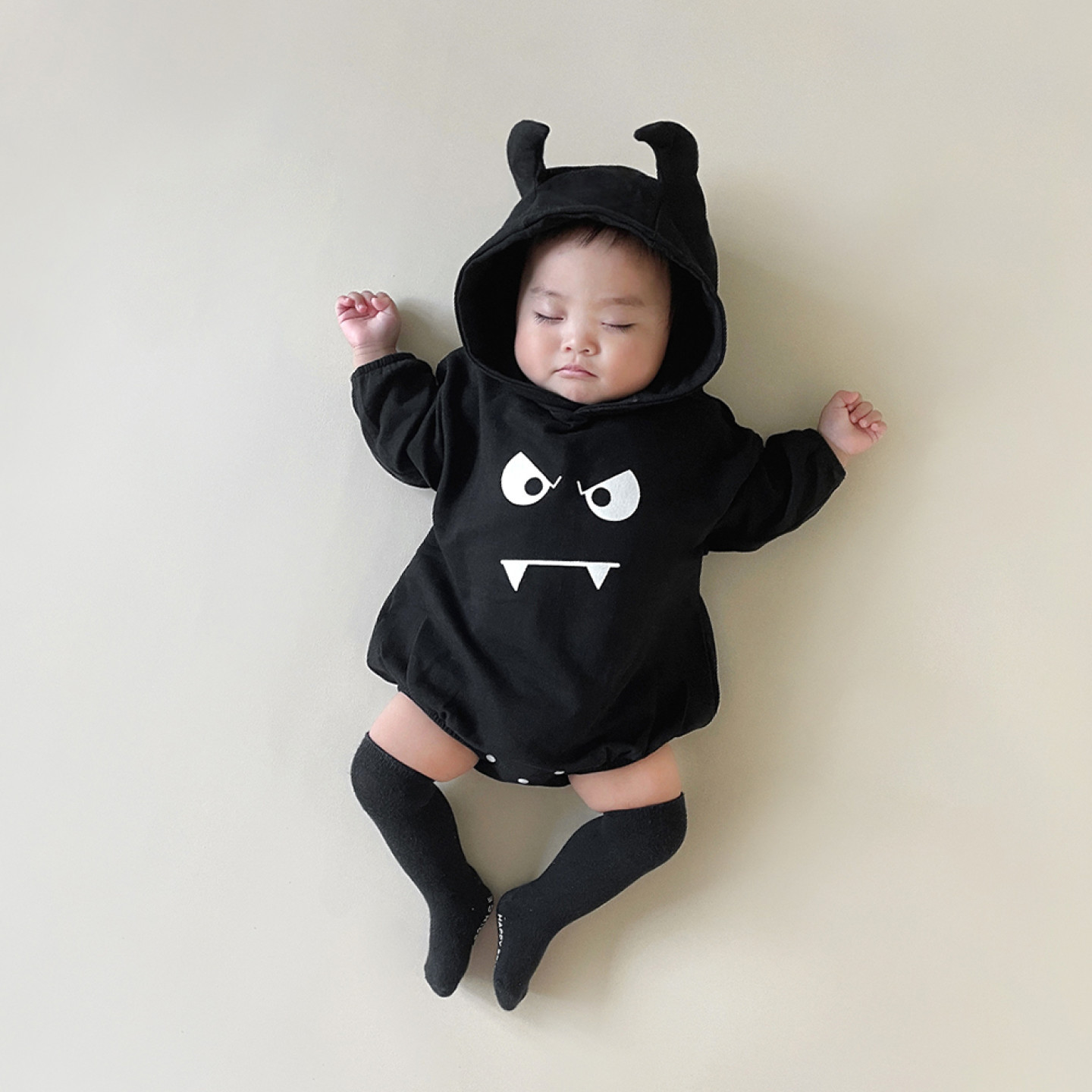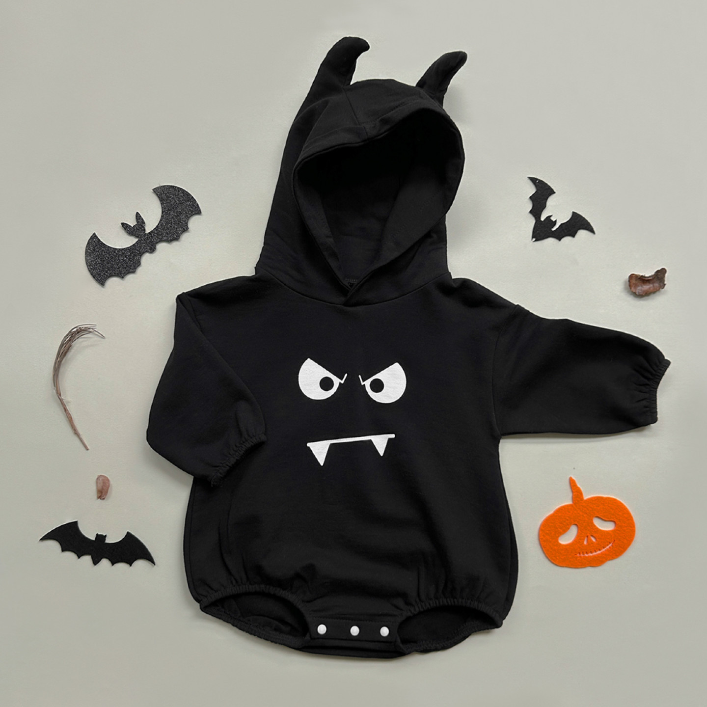 24 primavera nuevo estilo coreano bebé mono ins Halloween salida mameluco pequeño diablo estilo con capucha mameluco