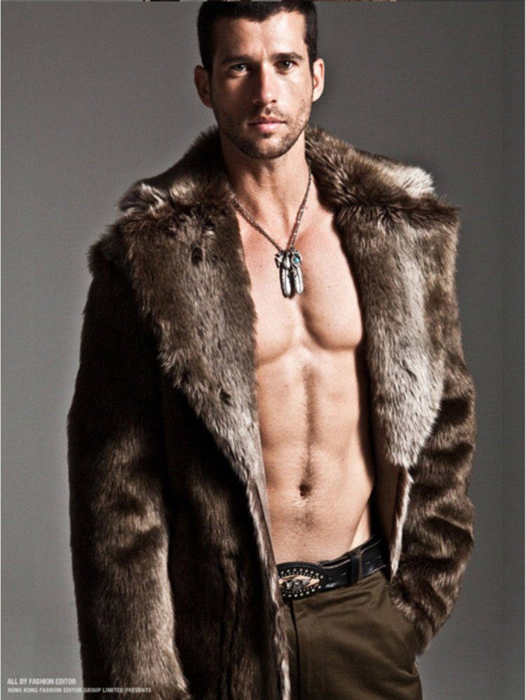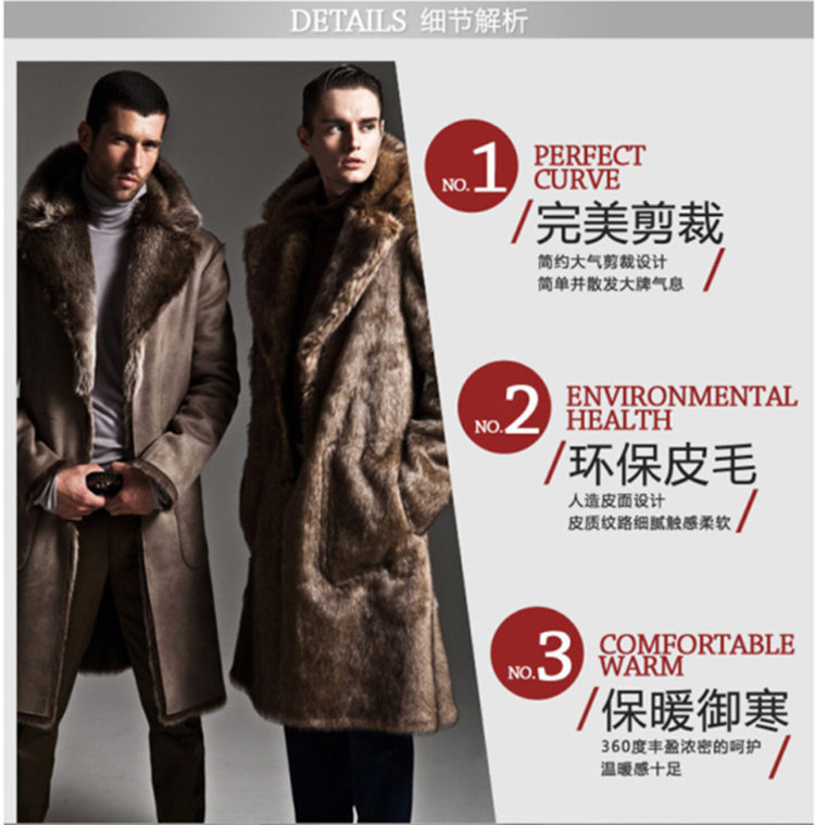 AliExpress transfronterizo de piel sintética de los hombres abrigo largo abrigo de piel trinchera traje de cuello más tamaño