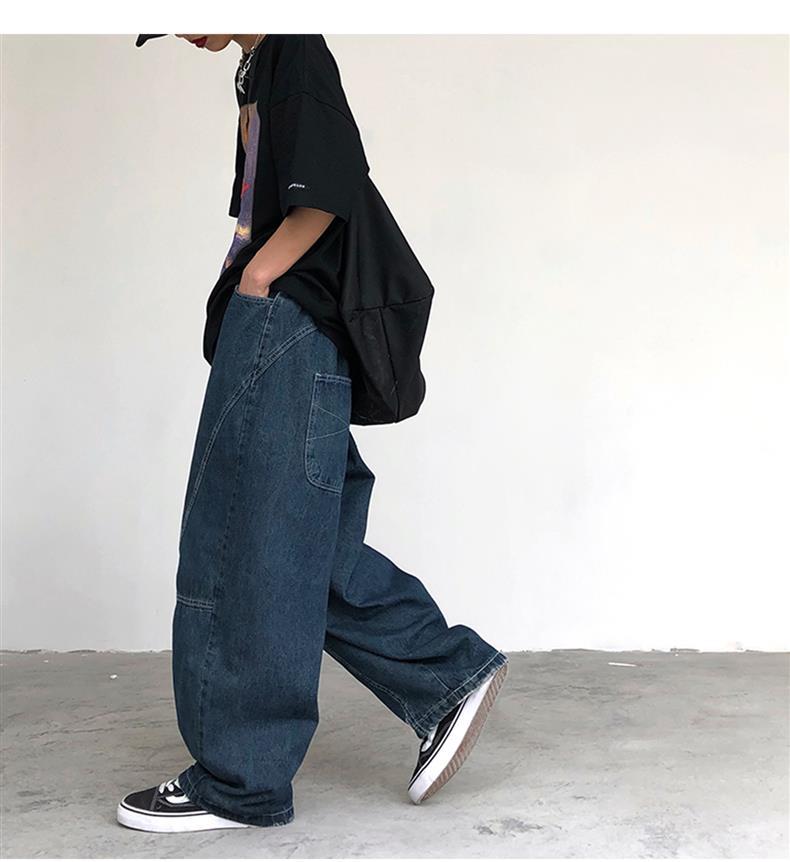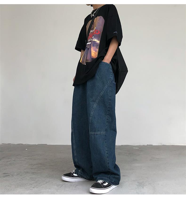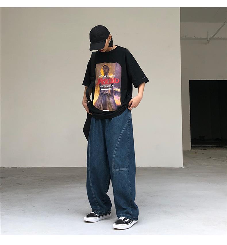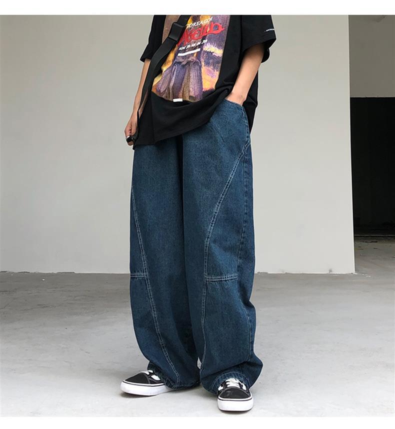 Primavera nueva pierna ancha floja ropa de trabajo bloomers japonés retro drapeado recto casual lavado Jeans para hombres y mujeres